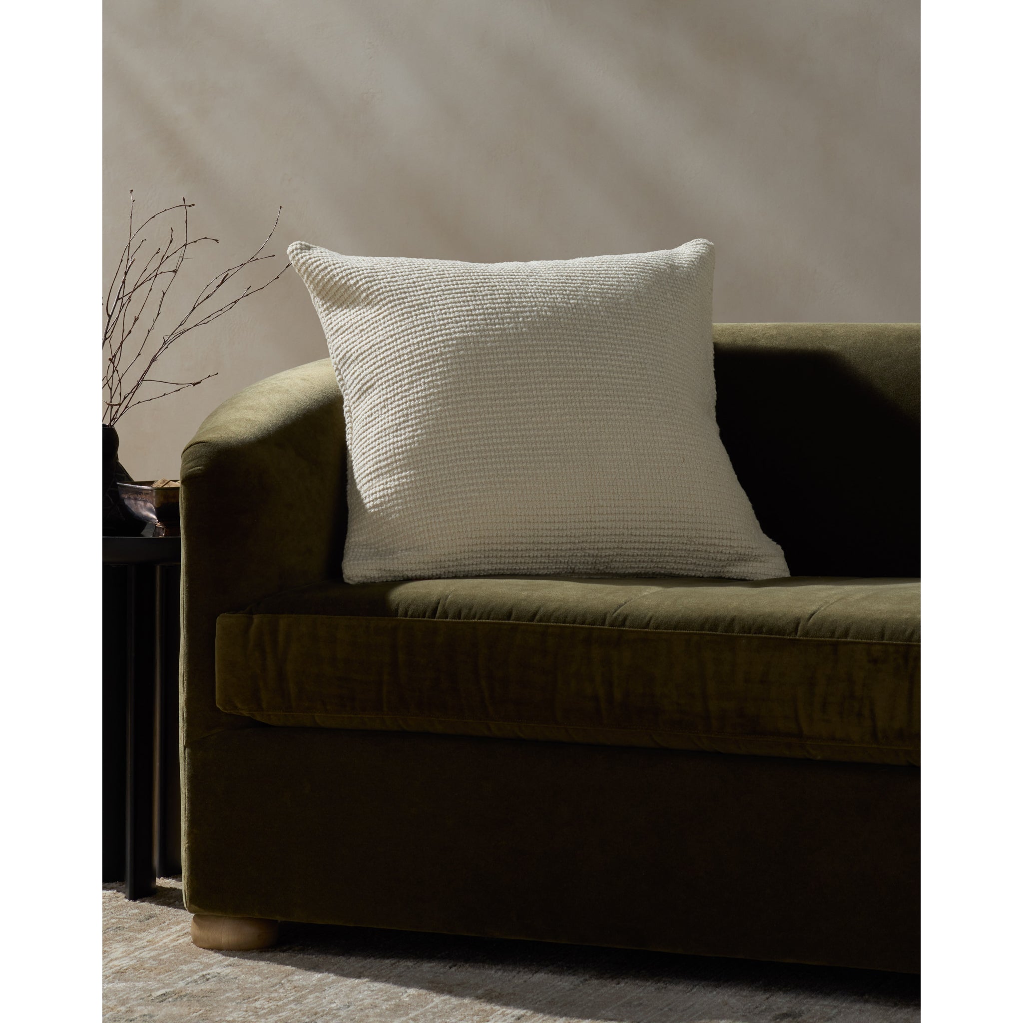 Bedford is a richly textured, solid-toned ivory white throw pillow designed by Jeremiah Brent x Loloi. The 24" x 24" square pillow is made in India of 100% cotton, an expertly crafted accent for modern home decor.