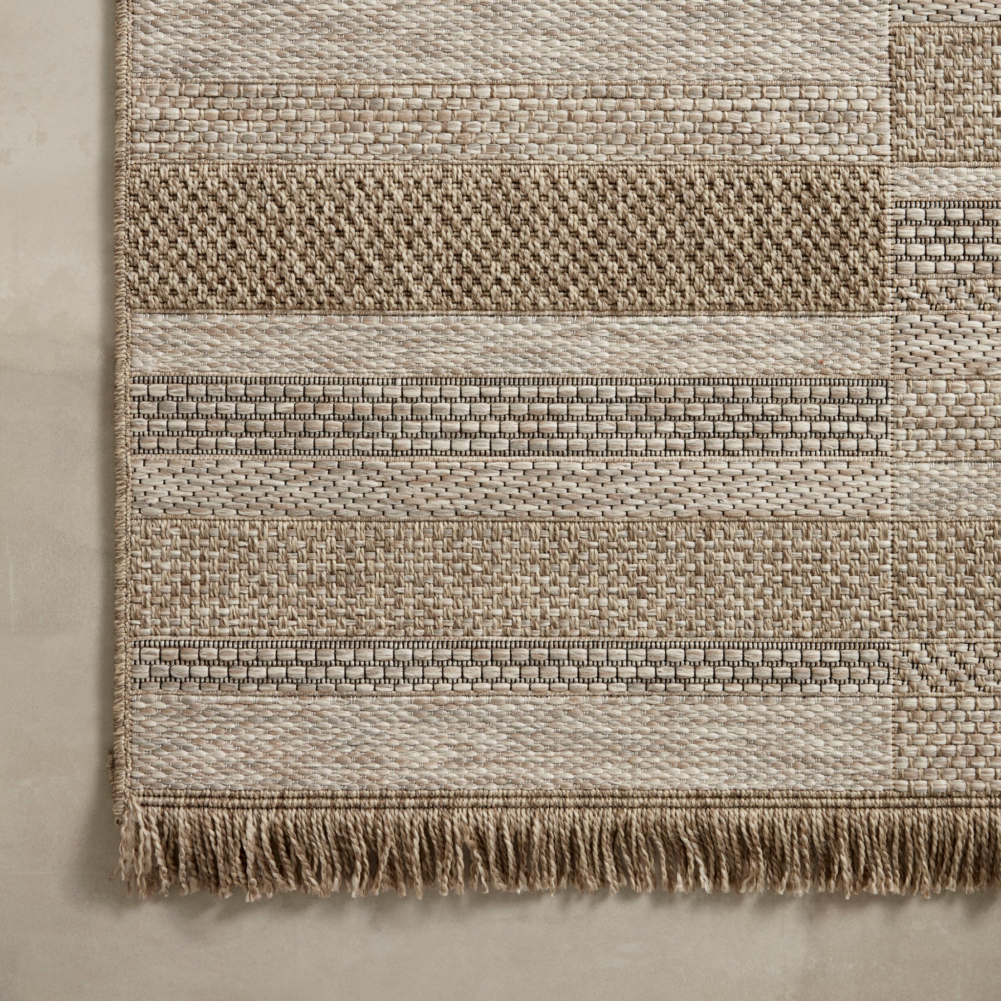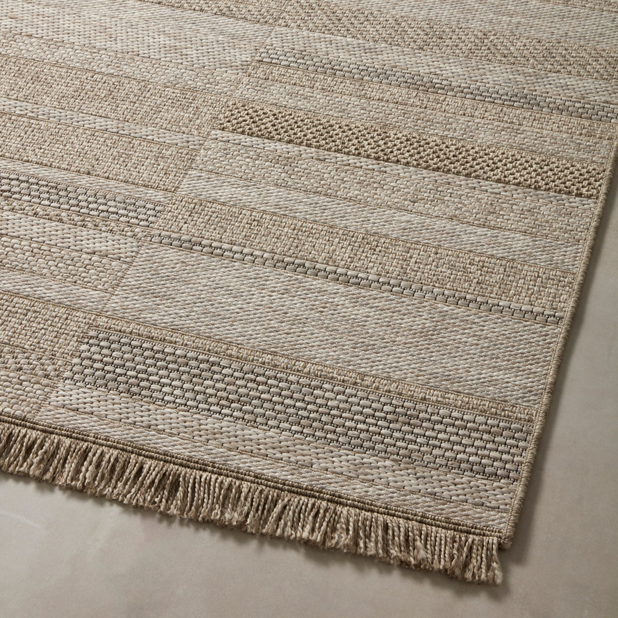 Made for sunny days ahead, the Dawn Collection is an indoor/outdoor rug that looks like a woven sisal rug but is power-loomed of 100% polypropylene, which makes it water- and mildew-resistant (so it's ready for rainy days ahead, too). Available in modern graphic patterns in tonal beige neutrals, Dawn has a short edge fringe that adds a playful and elevated feel to a rug that can handle a lot of foot (or paw) traffic whether outside on a patio or in a busy mudroom. Rinse off with a hose when needed.