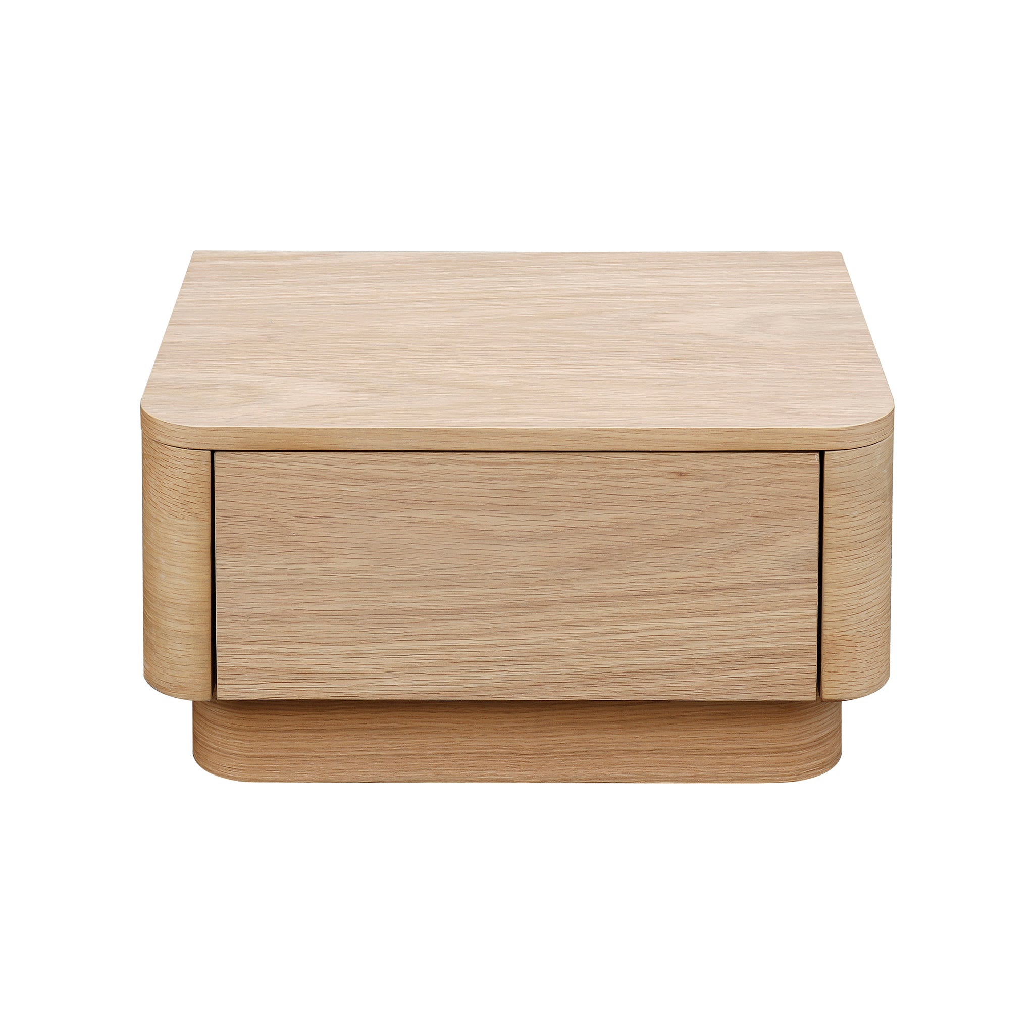 A soft, natural look for your bedroom. The Romie collection is a showcase of organic oak, with the beautiful pale tones of the grain matched to a simple, comforting design. This nightstand features a low build and soft corners, its height perfectly matching that of its sister beds. A spacious drawer glides out seamlessly, perfect for all your bedside knickknacks. As part of the Romie bedroom collection, pair with the dresser and bed for the complete look. Natural beauty and character come together to promote mellow relaxation in the most personal room of your home.