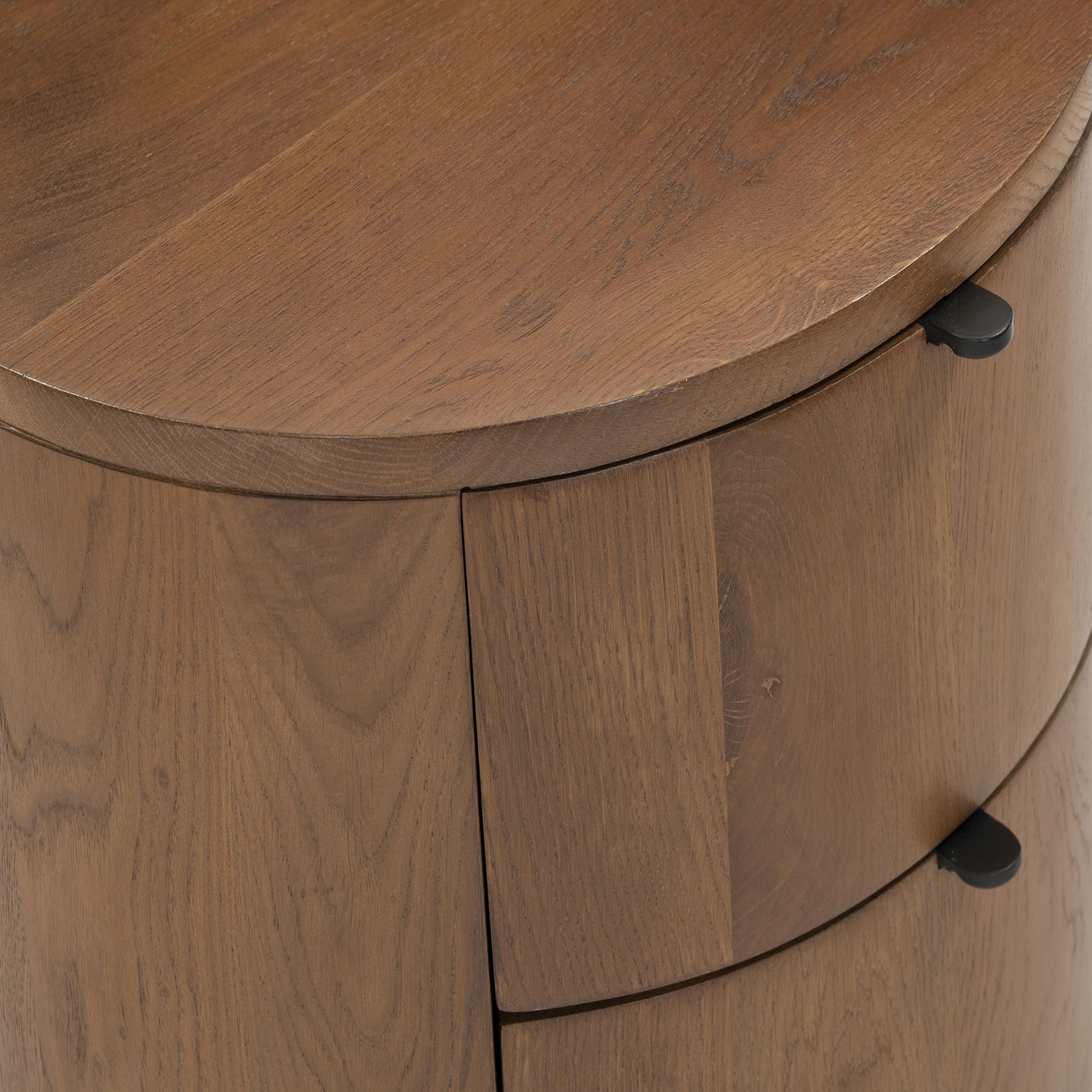 Full of natural appeal in solid oak, the Talia two drawer nightstand features a curved, minimalist design. Beautifully simple and functional, this nightstand features 2 drawers with soft-close glides and drawer safety stop.
