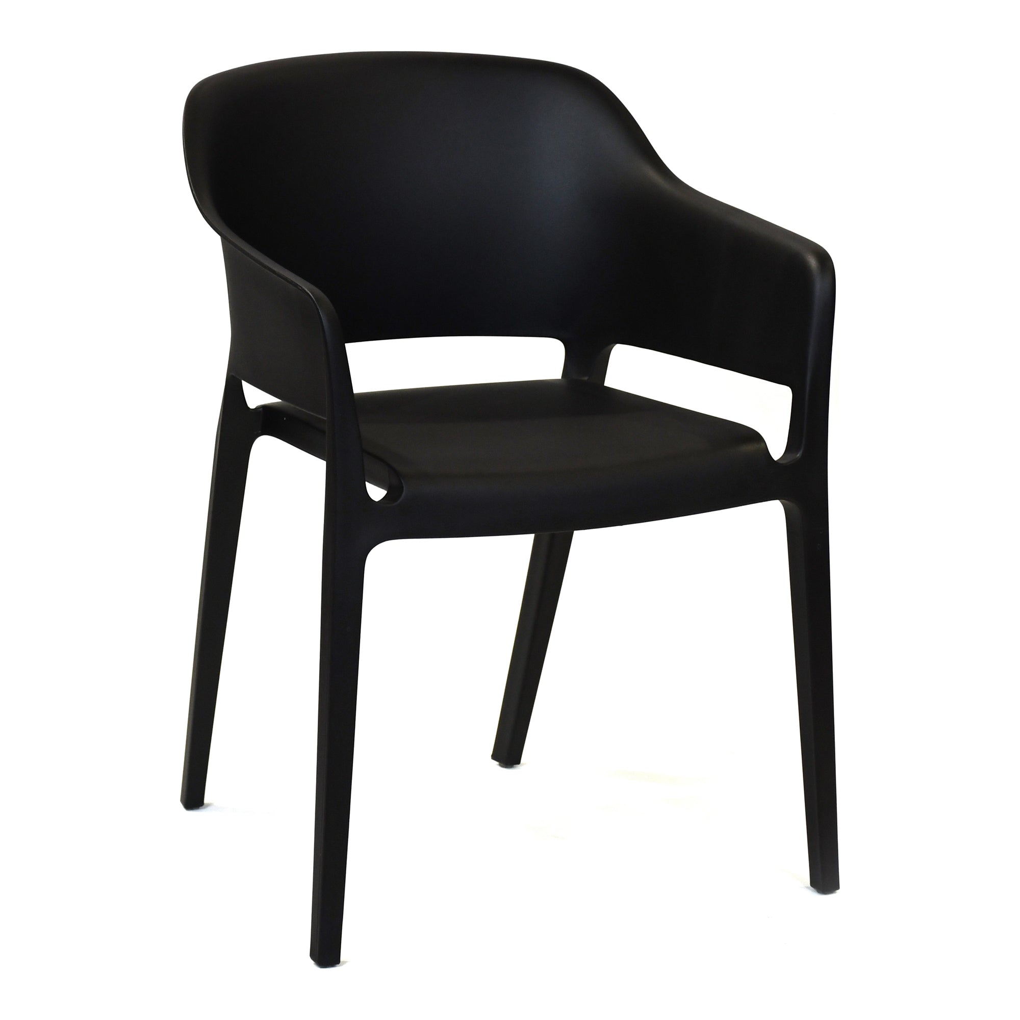 Beautiful in black, the Fiona outdoor chair is perfect for the patio, or anywhere else you enjoy dining al fresco. Easy to maintain and stackable, these chairs are neat and tidy featuring a sturdy back and sloped armrests keep things comfortable.