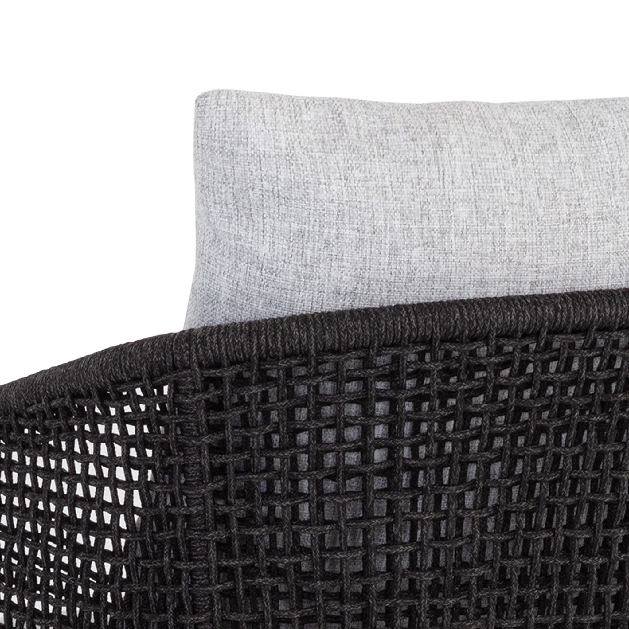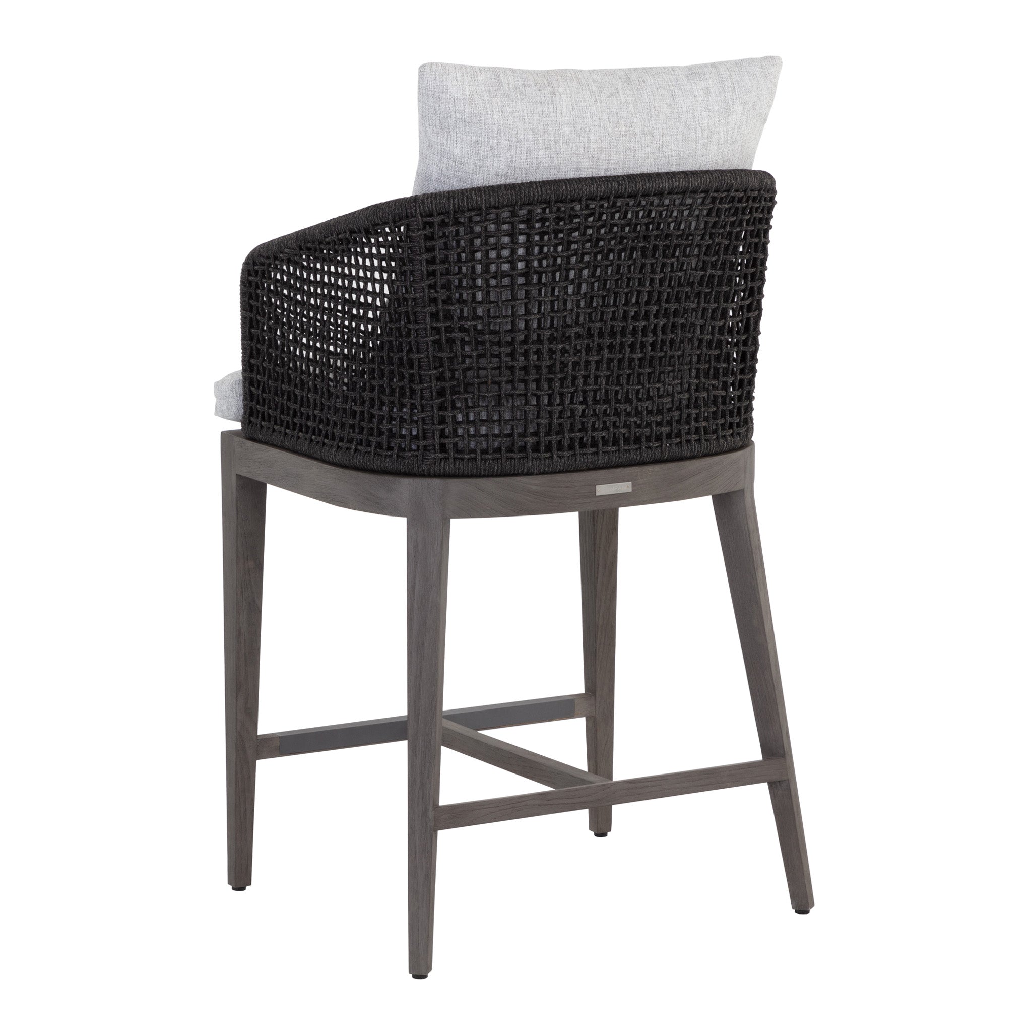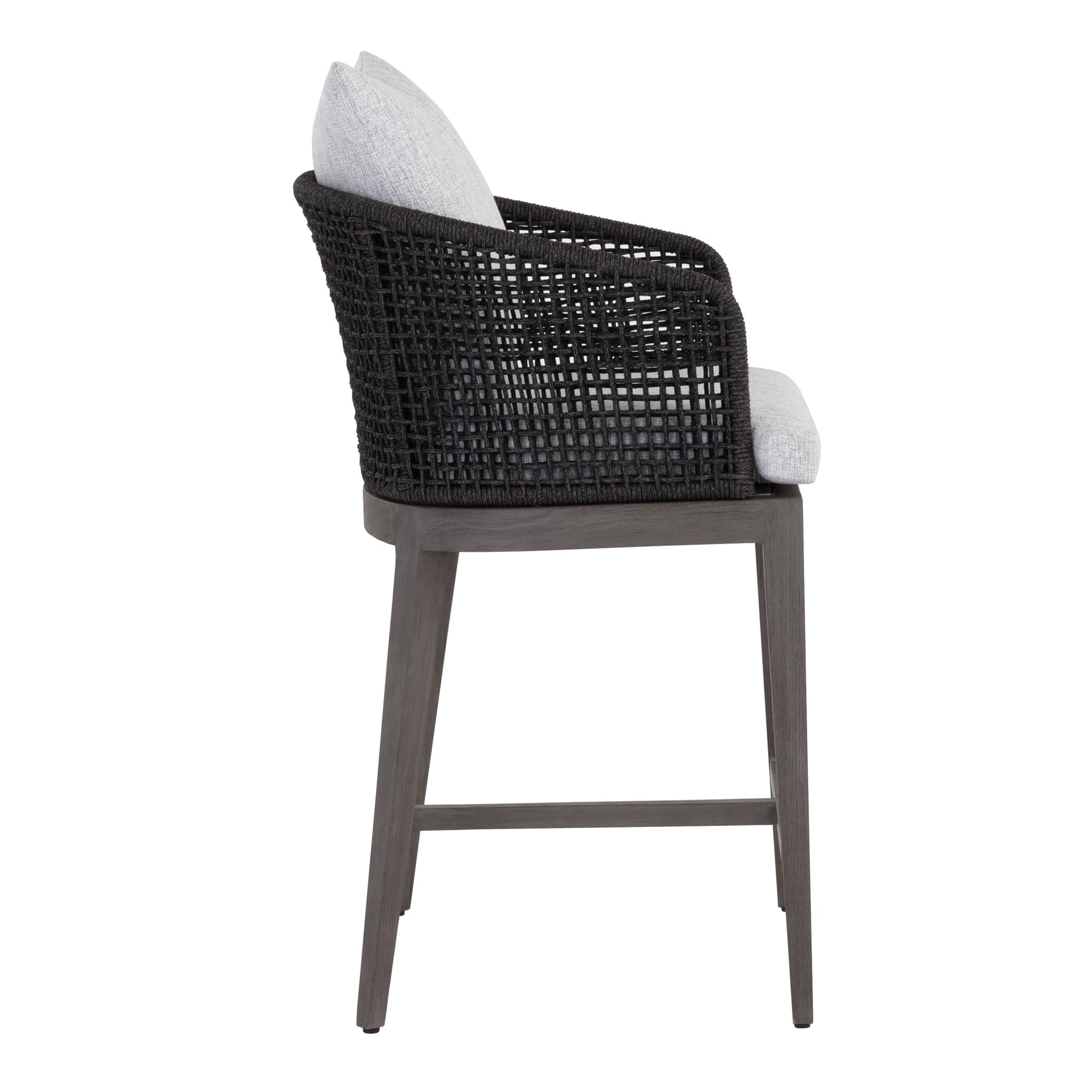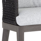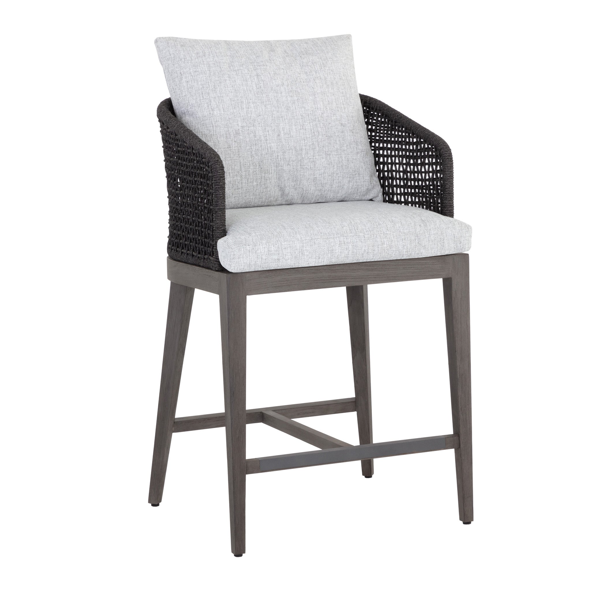 There's no reason your backyard or patio can't be as stylish and comfortable as every other room in your home. Create a timeless outdoor oasis for you to both relax and dine in by accenting your outdoor furnishings with our modern Catalina Outdoor Counter Stools. Constructed with a barrelback frame wrapped in a sleek dark grey weave, these counter stools have a durable smoky grey teak wood base and a chic marble fabric seat, for comfort and beauty you can enjoy for years to come. Get your backyard summer-ready with these versatile outdoor chairs.