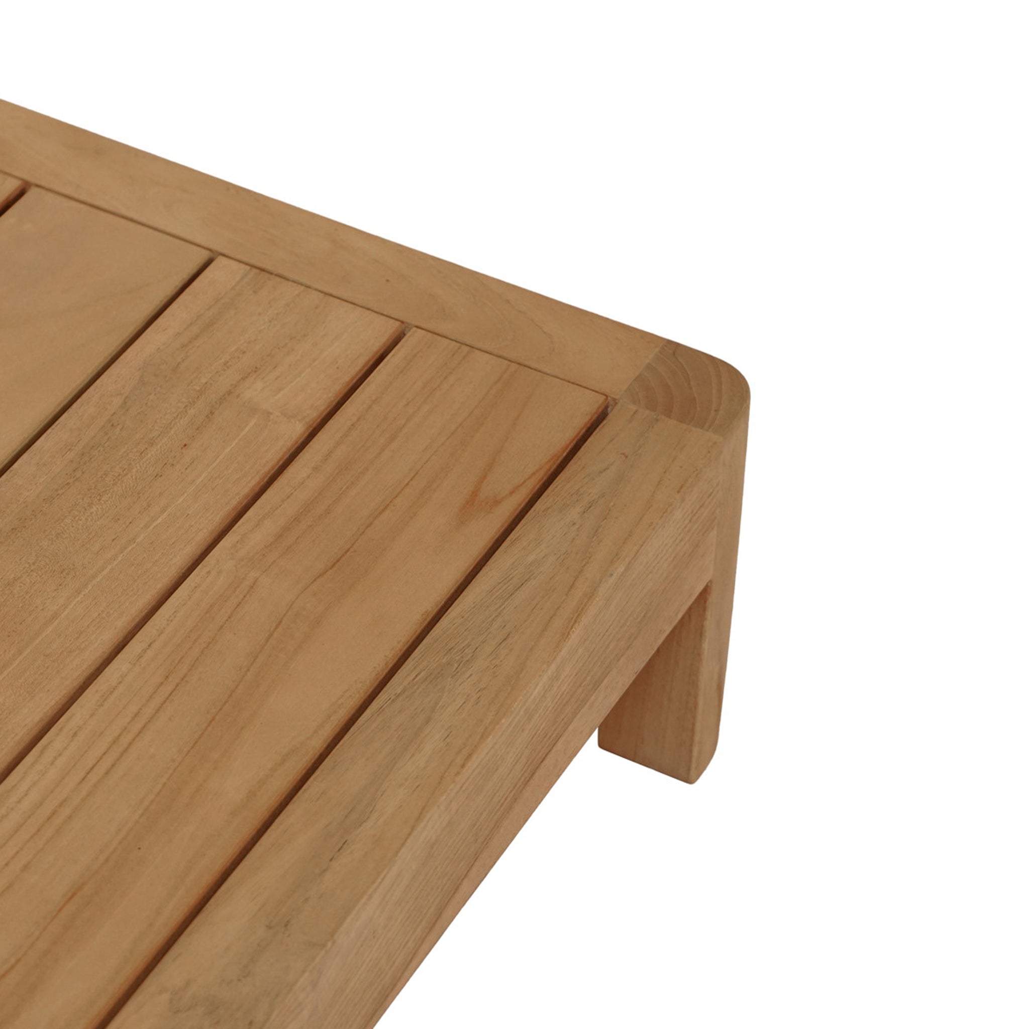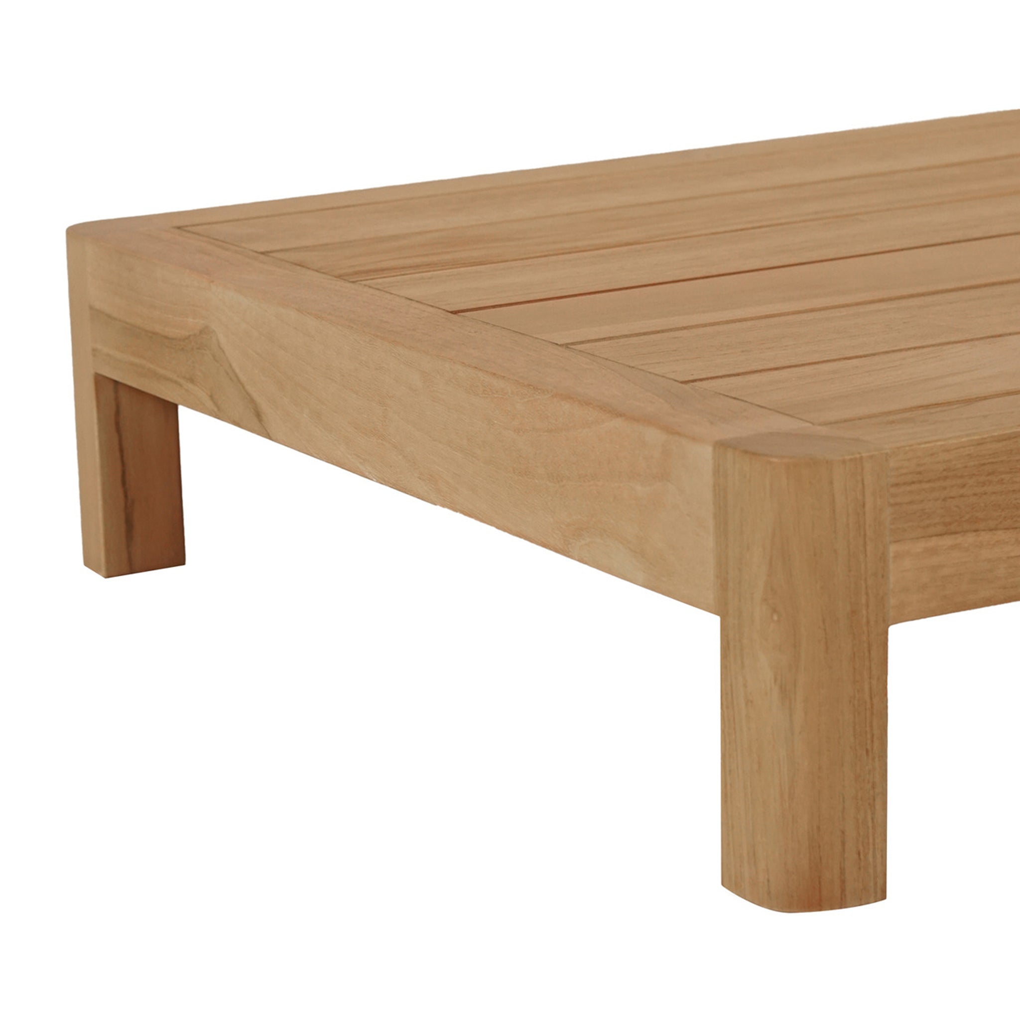 The Elsa outdoor side table complements outdoor seating with sleek simplicity. This solid teak side table features a contemporary low-profile design, perfectly paired with lower lounge seating. The natural finish highlights the beauty of the wood grain, adding warmth to the outdoor space and a durable and weather-resistant addition to the patio or poolside area.