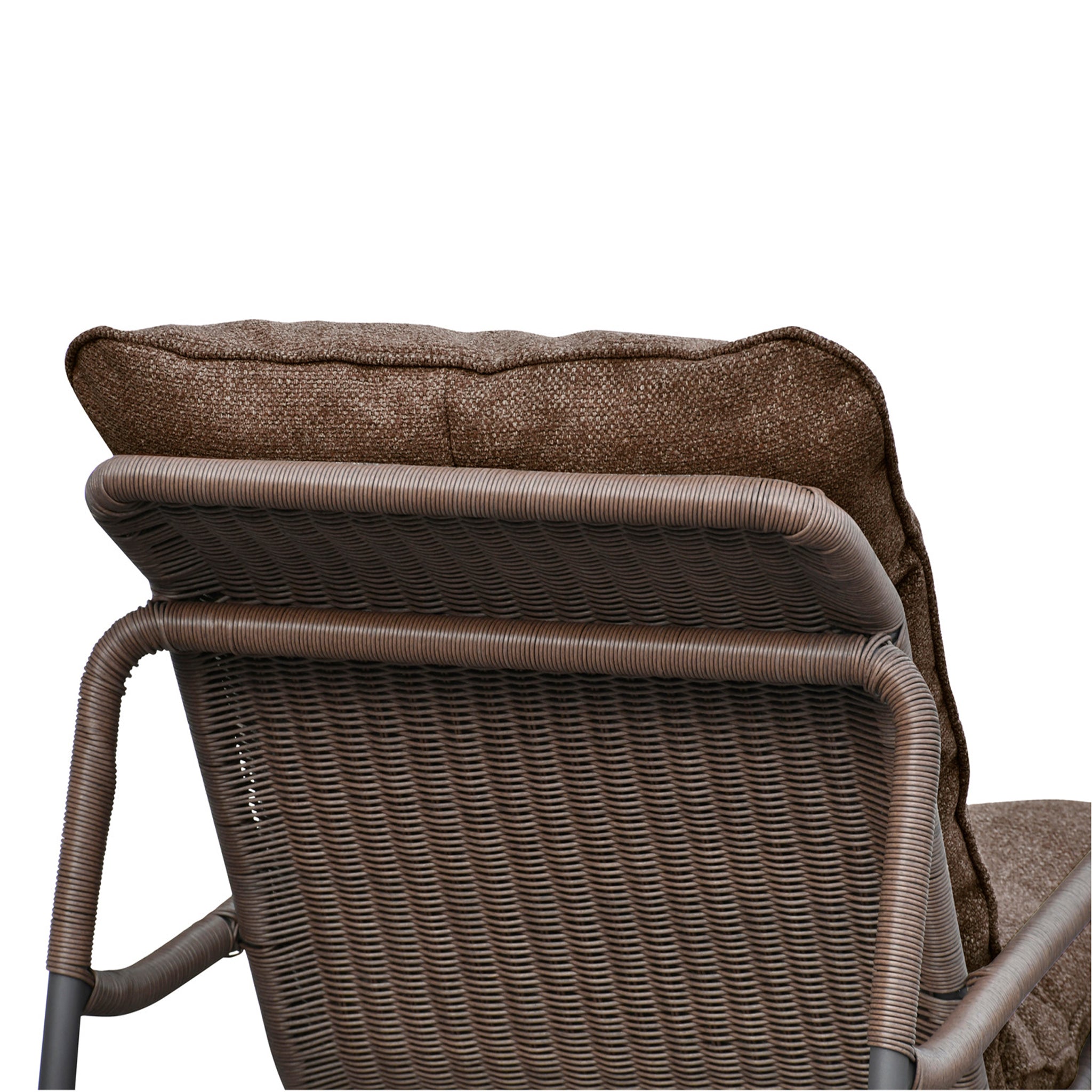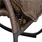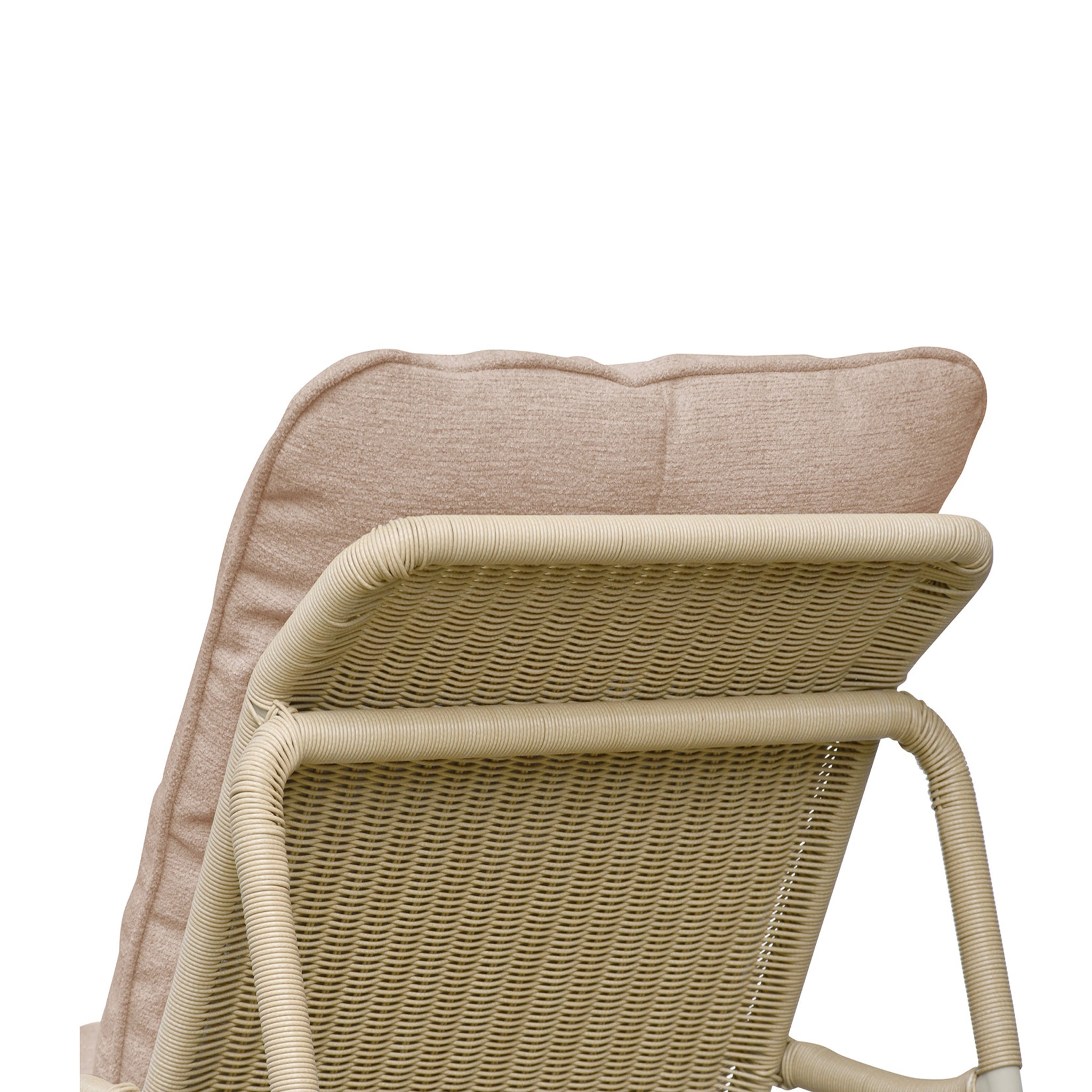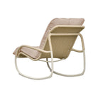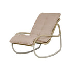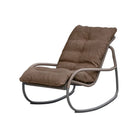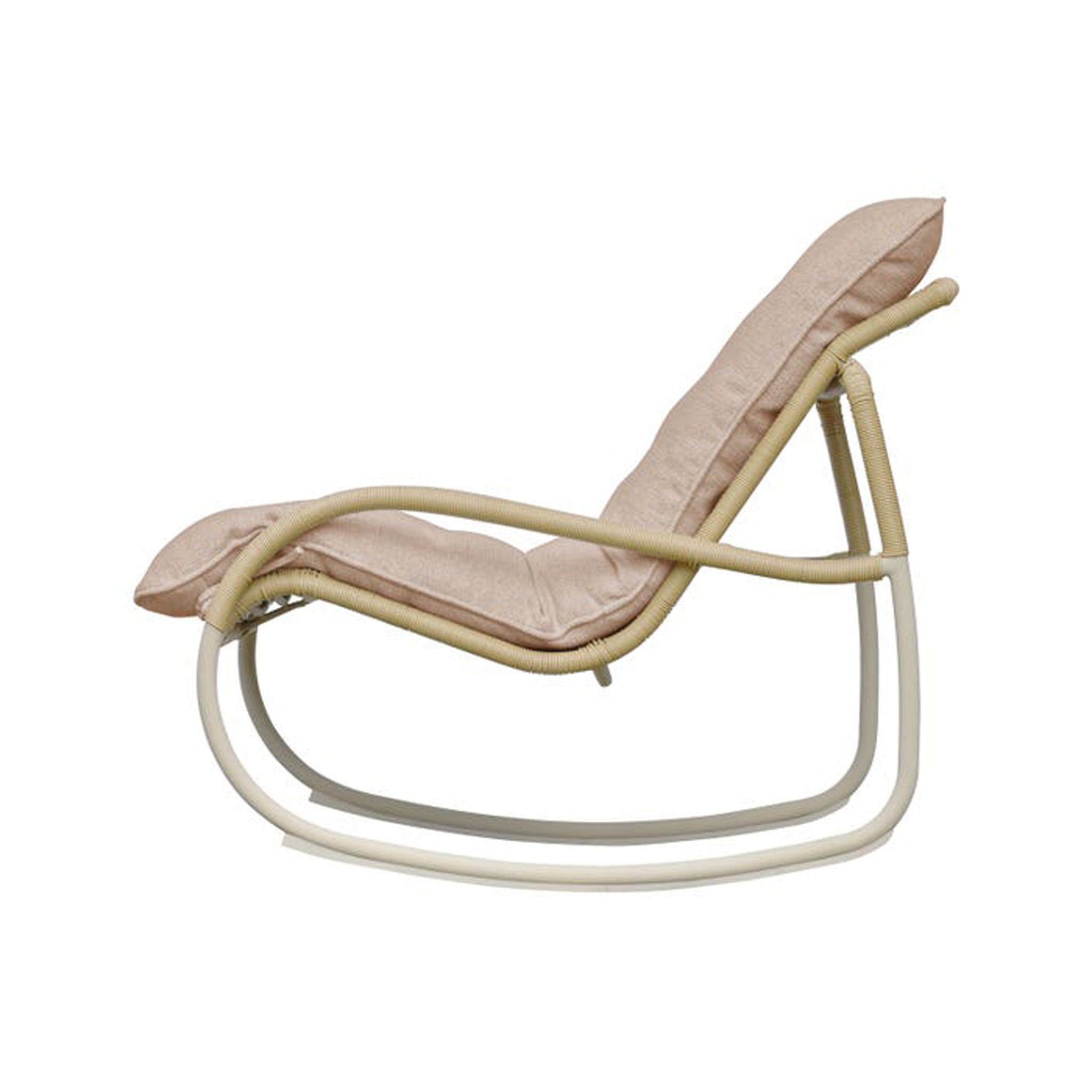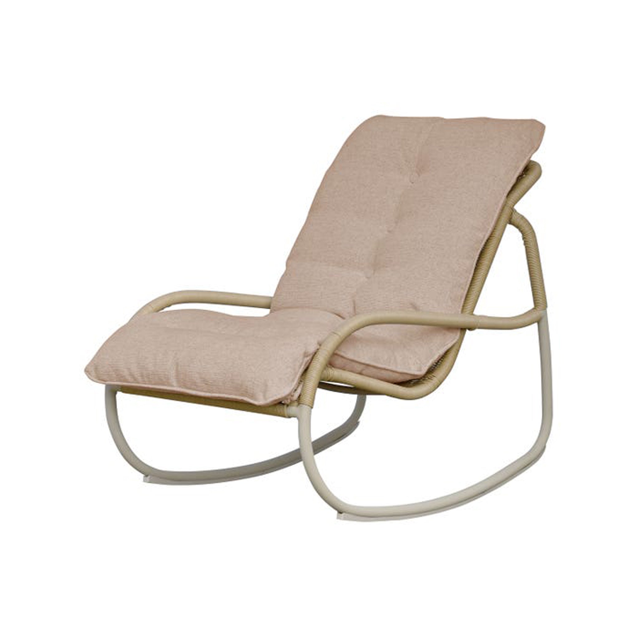 The Livorno rocking chair's sleek aluminum frame harmoniously blends with synthetic wicker, creating an understated luxe feel. The plush cushion molds to your body, inviting relaxation. Remove the cushion to reveal intricate woven seating, offering a minimalist alternative.