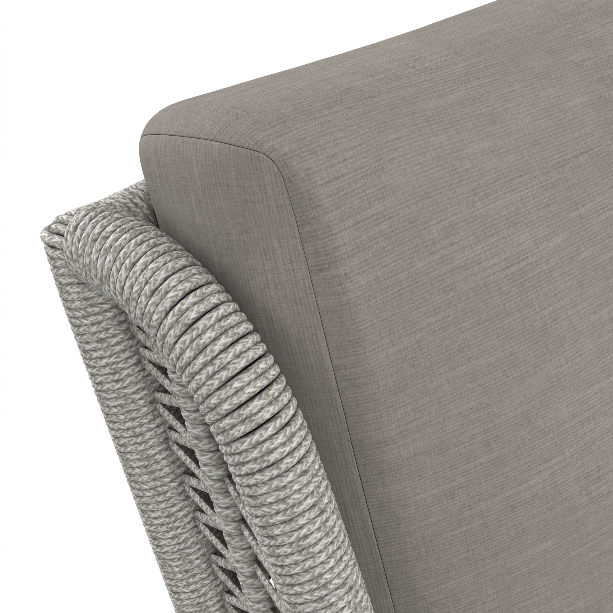 Material: Solid Teak Wood, Powder Coated Aluminum, Greymix Weave on Taupe Aluminum Frame
