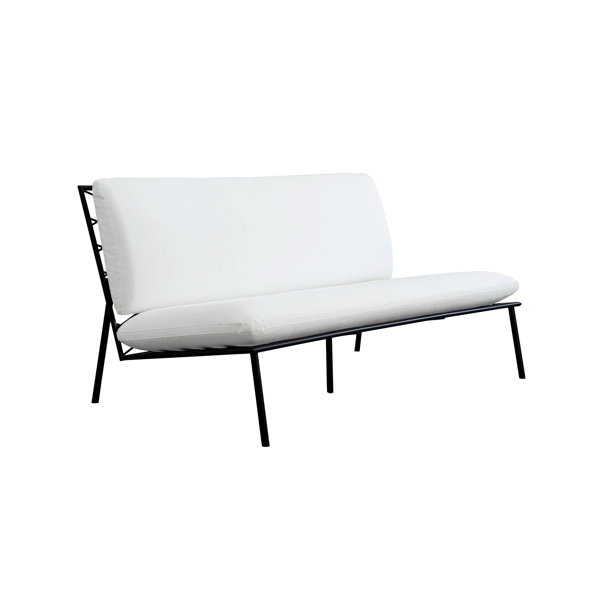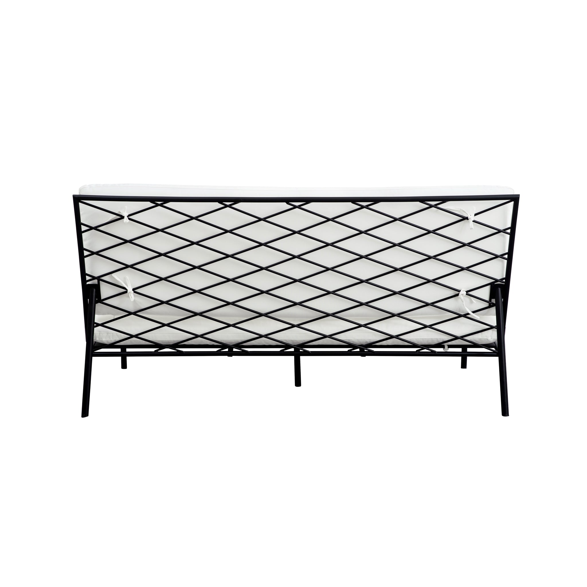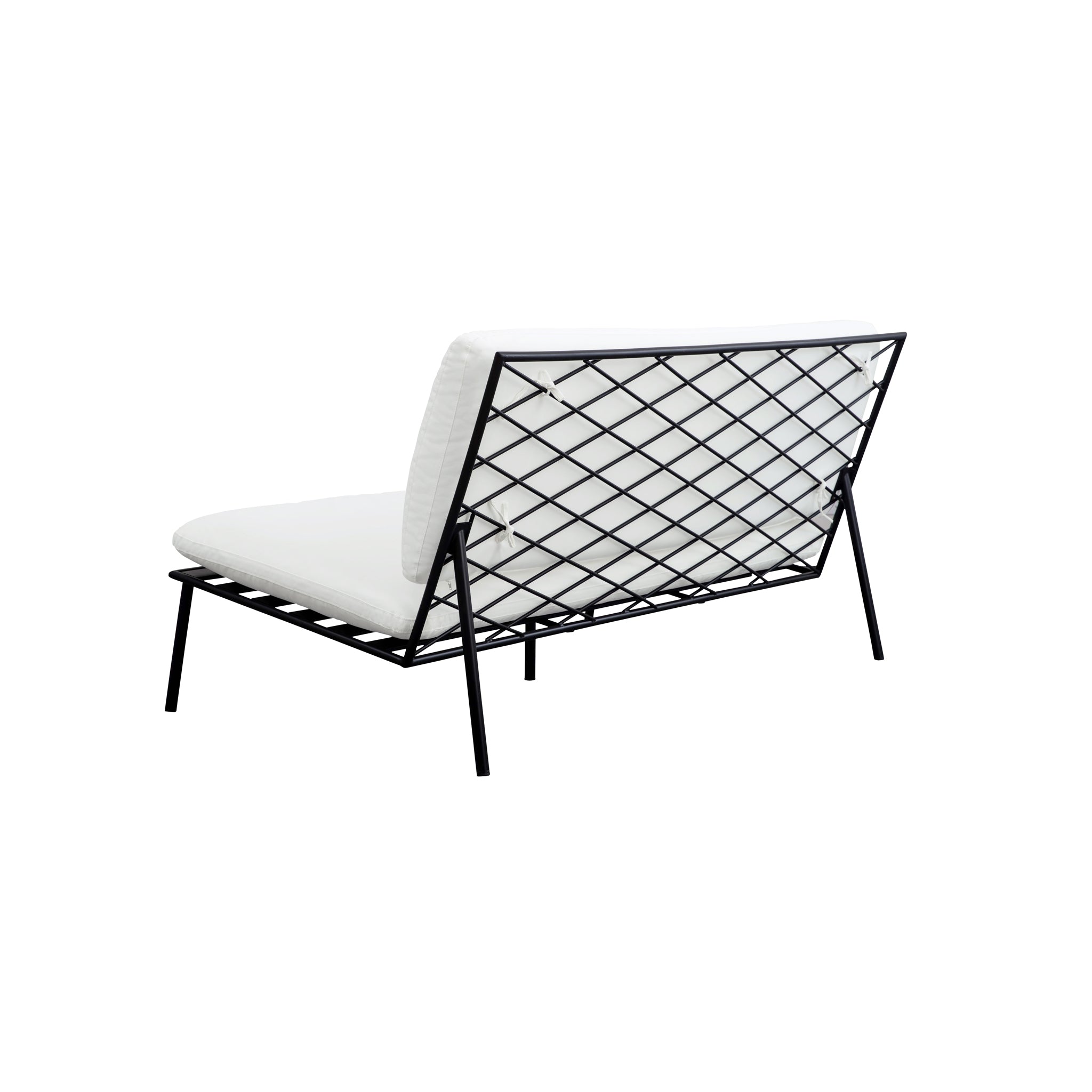 The Susan outdoor sofa’s armless design includes quick-dry foam cushions covered in 100% Olefin fabric that resists fading and includes ties for stability. It features a durable stainless-steel frame with elegant crisscross detailing. This piece combines superior comfort with exceptional weather resilience, making it perfect for outdoor use.