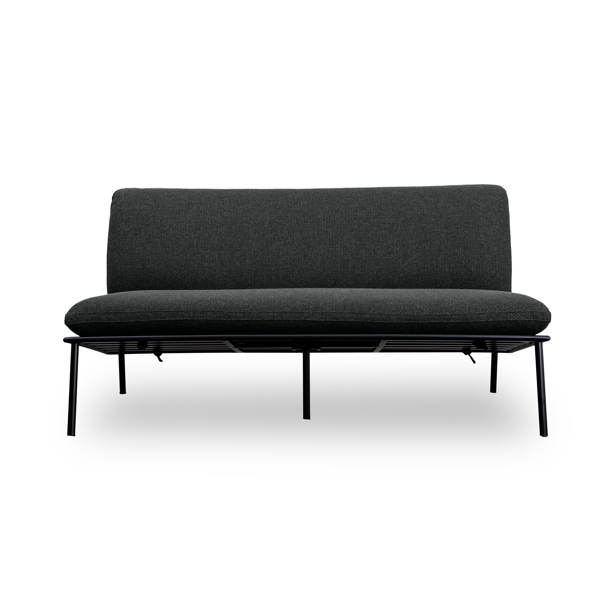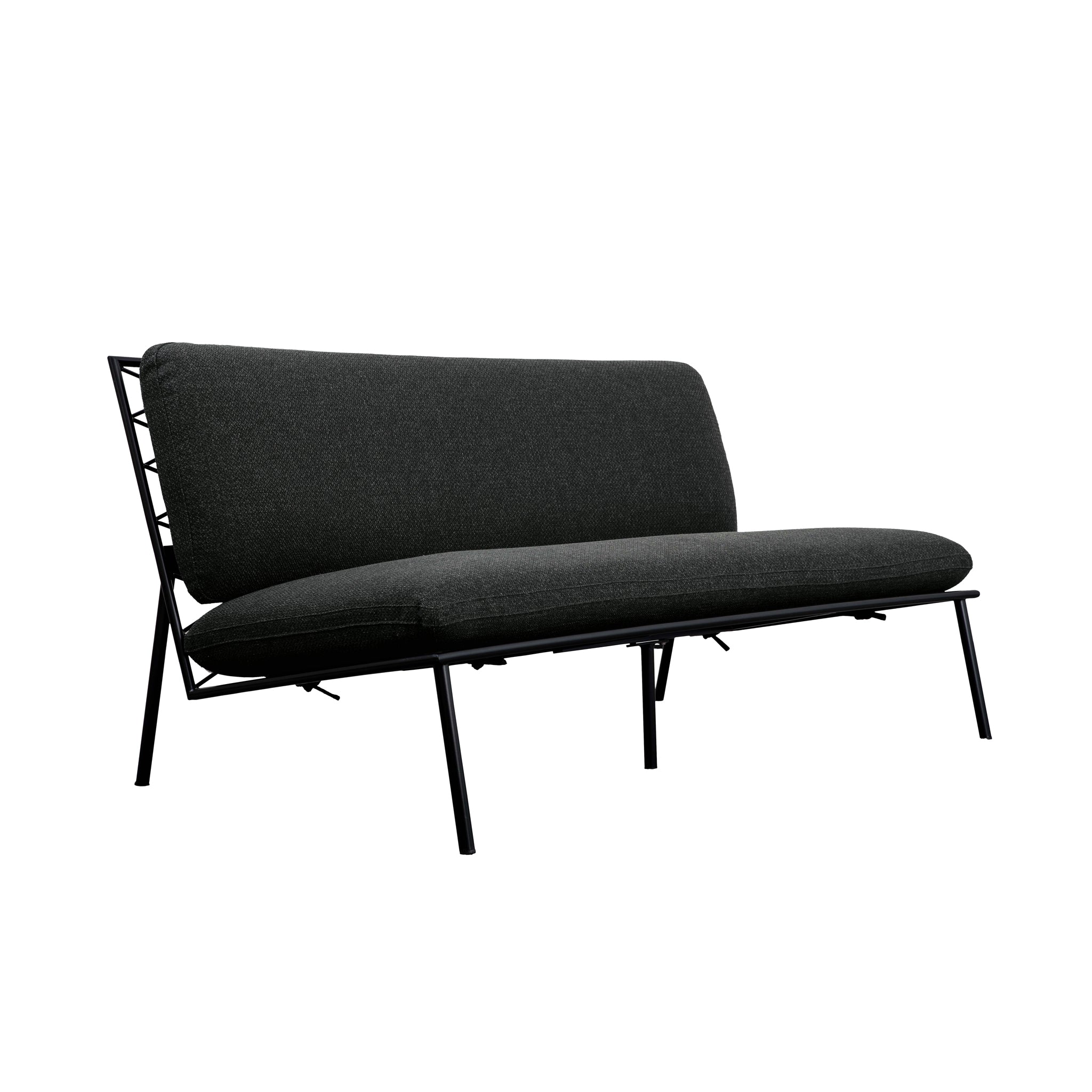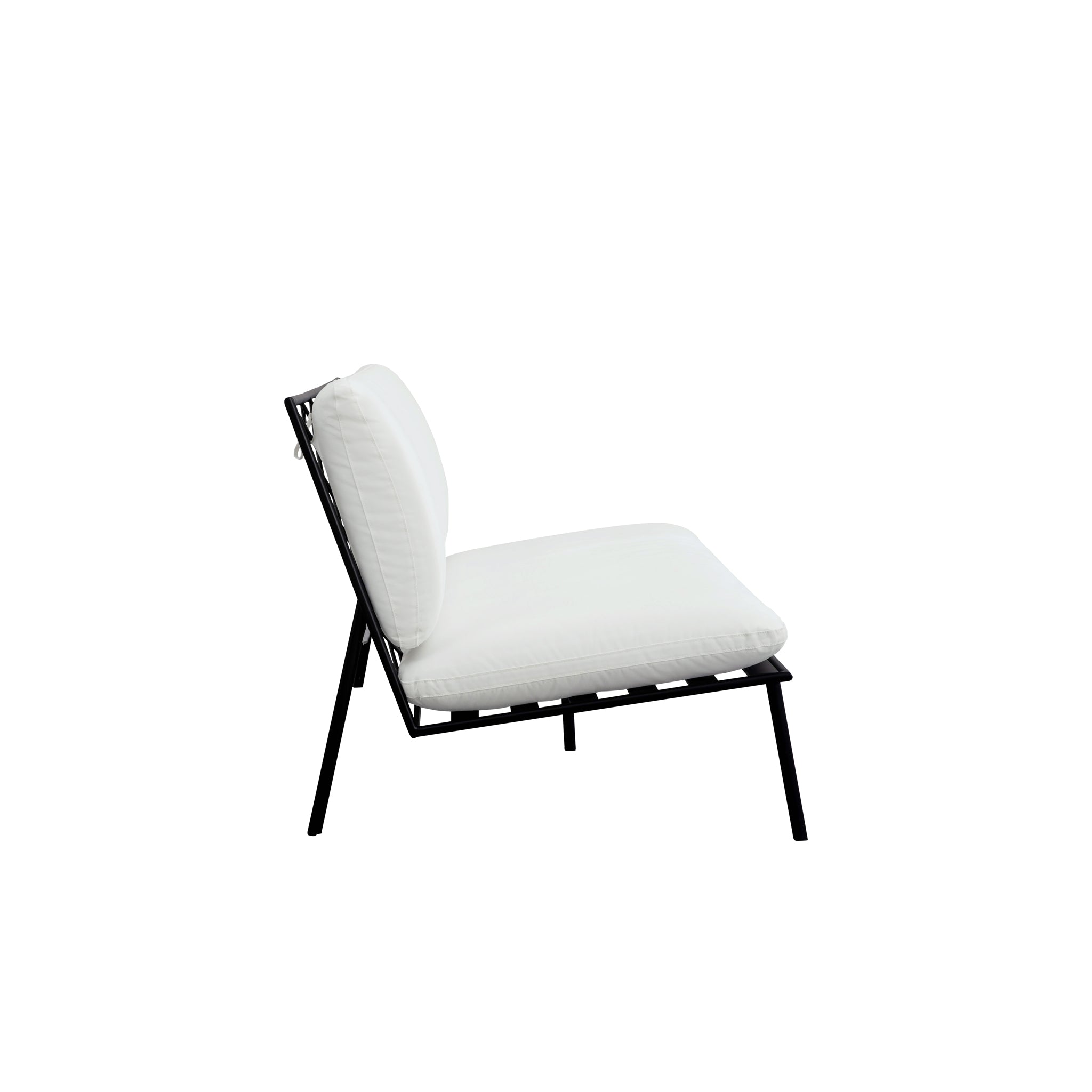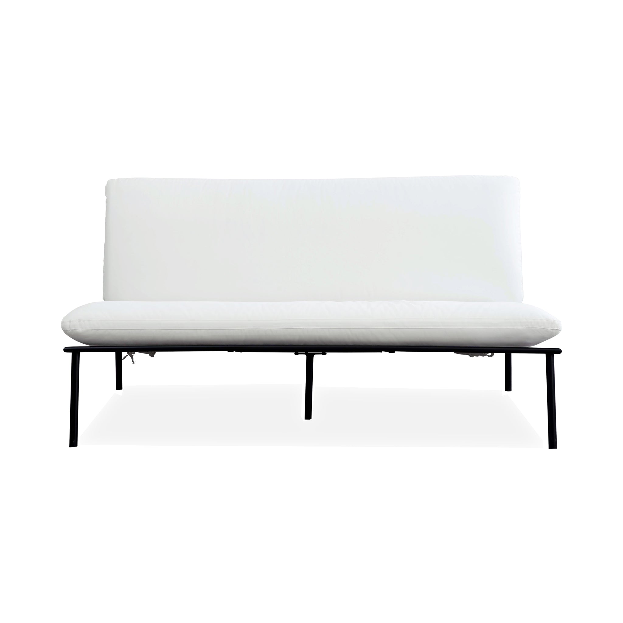 The Susan outdoor sofa’s armless design includes quick-dry foam cushions covered in 100% Olefin fabric that resists fading and includes ties for stability. It features a durable stainless-steel frame with elegant crisscross detailing. This piece combines superior comfort with exceptional weather resilience, making it perfect for outdoor use.
