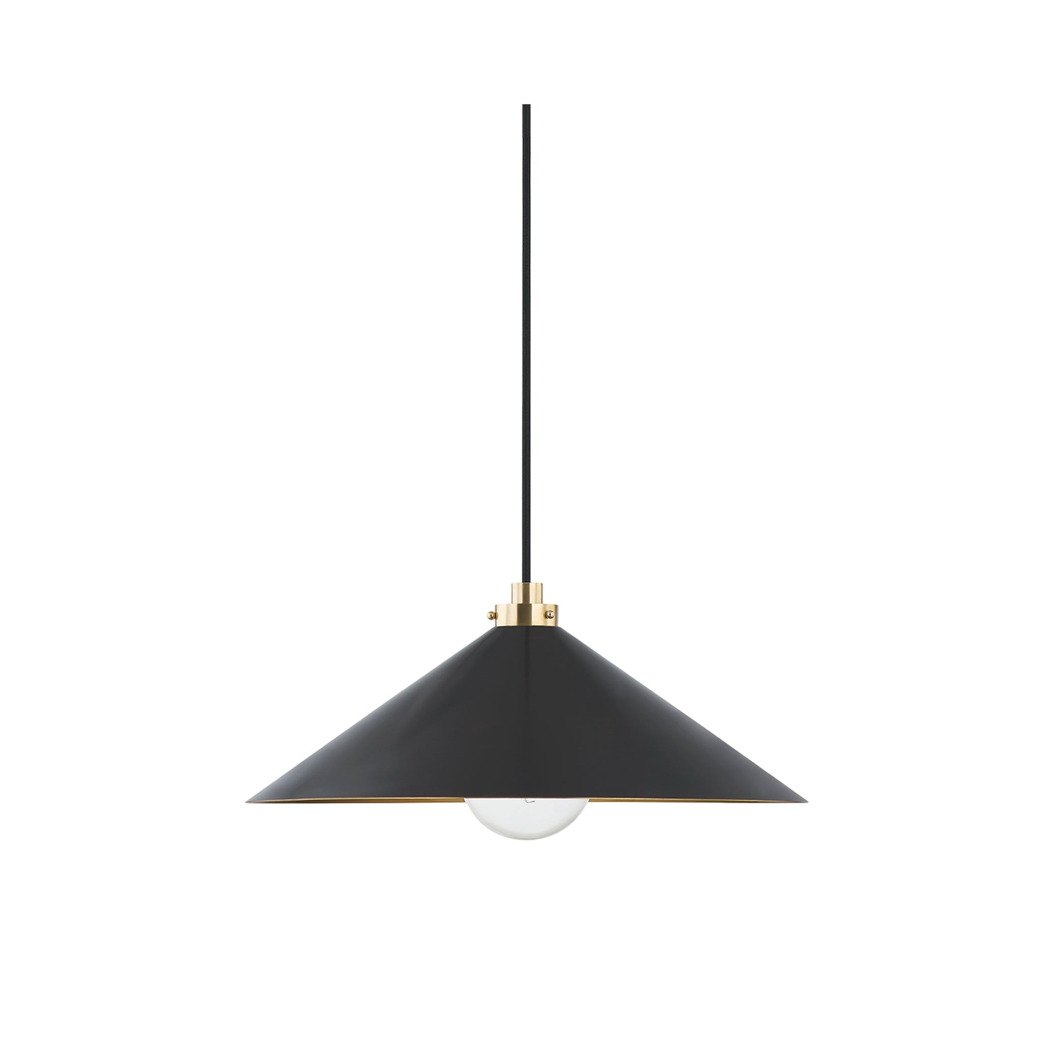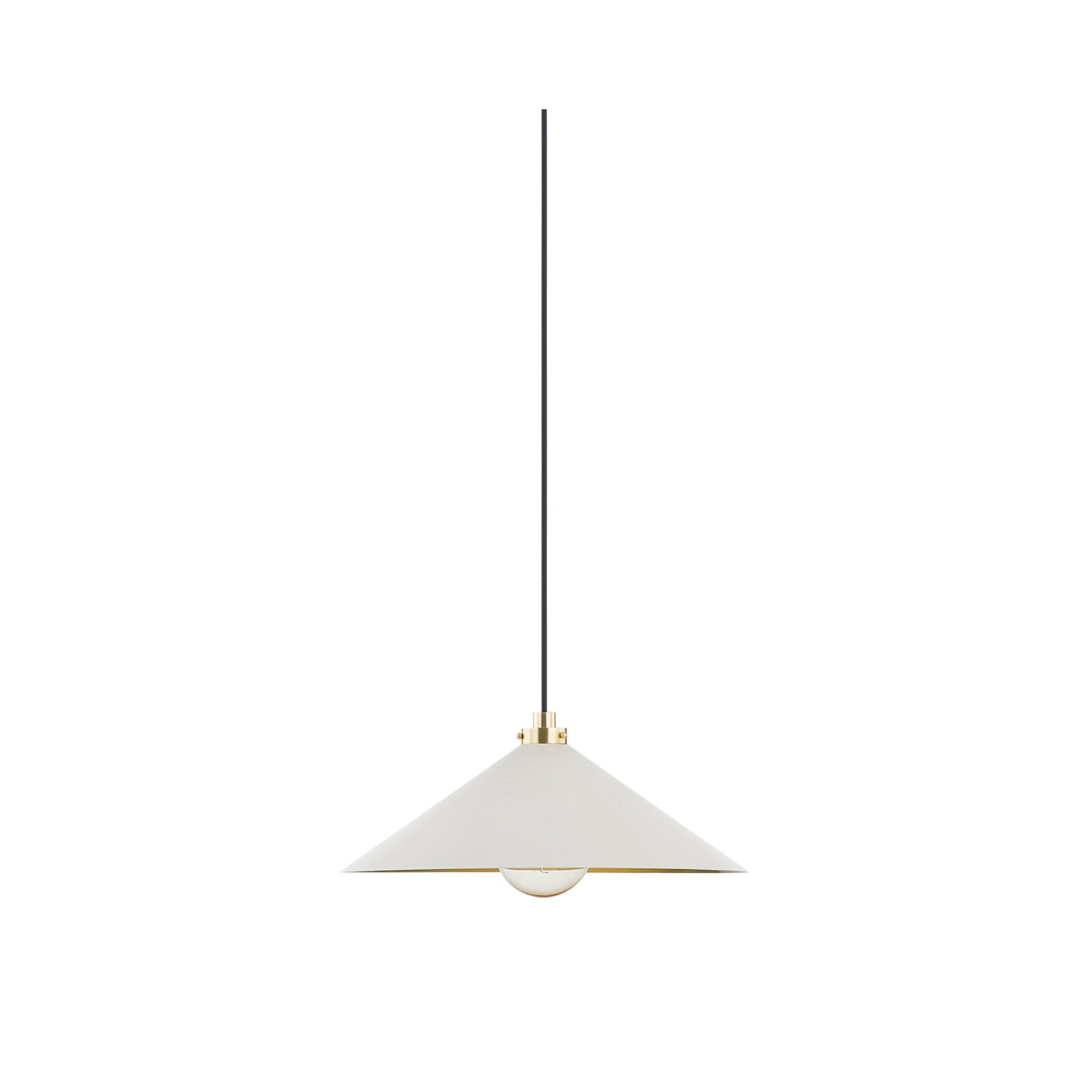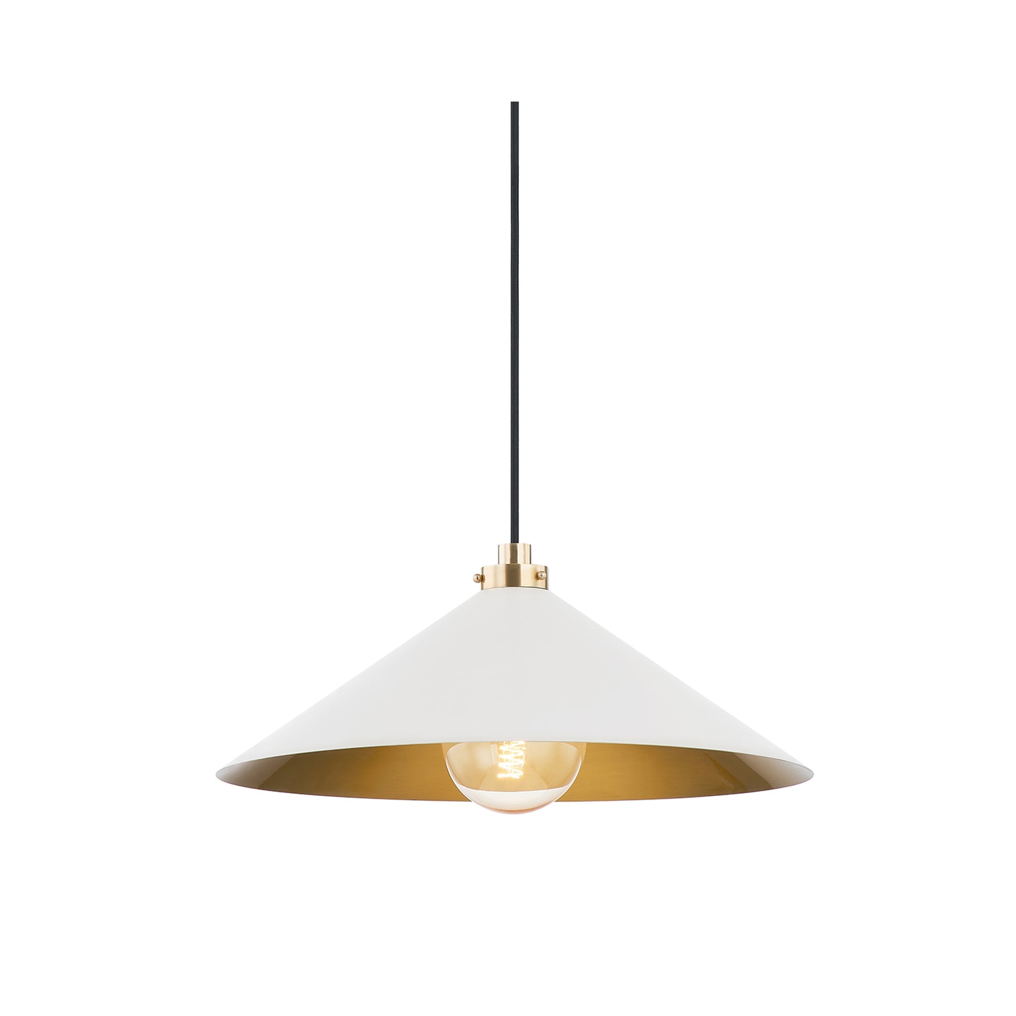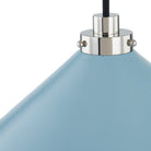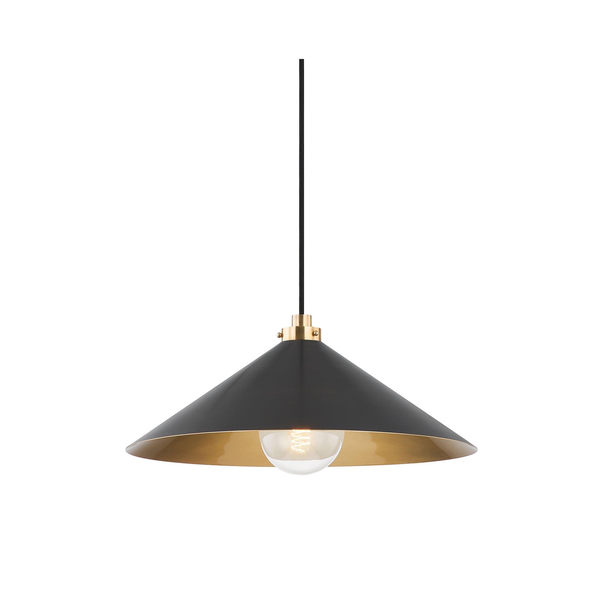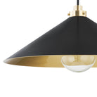 This classic metal shade design feels special with fresh finish combinations and sleek, heritage-inspired details. The contrastiing Aged Brass accents and modern gooseneck arm allow the pendants and sconce an updated, yet classic feel. The tapered shade over a five-light candelabra give the chandelier new traditional appeal. Each fixture features an Aged Brass or Polished Nickel shade that is metal on the inside and painted Off-Clivedon Large Pendant, Distressed Bronze or Bird Blue on the outside. Mark D. Sikes for Hudson Valley Lighting.