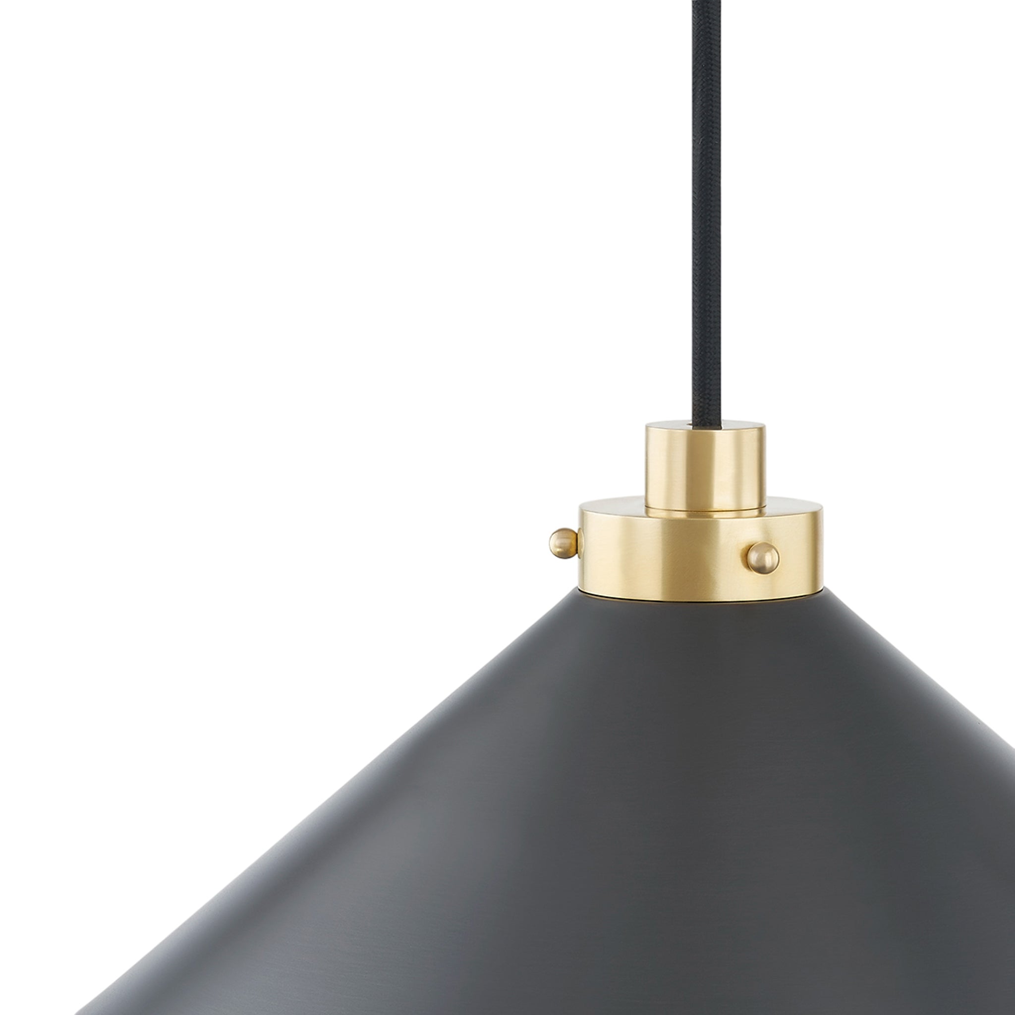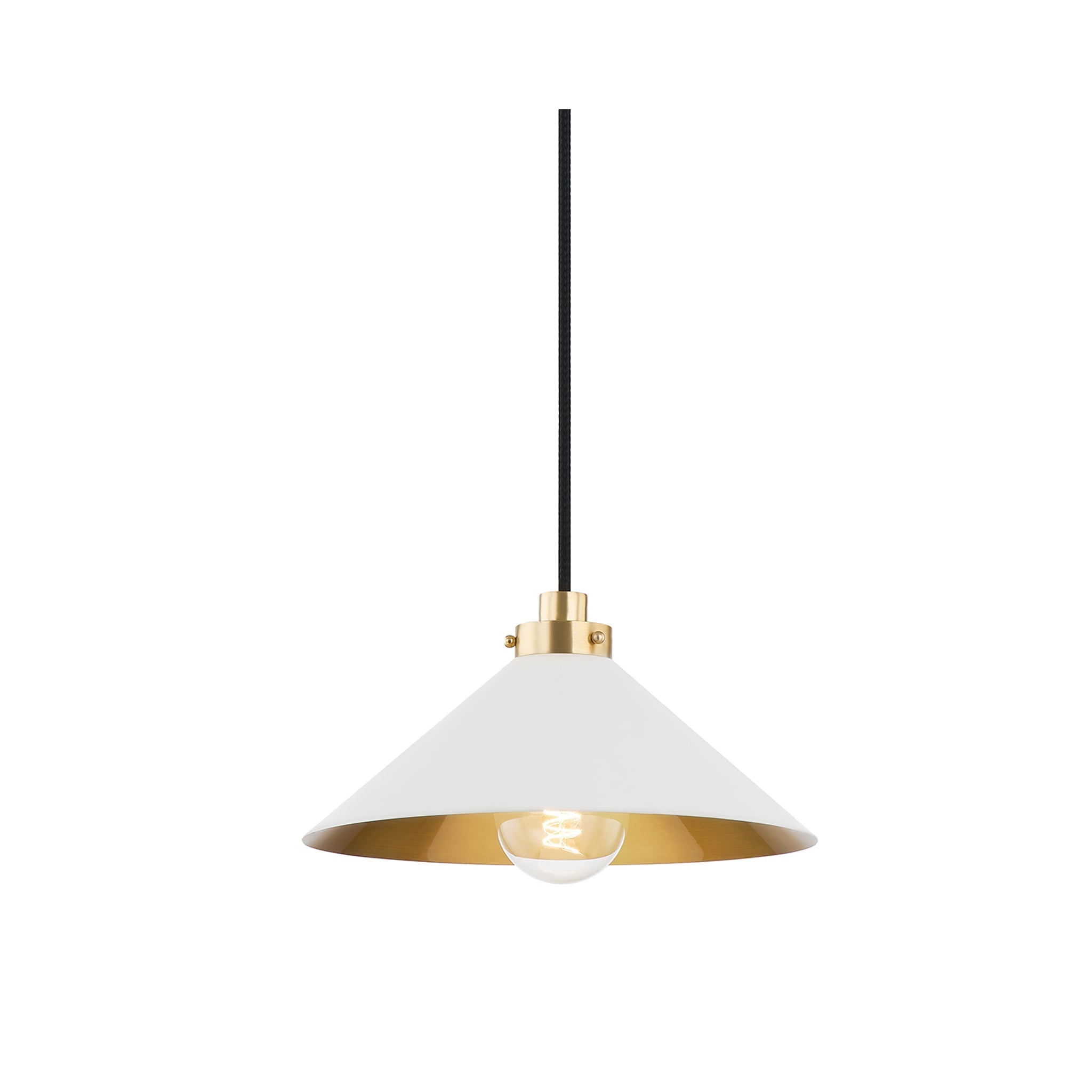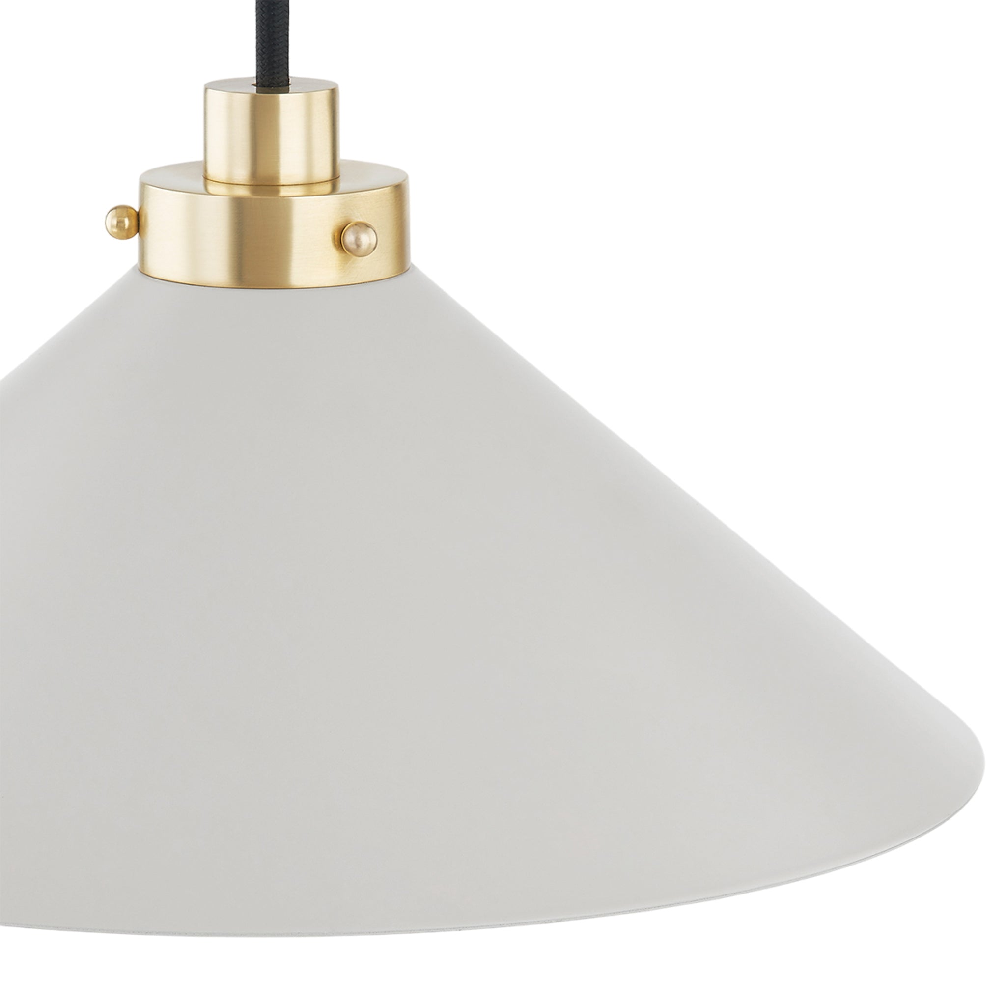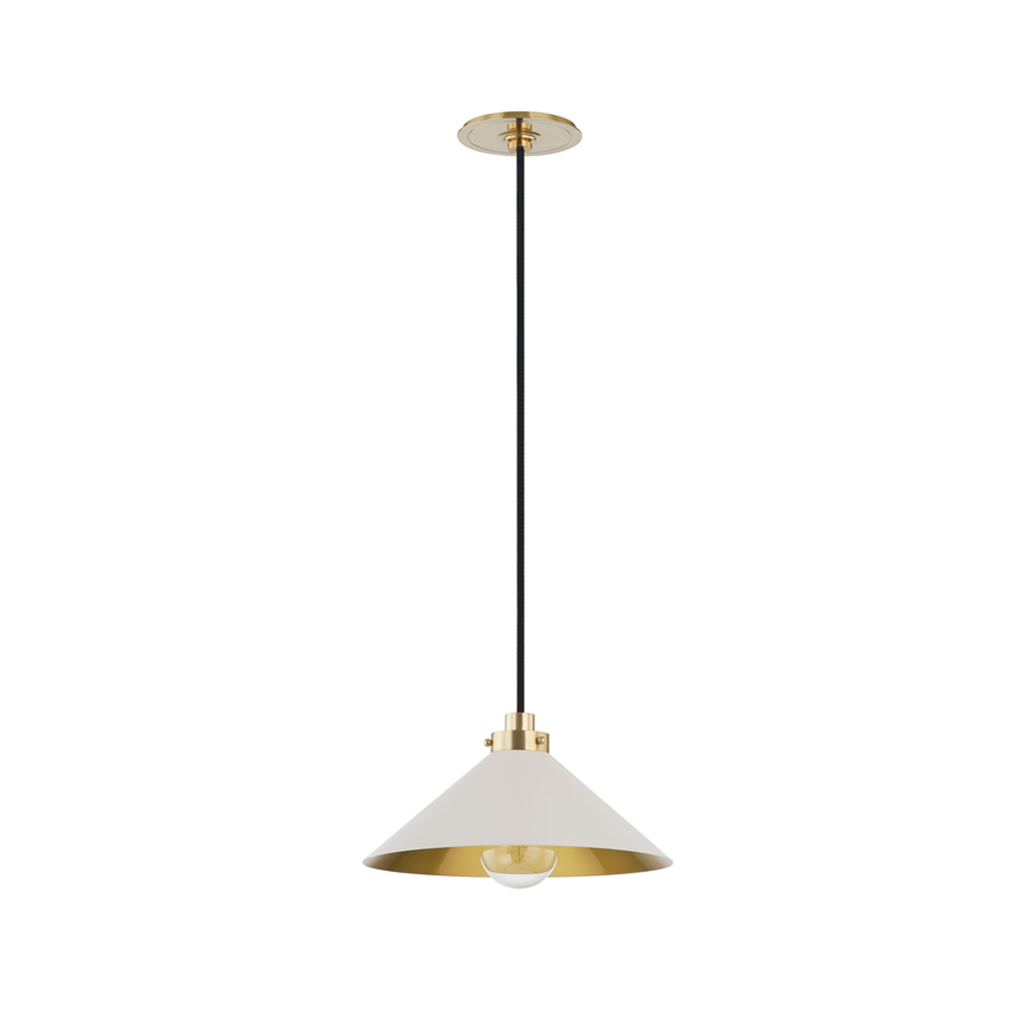 This classic metal shade design feels special with fresh finish combinations and sleek, heritage-inspired details. The contrastiing Aged Brass accents and modern gooseneck arm allow the pendants and sconce an updated, yet classic feel. The tapered shade over a five-light candelabra give the chandelier new traditional appeal. Each fixture features an Aged Brass or Polished Nickel shade that is metal on the inside and painted Off-White, Distressed Bronze or Bird Blue on the outside. Mark D. Sikes for Hudson Valley Lighting.