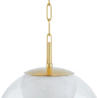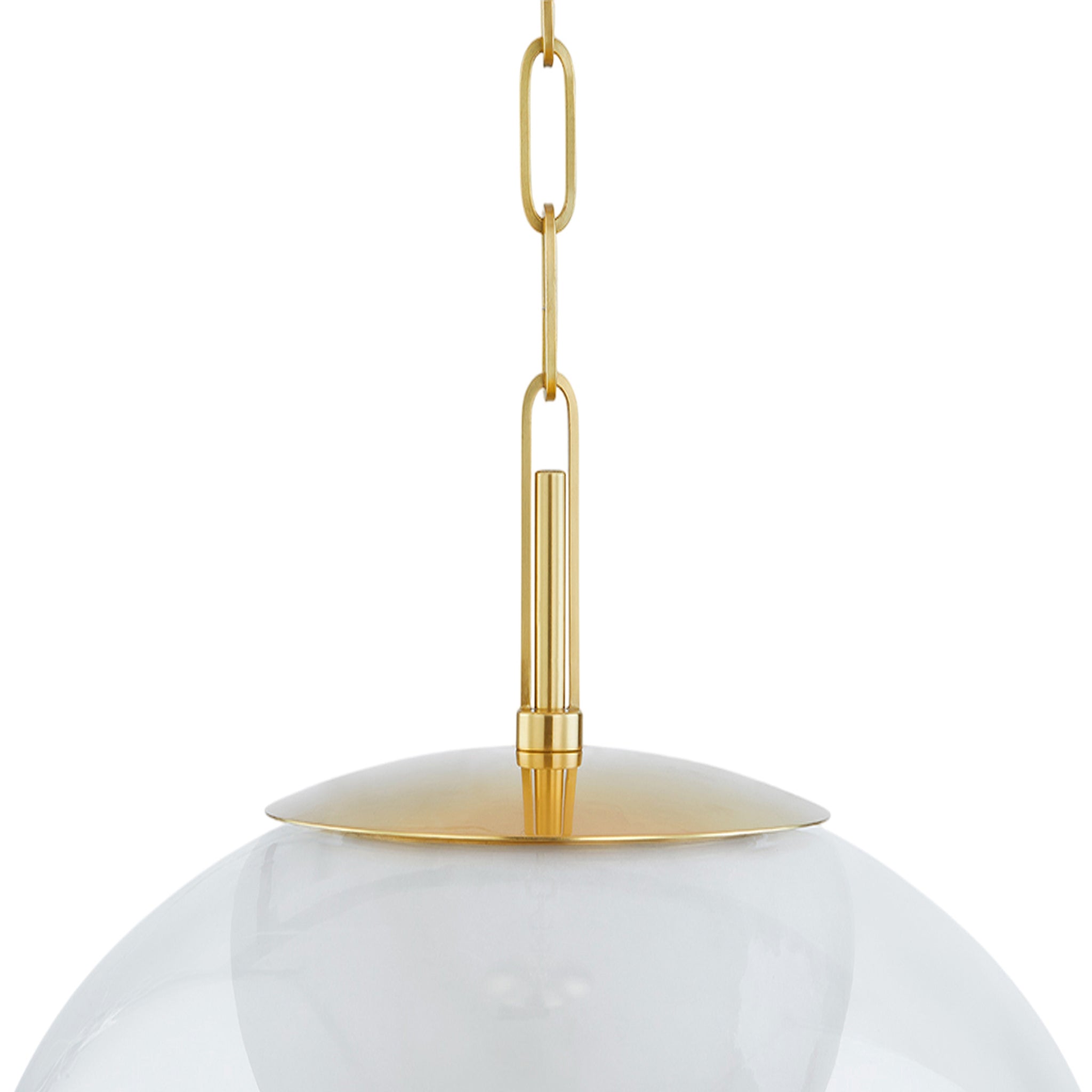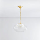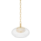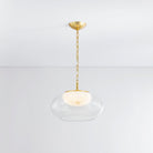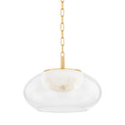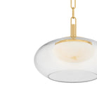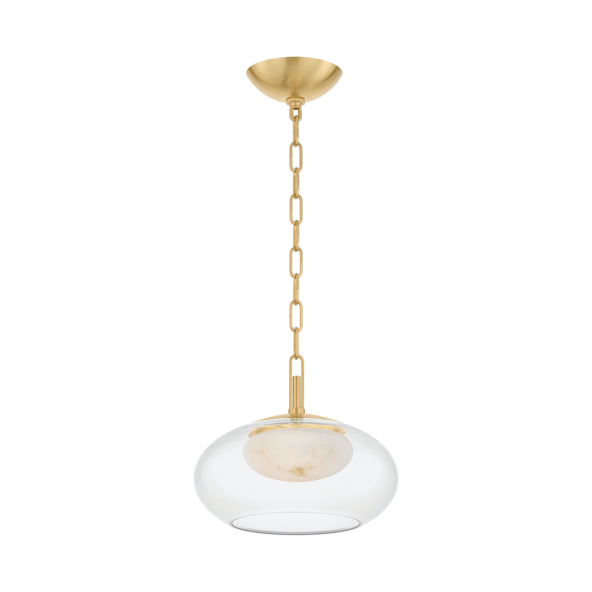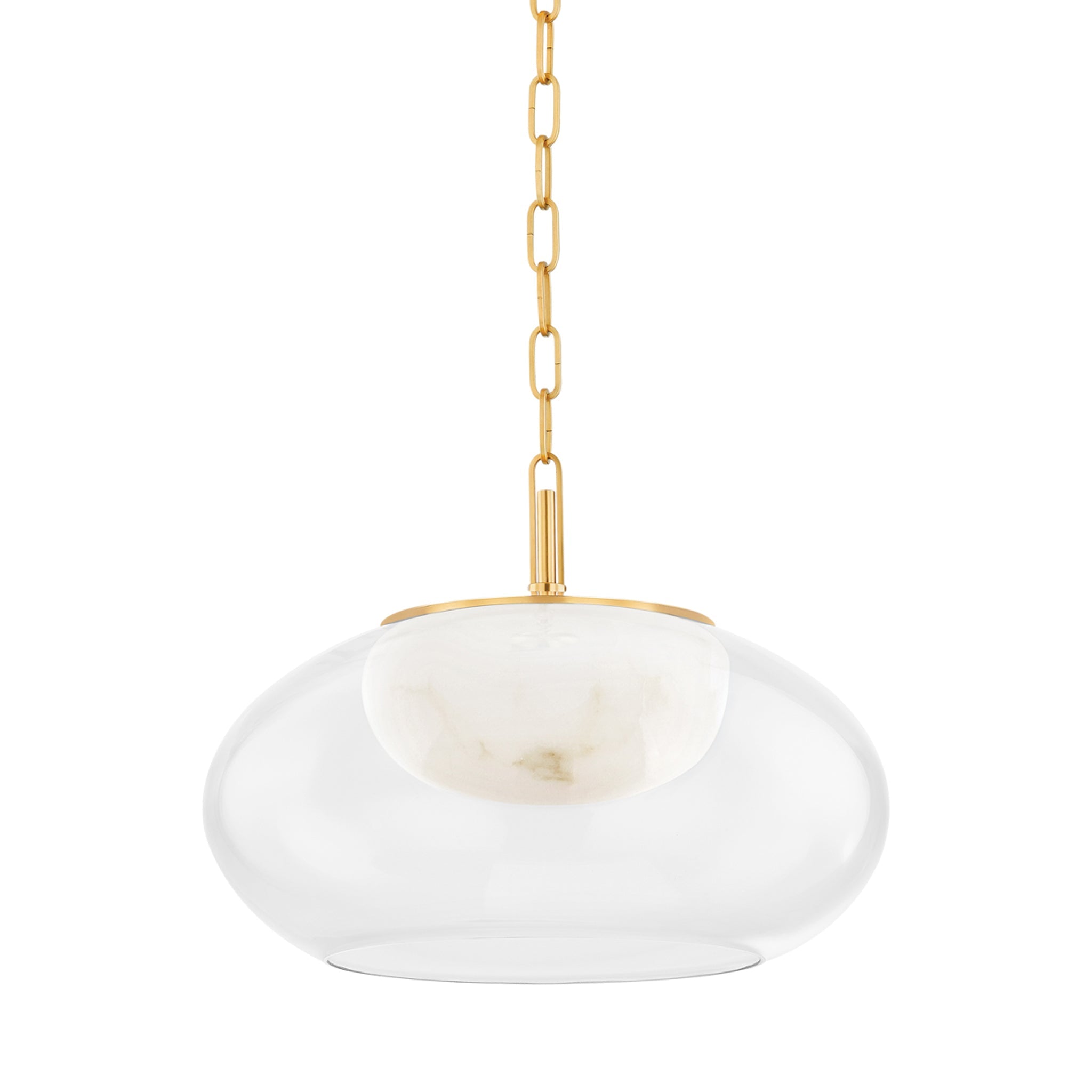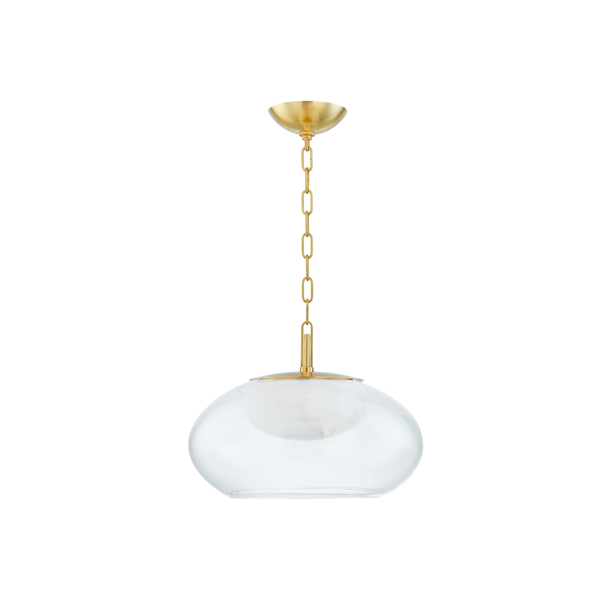 Moore stuns in its simplicity. Available in two sizes, this nested flush mount design features an outer clear glass shade that reveals alabaster within. The double layer gives the fixture an elevated, graceful presence that creates a warm diffusion of light. Finished in Aged Brass, the metalwork of Moore adds a timeless, luxurious note that complements any design style.