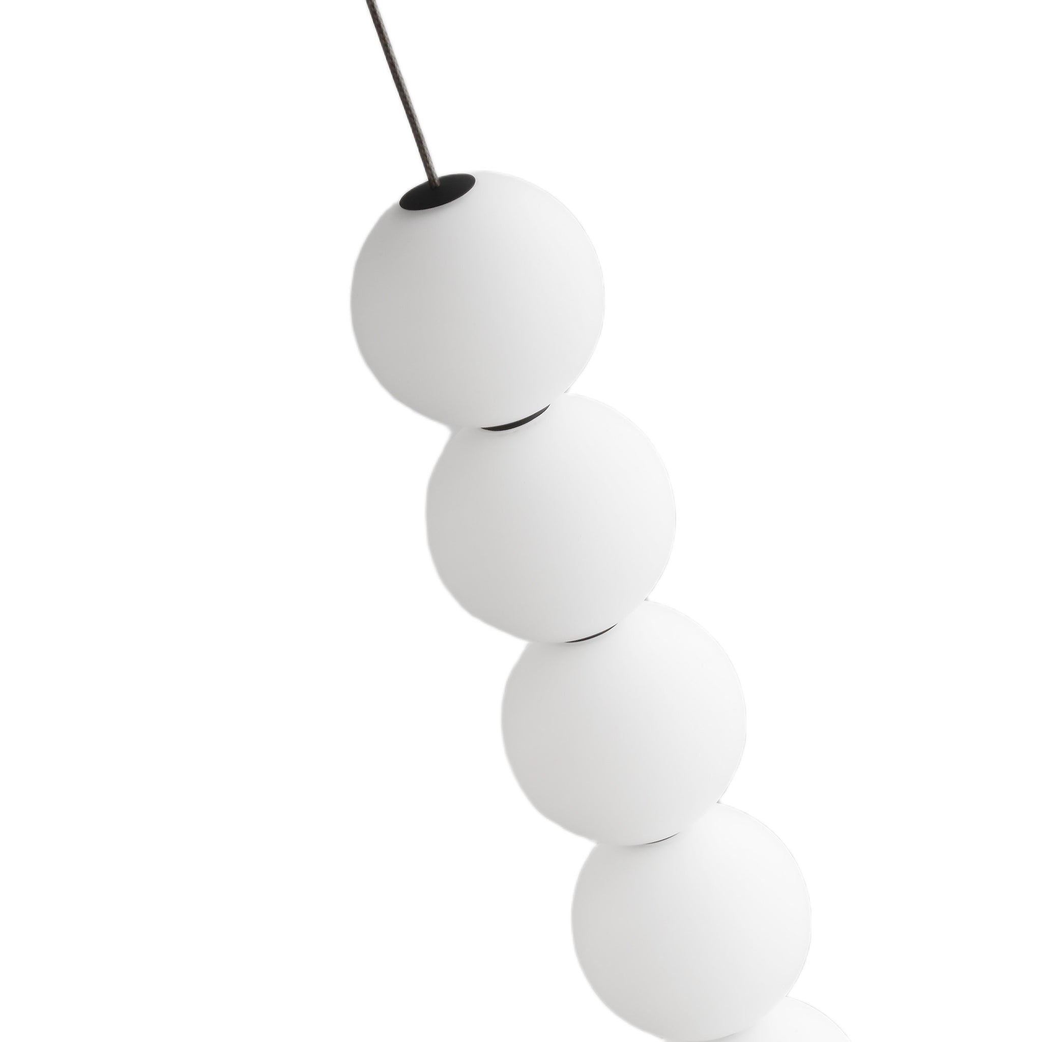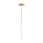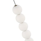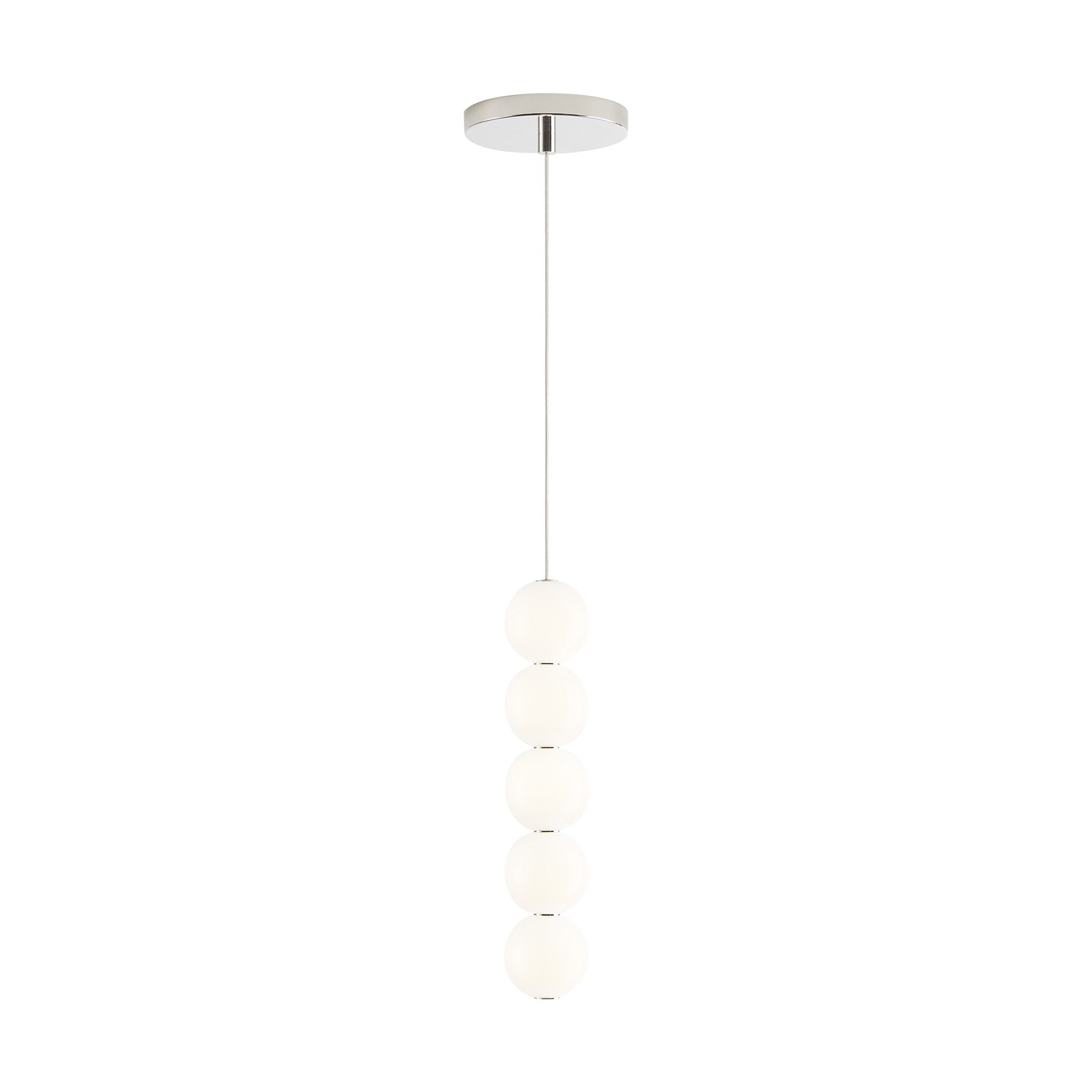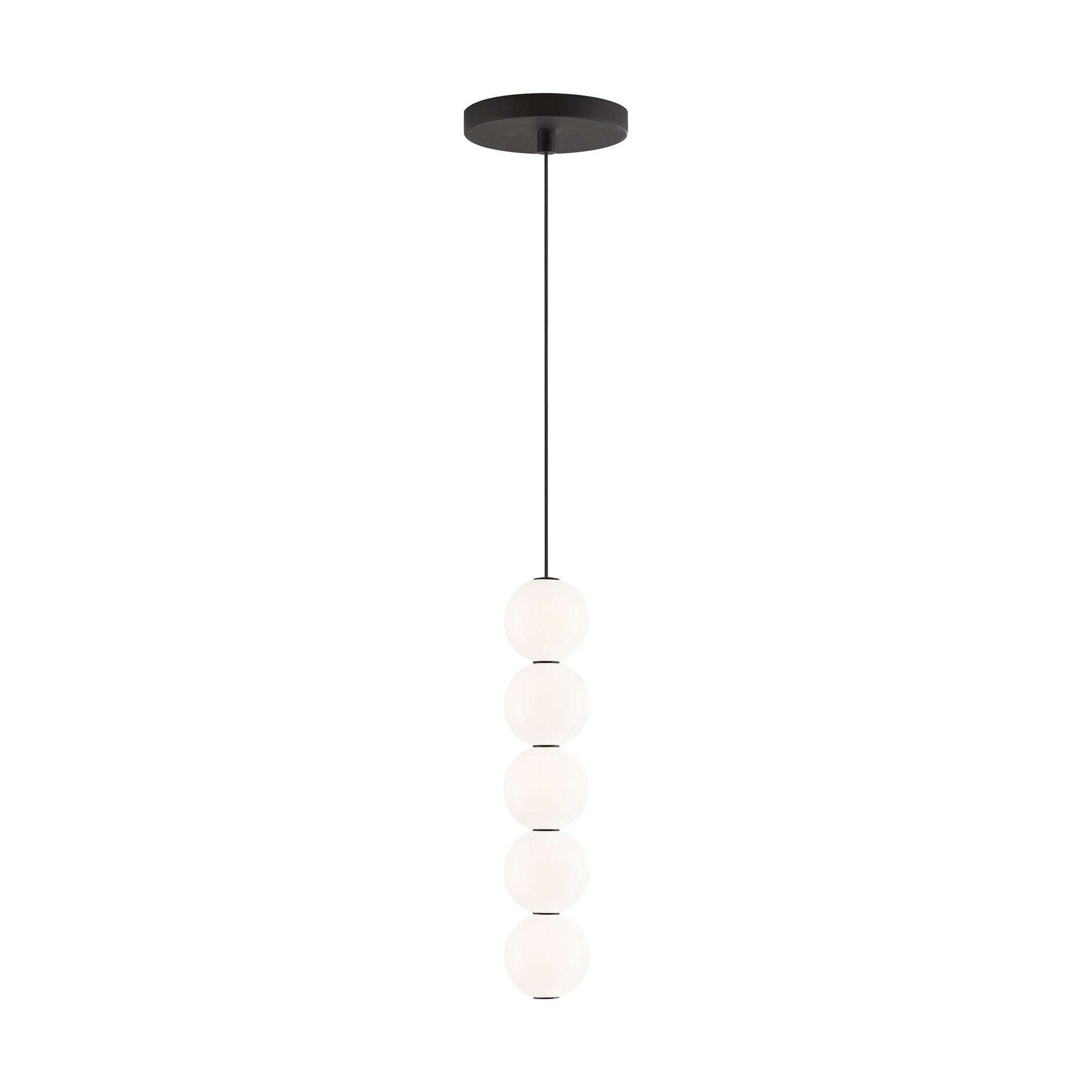 The Orbet 5-Light Line-Voltage Pendant by Sean Lavin for Visual Comfort Modern is inspired by the classic pearl with perfectly stacked milk glass orbs. LED illumination through milk-glass provides a soft diffused aesthetic and each orb is accented by a thin contrasting metal band. This fixture is the perfect design for hanging individually or clustering in multiples for a dramatic effect.