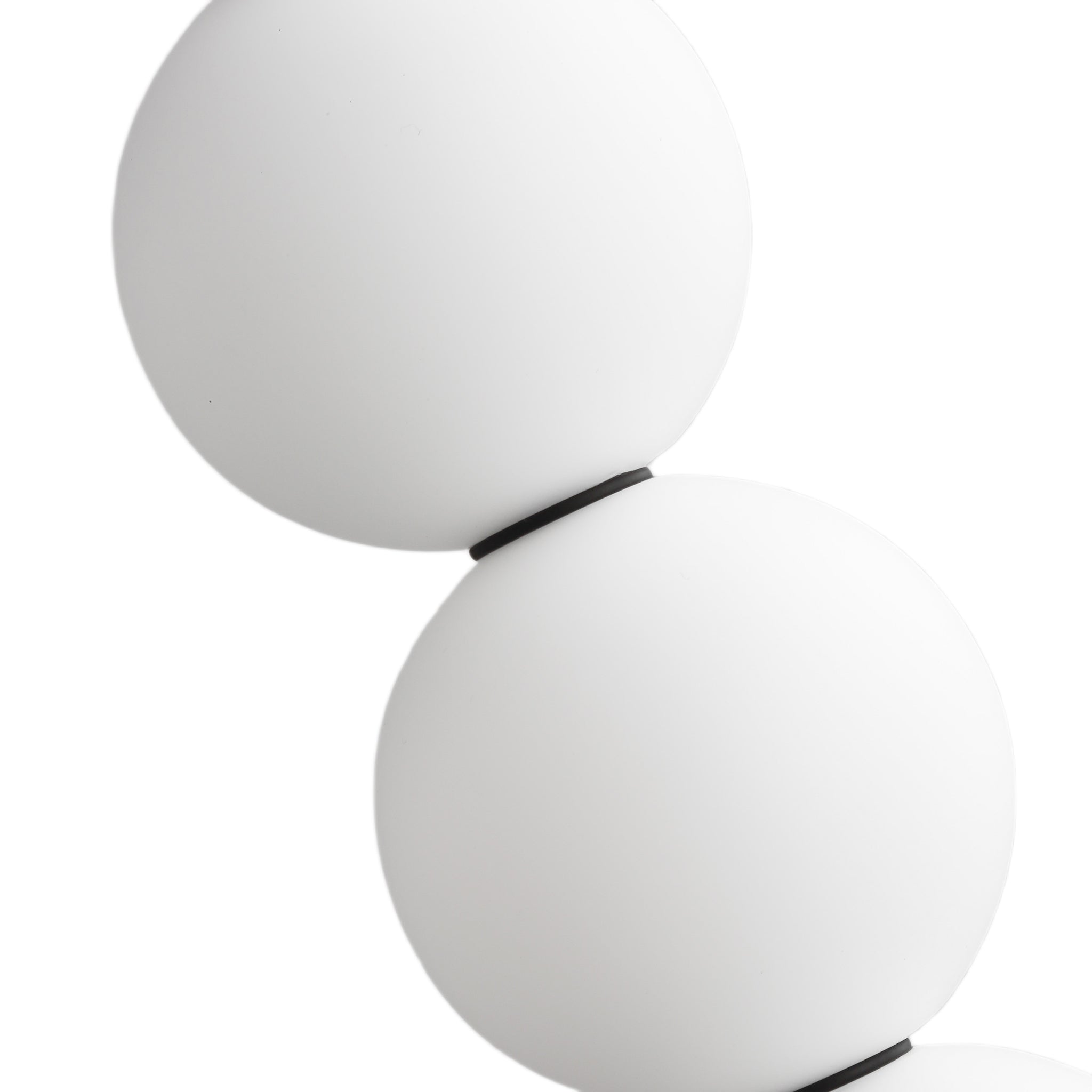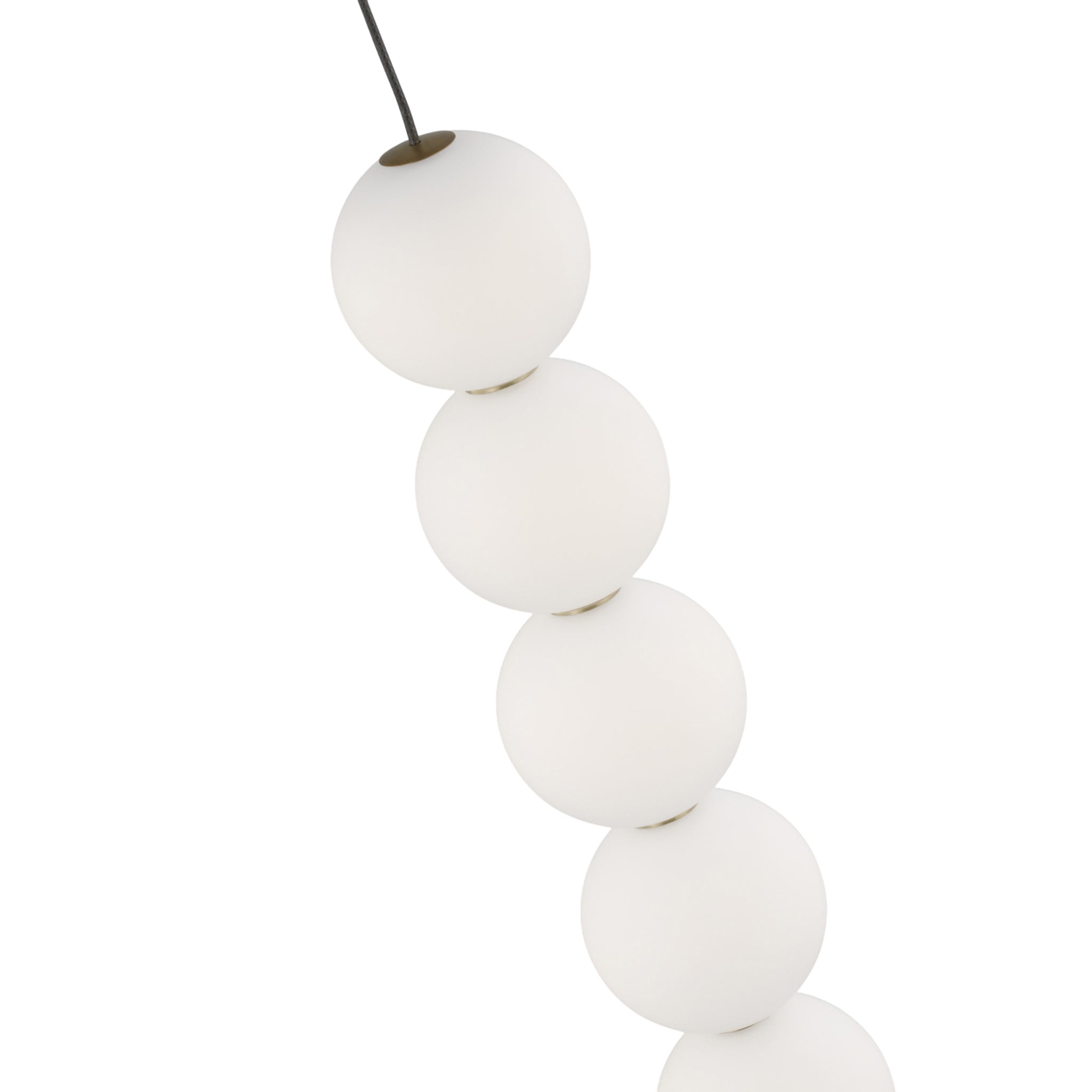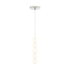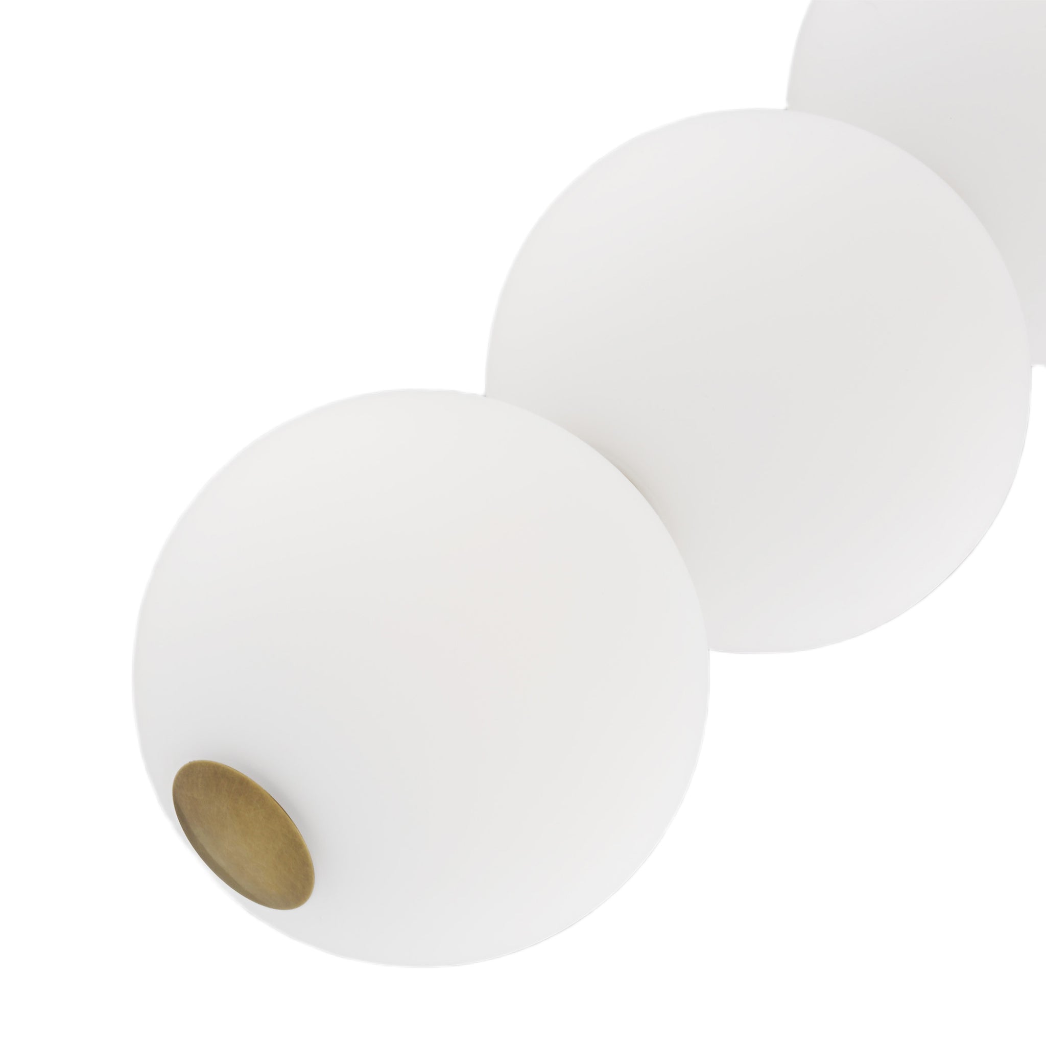 The Orbet 5-Light Line-Voltage Pendant by Sean Lavin for Visual Comfort Modern is inspired by the classic pearl with perfectly stacked milk glass orbs. LED illumination through milk-glass provides a soft diffused aesthetic and each orb is accented by a thin contrasting metal band. This fixture is the perfect design for hanging individually or clustering in multiples for a dramatic effect.