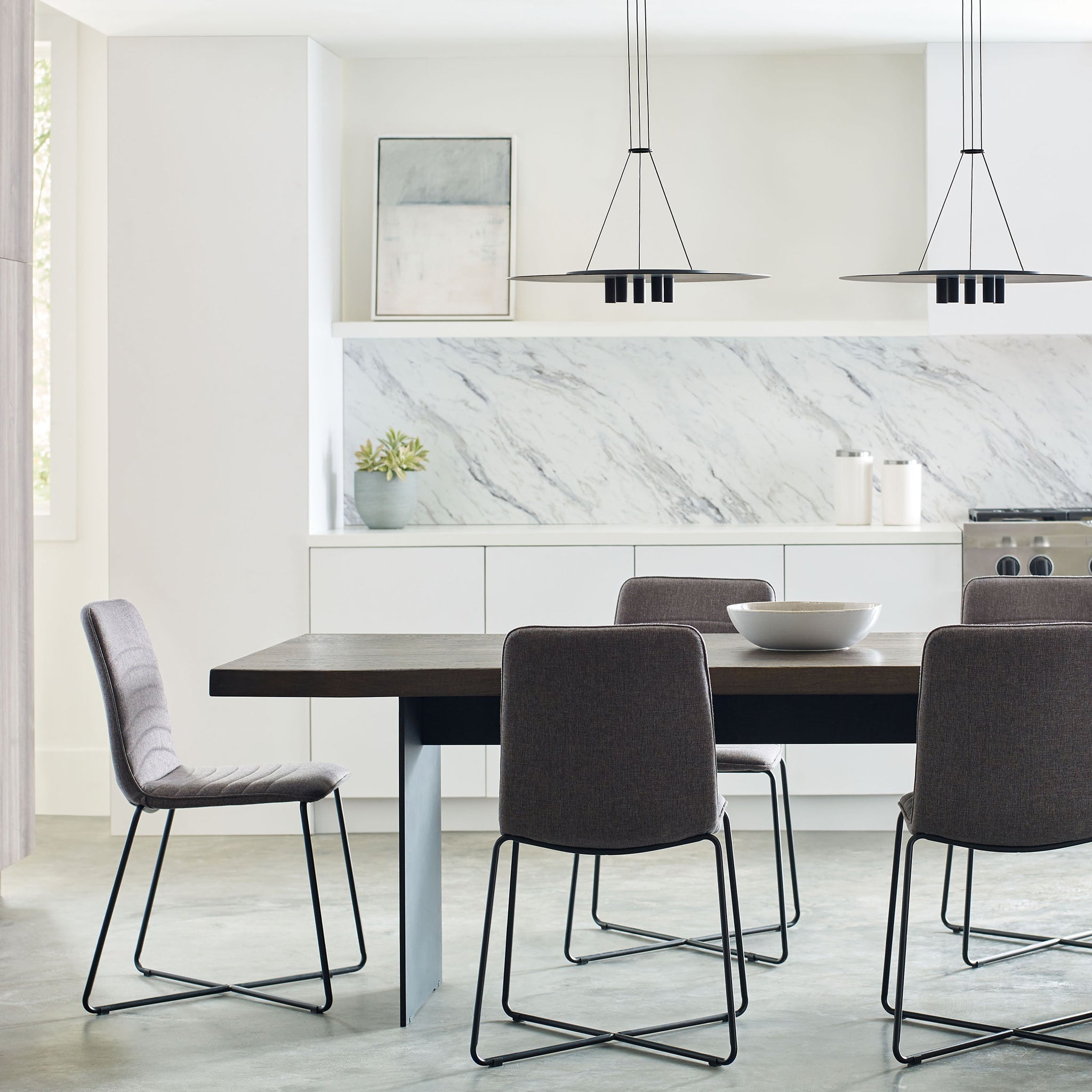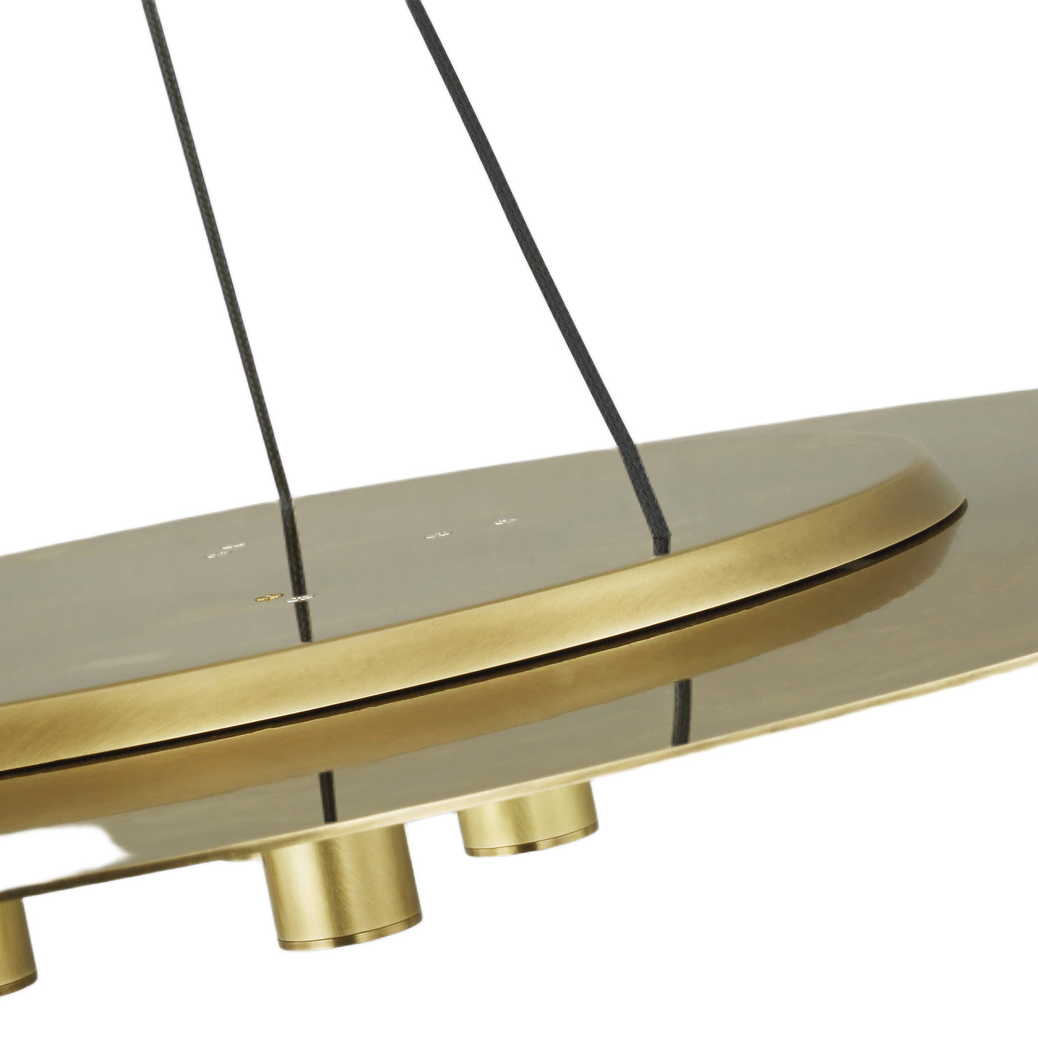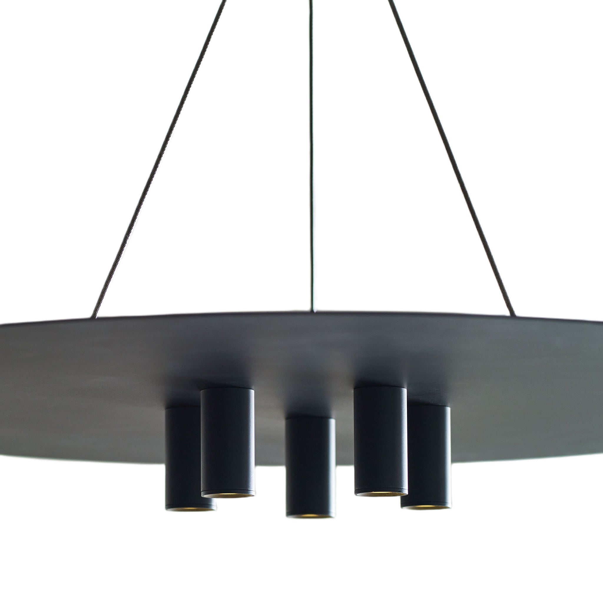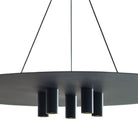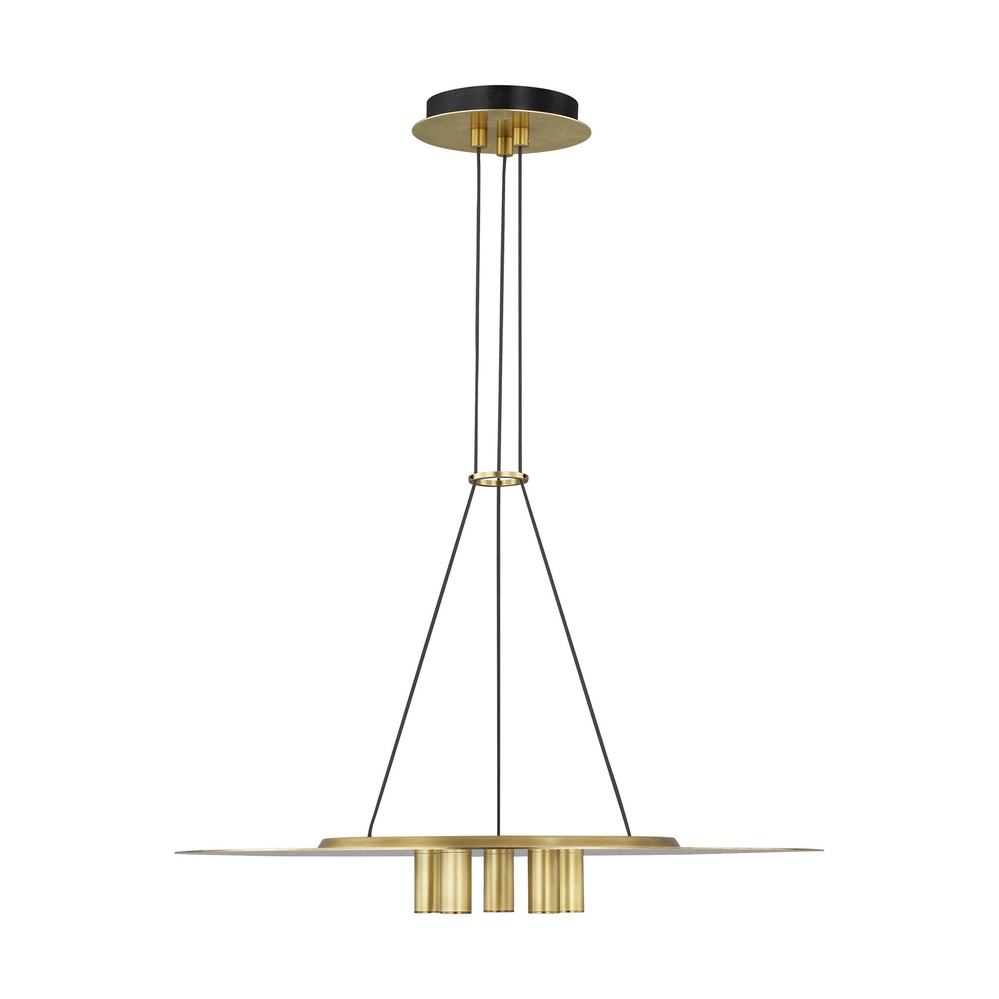 Inspired by the Ponte Skyscraper in Johannesburg, the Ponte Collection by Sean Lavin for Visual Comfort Modern celebrates modern architectural design with LED lighting. The Ponte 22 Line-Voltage Pendant is crafted with five small light modules mounted from the base of a perfect ring producing a punch of downward light. Finished with a minimal accent, three sleek cables are held in place with a modern collar.