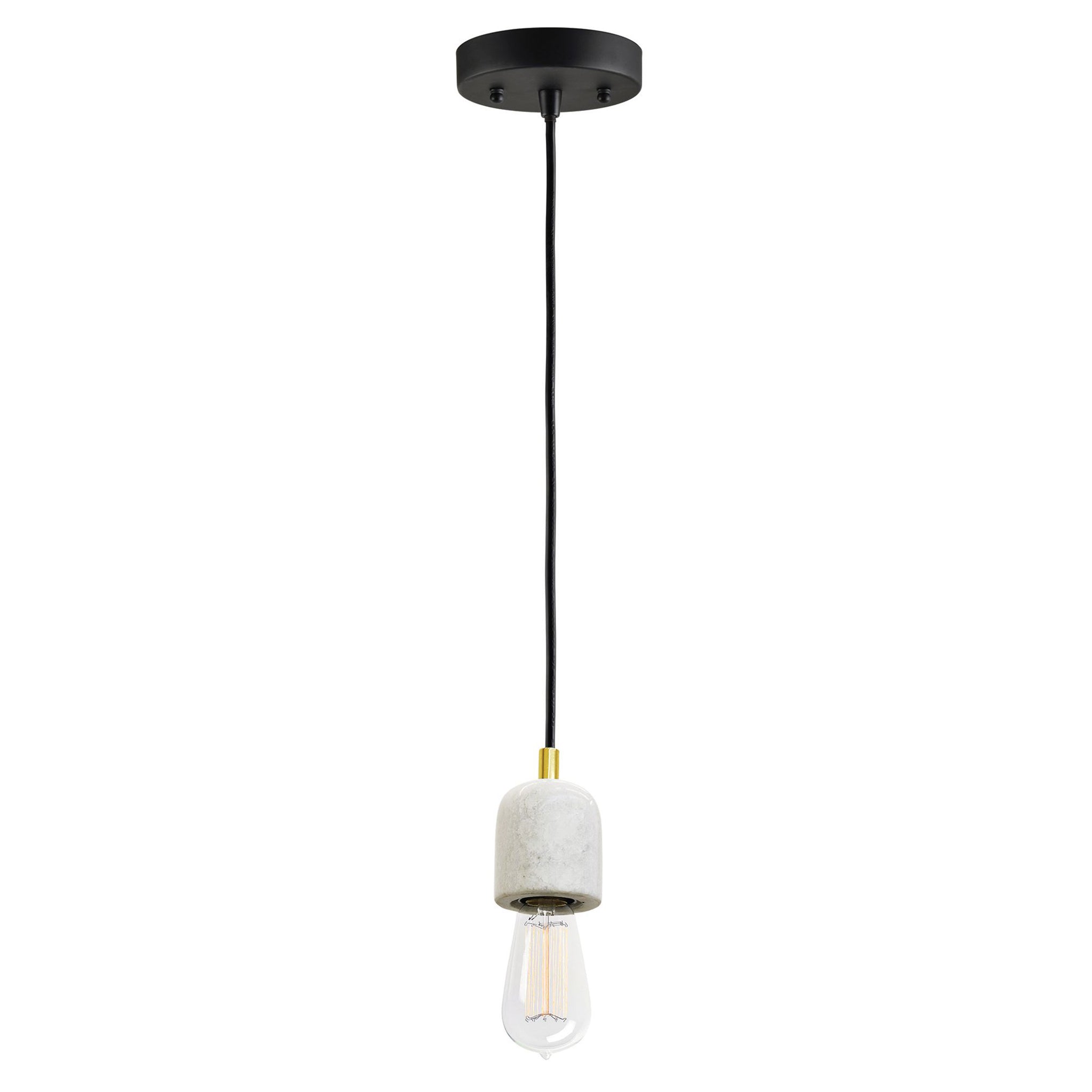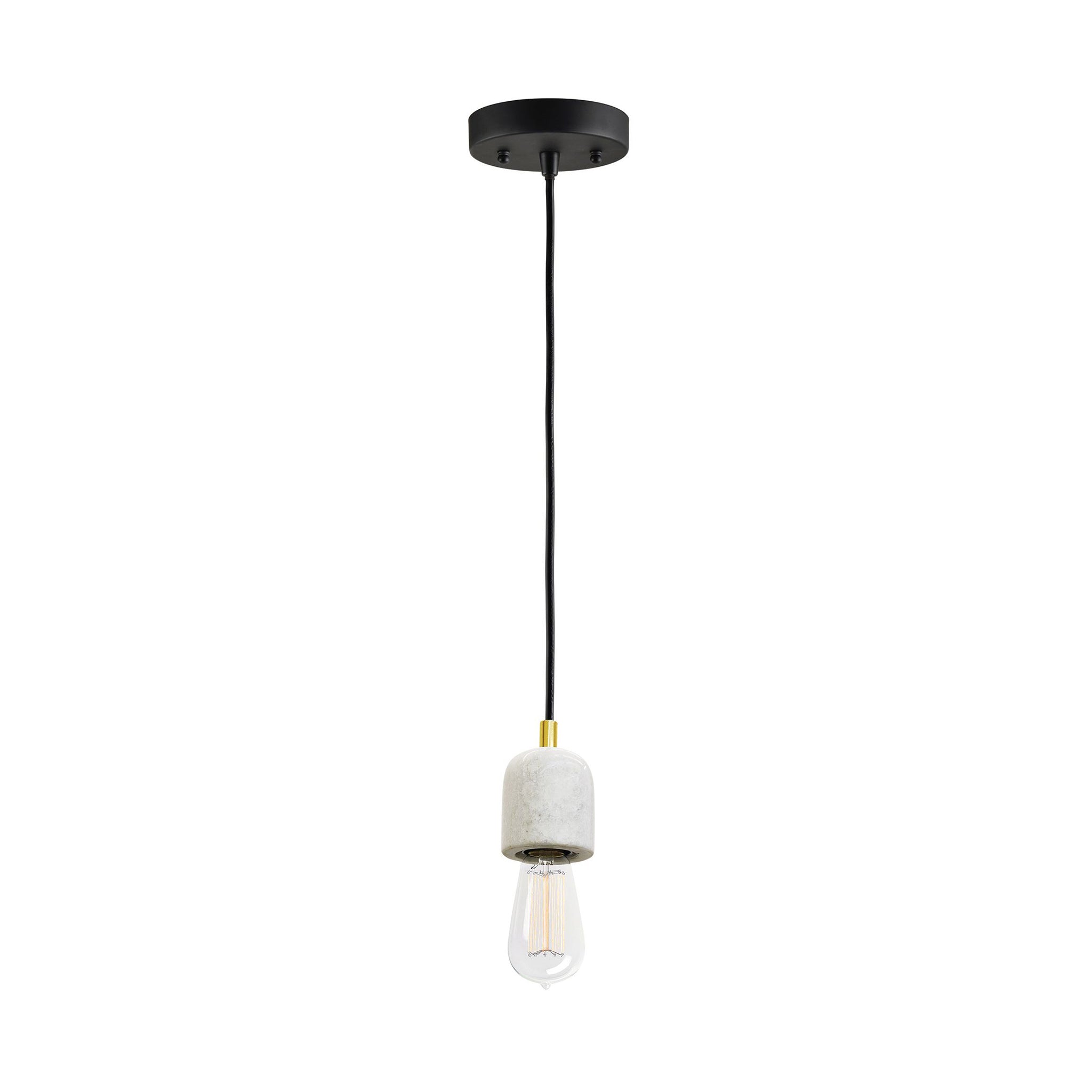 Illuminate your kitchen with the clean, contemporary design of this modern ceiling pendant light. The exposed bulb is the focal point, creating factory-inspired style in the glow of orange filament surrounded by Clear glass. The minimalist design features a smooth, bell-shaped white marble base and Iron hardware with a polished brass finish. Light bulb not included.