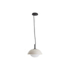 An ultra-versatile pendant that offers dynamic contrast through modern and seemingly handcrafted materials, light and dark hues and thoughtful detailing. The Glaze pendant's stained ivory crackled ceramic bowl shade is suspended from a knurled metal pin and woven black fabric cord. The pendant's opal frosted glass provides a soft, flattering glow that is reflected and diffused by the shade's glossy finish. Hang as a single fixture, in groupings of two or more.