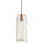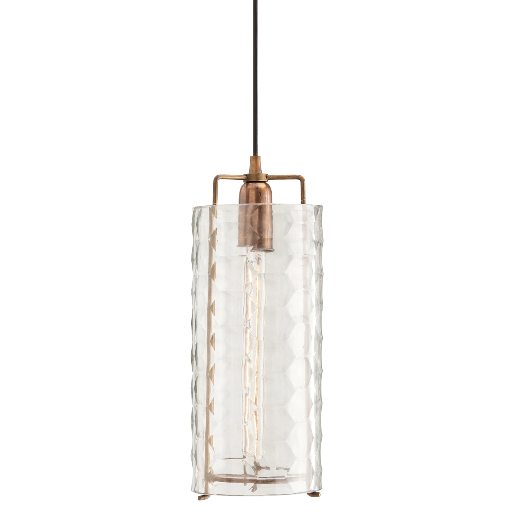 This clear glass hand faceted cylinder pendant with one light. The solid brass fitting was inspired by a vintage pendant.
