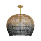 Makers utilize old world techniques to create this luxurious and modern piece. Made with hundreds of thin buri sticks, derived from a palm in the asian tropics, the pendant is formed using traditional techniques practiced to make fishing baskets. Don’t let the ancient construction techniques fool you, the bell shape, antique brass pipe kit and ombre finish add contemporary flair.
