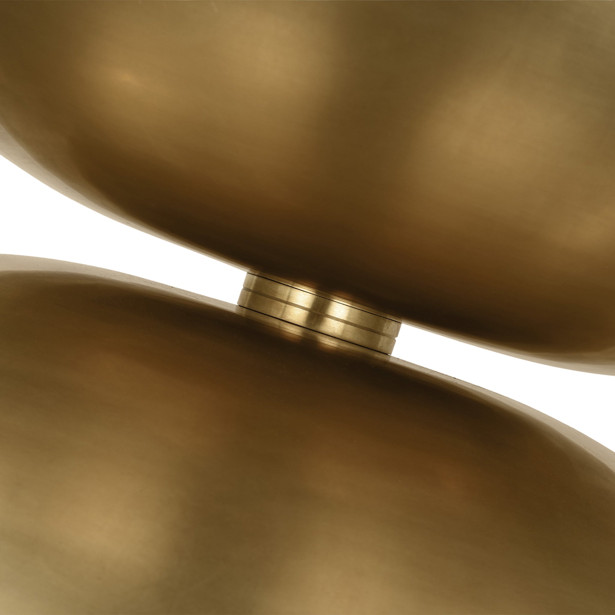 "The Shanti by Sean Lavin is a statement-making piece you’ll want to set the tone in your foyer, living room, or dining room. The design presents a fresh visual you can indulge in from any angle you look at it. Hanging from the end of a simple stem is a set large spun metal-shaped shades. Light sends the piece to another level as the multi-directional bulbs glaze the structure while creating a warm, radiant glow. Integrated LED modules bring the metal to life as they emit a bright and even layer of light through the top and bottom of the piece.