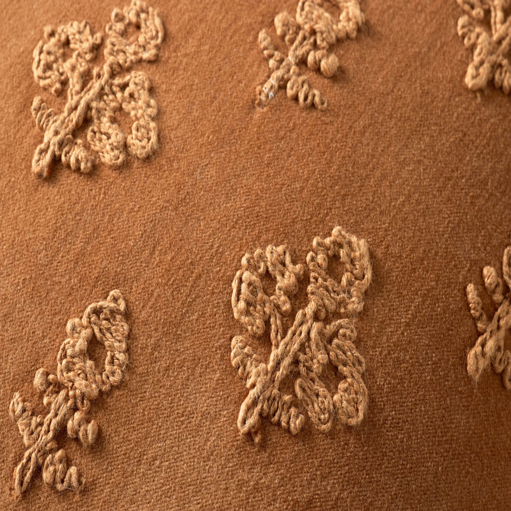 Darla is a clay red throw pillow from Chris Loves Julia x Loloi with embroidered motifs and fringed edges for elegant home decor. The pillow cover is made of 100% cotton and measures 18" x 18", the perfect size to style in living rooms and bedrooms.