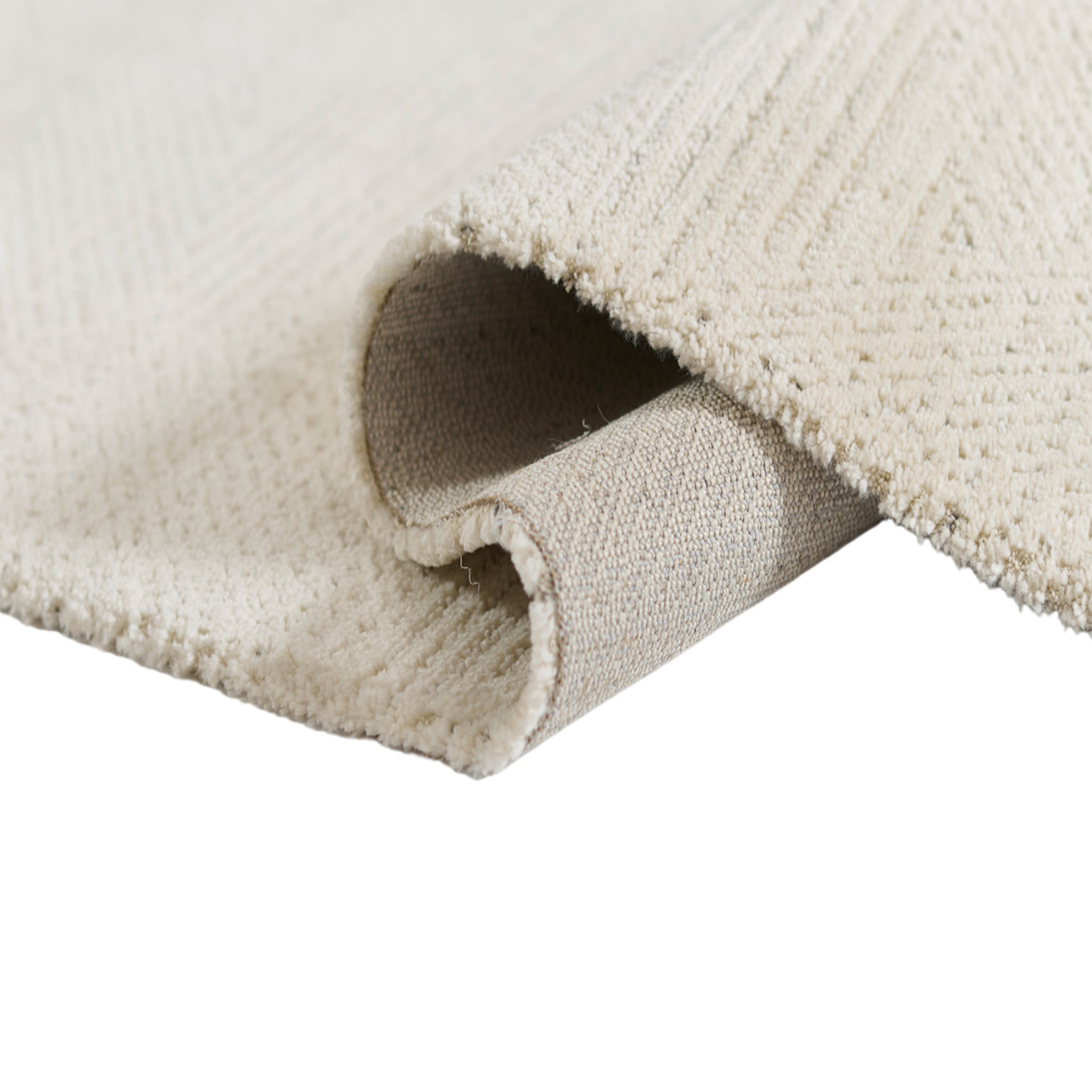 The Waverly Rug collection features high-quality machine rugs that showcase a unique high-low pile in durable polypropylene with accents of polyester. The warm ivory and neutral color palette is designed to echo the sophisticated Moroccan handmade rugs that are inspired by the minimalist Beni Ourain design category. Imperfect lines, subtle yet bold check patterns, and unique effects that mimic a carving technique, offer understated design options for your home.