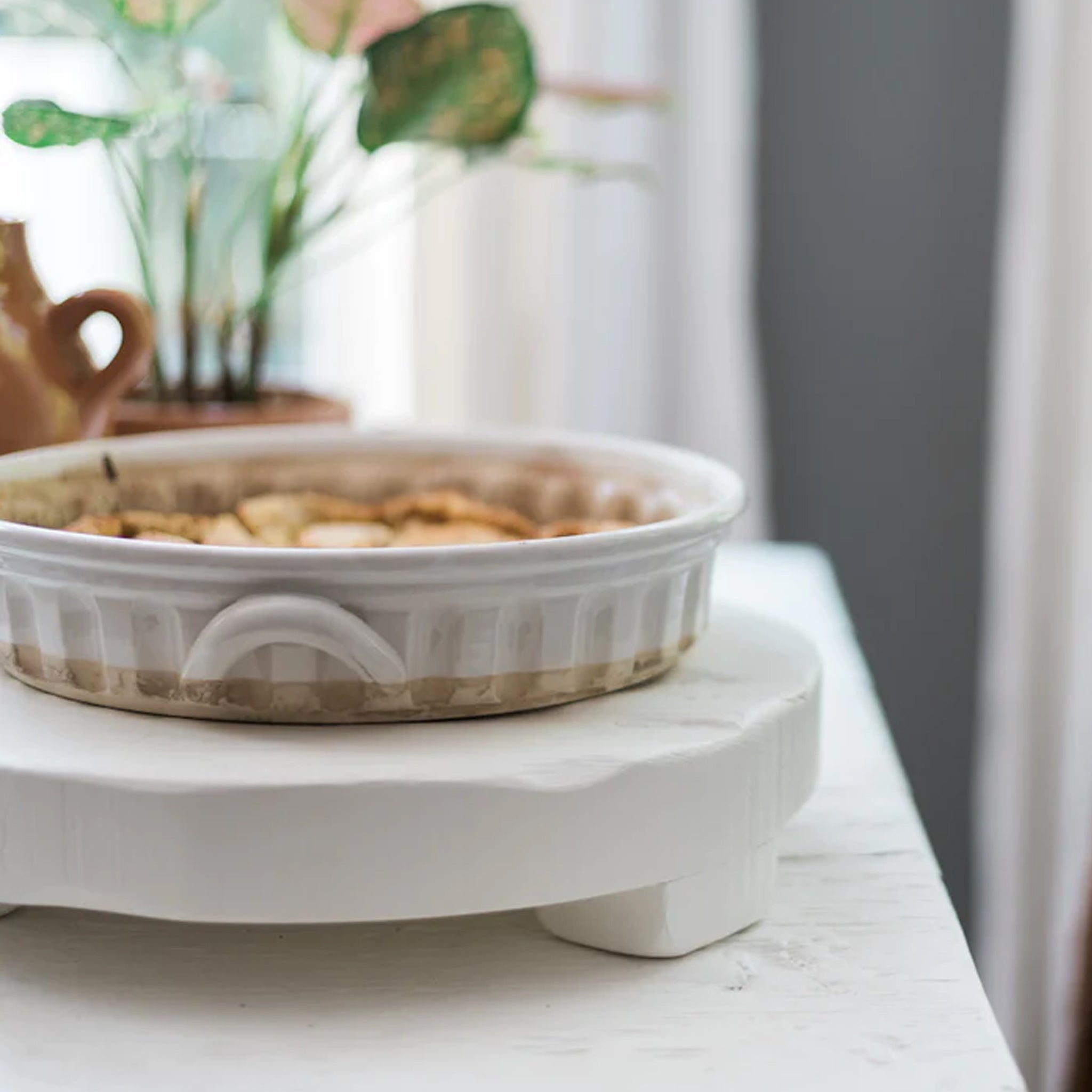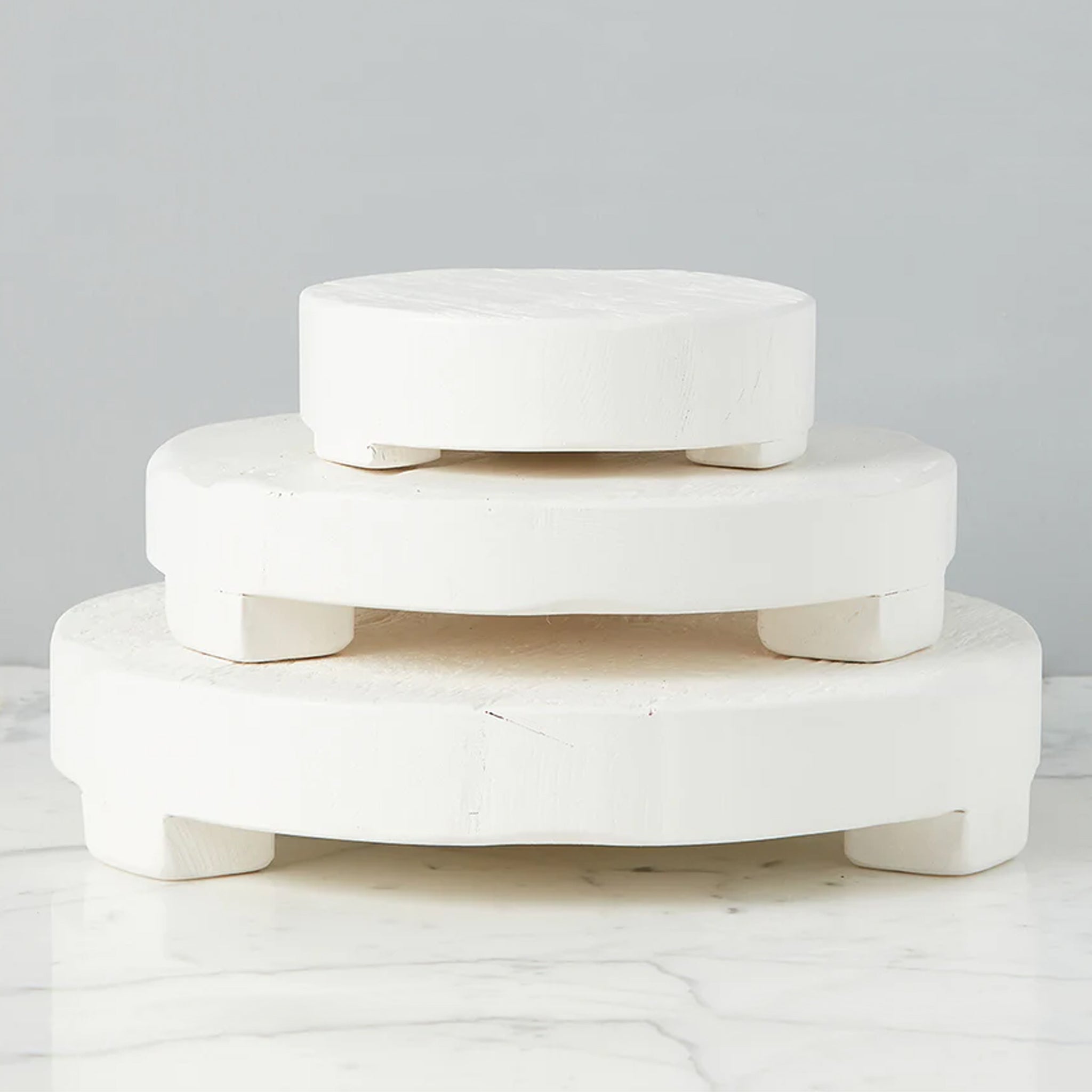 If you're looking for the perfect decorative accent for your table, countertop or side hutch, this handcrafted Marsala Round Riser is sure to make an impression. Made from reclaimed wood, this white wooden board features the natural striations, splits and beauty of the found wood, making each piece unique. The rustic beauty of this trivet can only be amplified by pairing and stacking them with varying sizes, or using them as a stand for an elegant glass cloche. They're also completely functional, and our trivets can be used as hot or cold plates and can withstand dishes straight from the oven or fridge. Integrate its classic design with your kitchen decor for an instant impact.