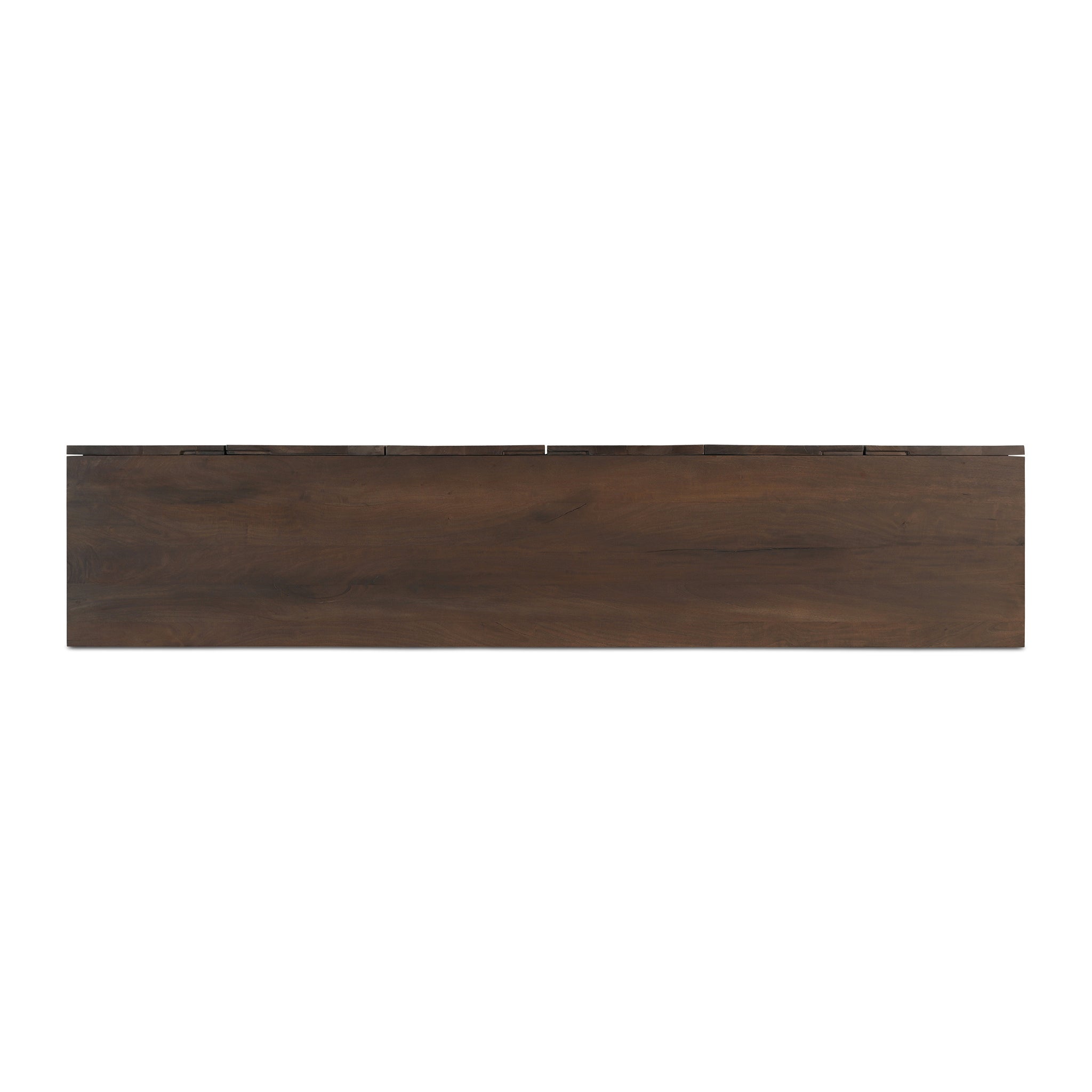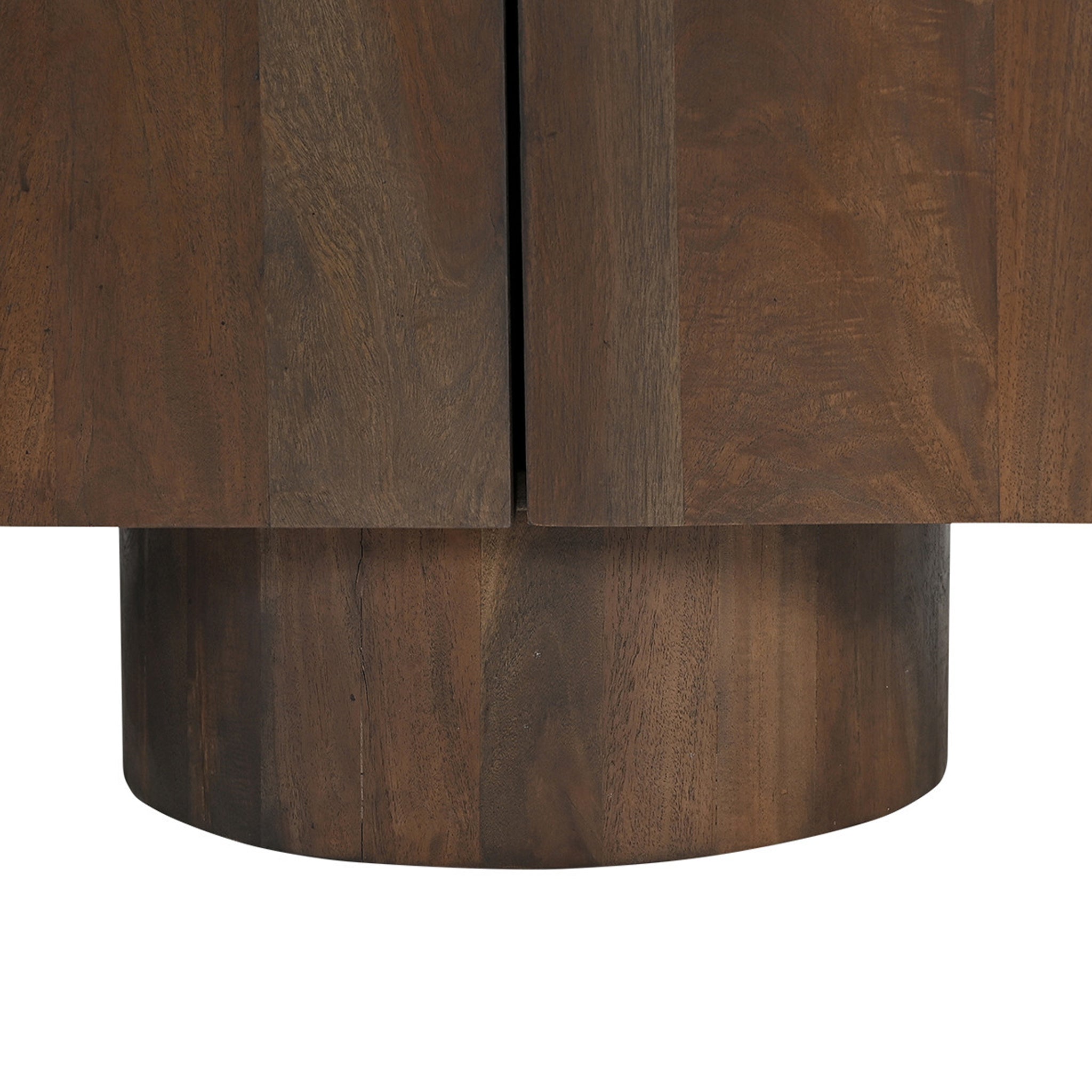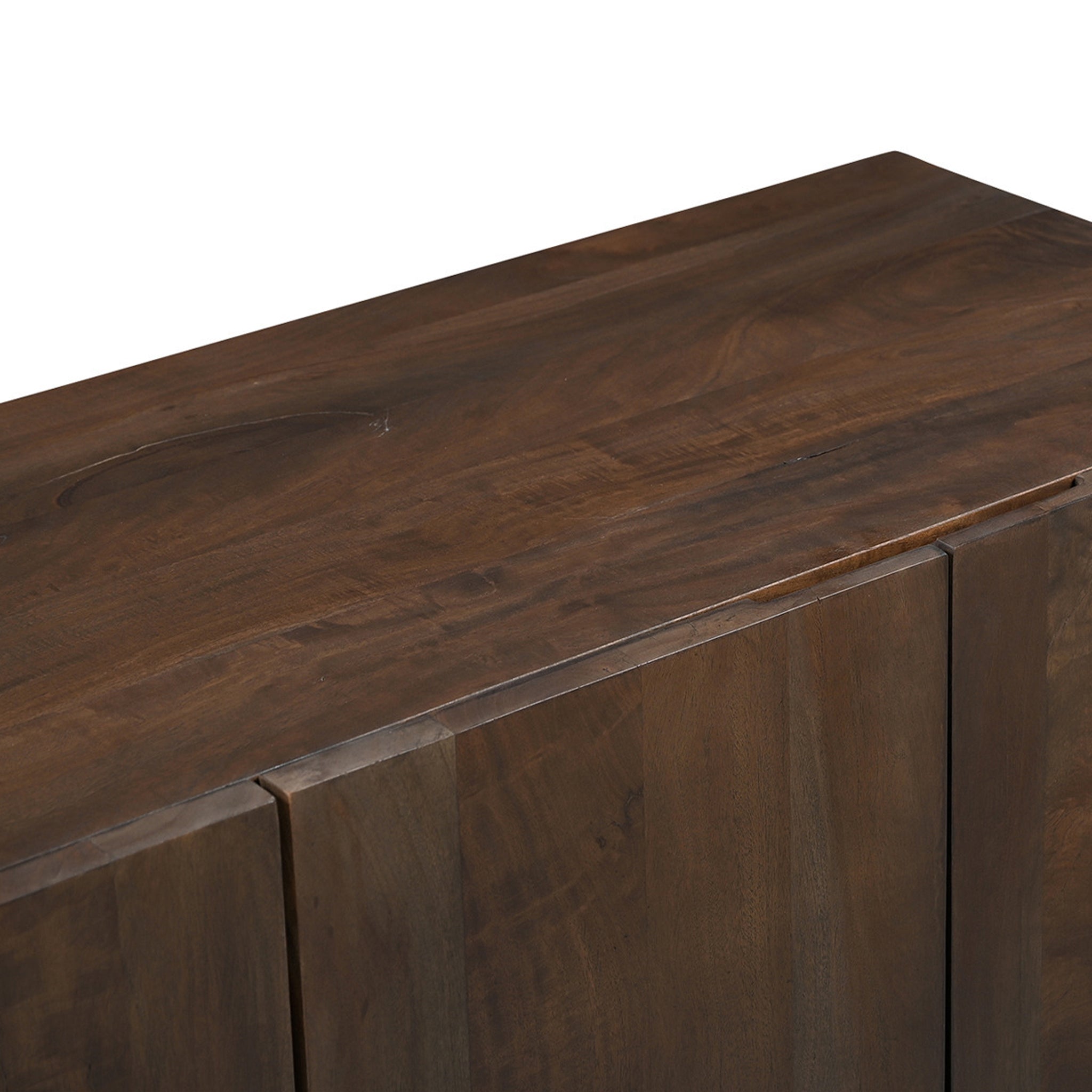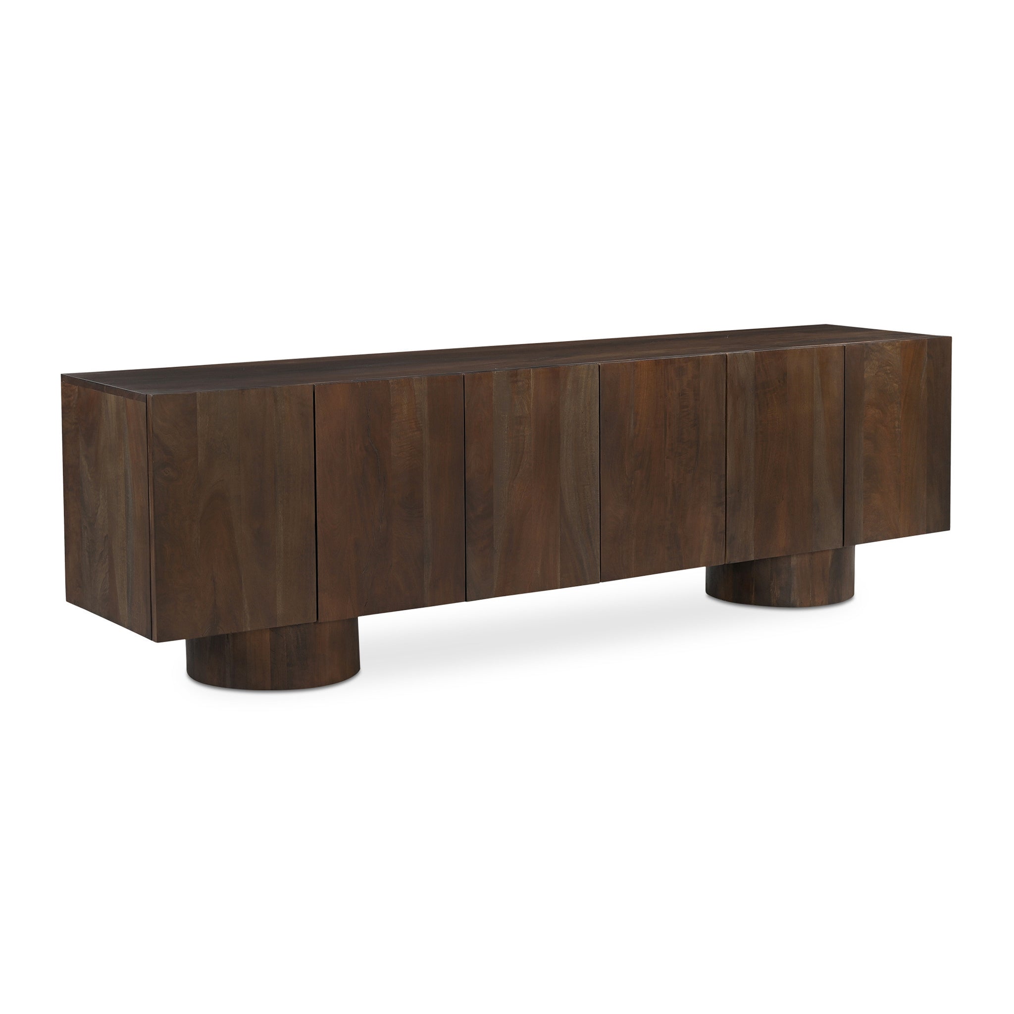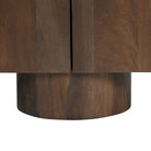 Crafted from reclaimed neem wood, the Gianni media unit celebrates simplicity and natural beauty. Its minimalist silhouette features a substantial 2-inch tabletop and cylindrical bases, artfully balancing form and function. Six sleek doors conceal ample storage, while thoughtful cable management ensures seamless integration.