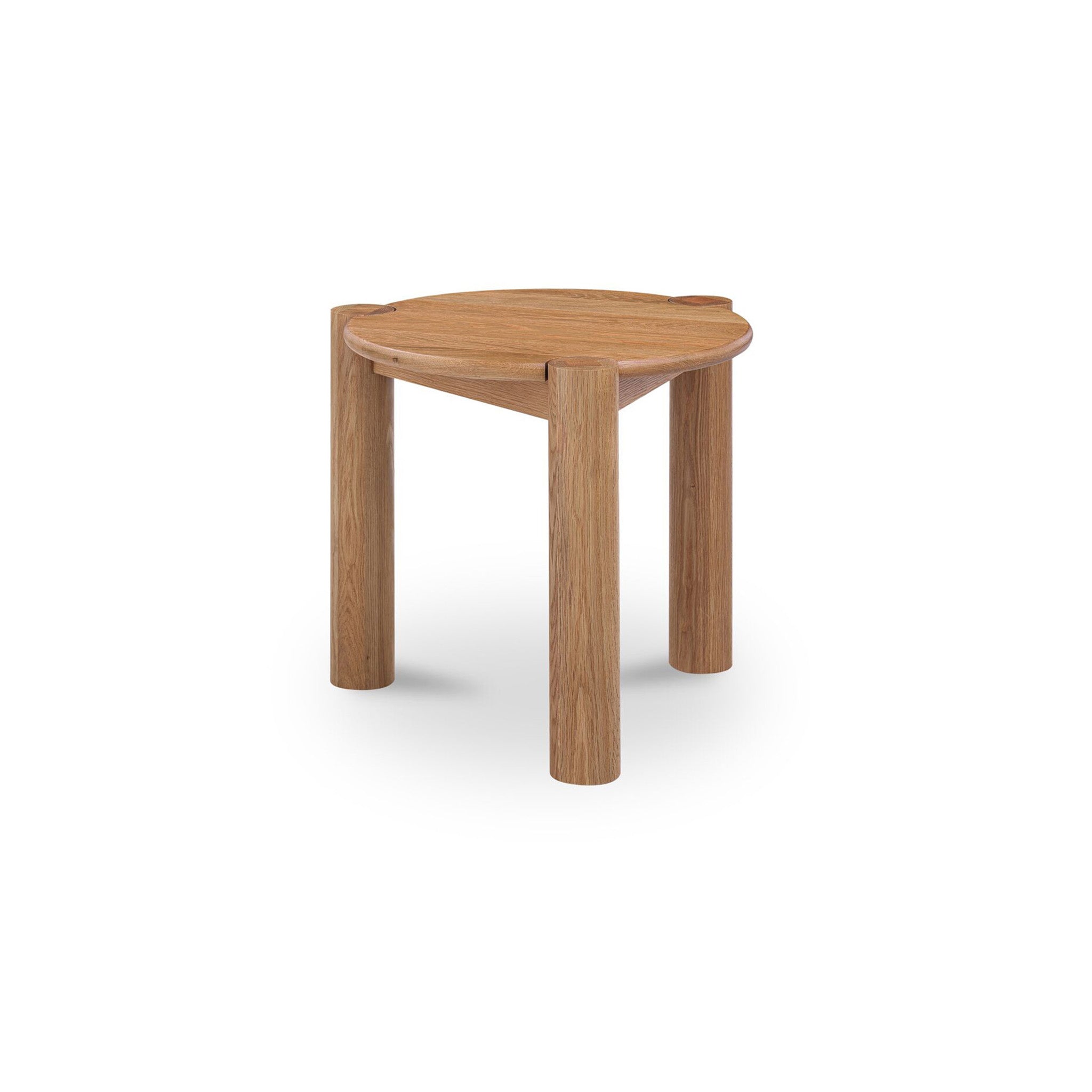 Built to round things out. A solid oak top with a smooth bullnose edge meets four sculptural column legs in a bold joinery detail that's all craft and confidence. The legs add weight and definition to the rounded form, striking a balance between soft curves and strong structure. It's grounded, sculptural, and made to hold a drink (or two).
