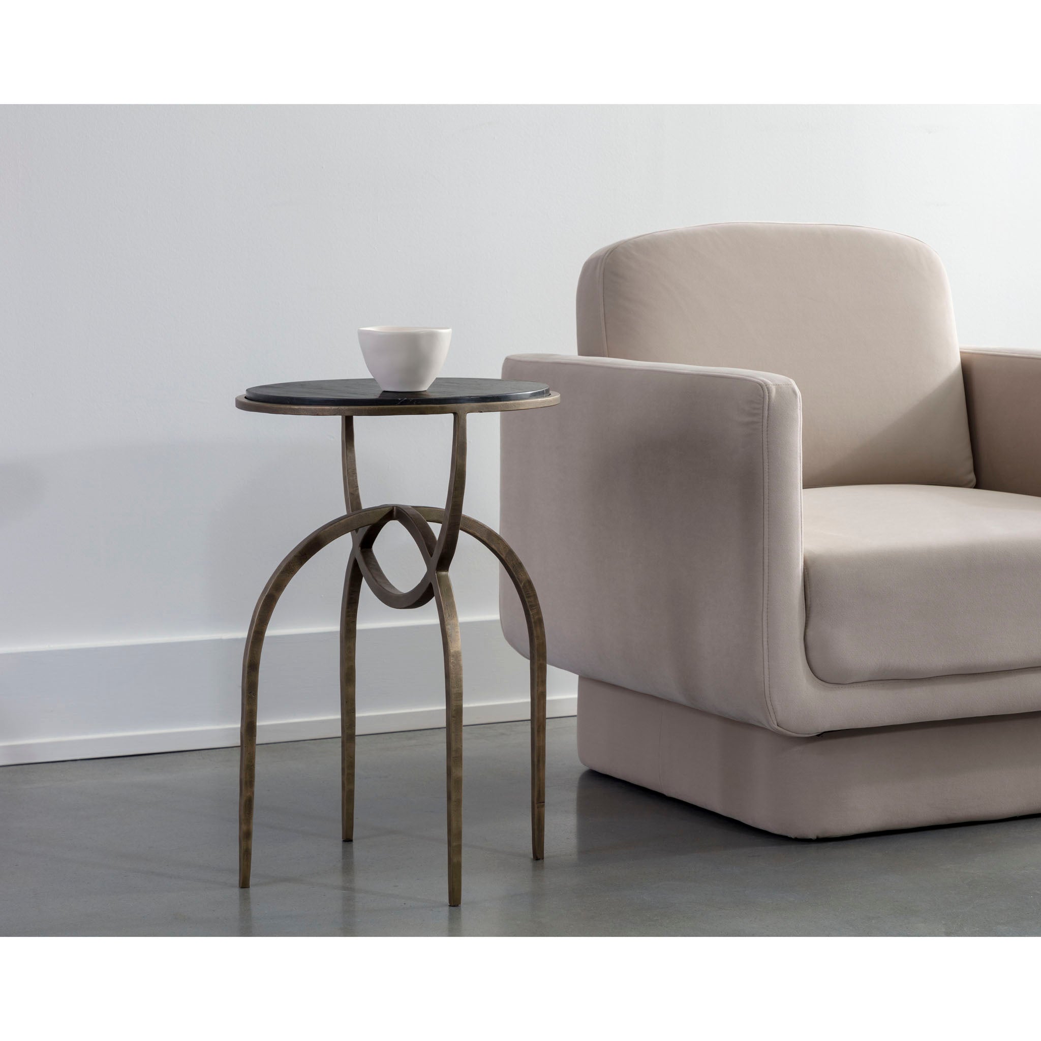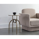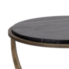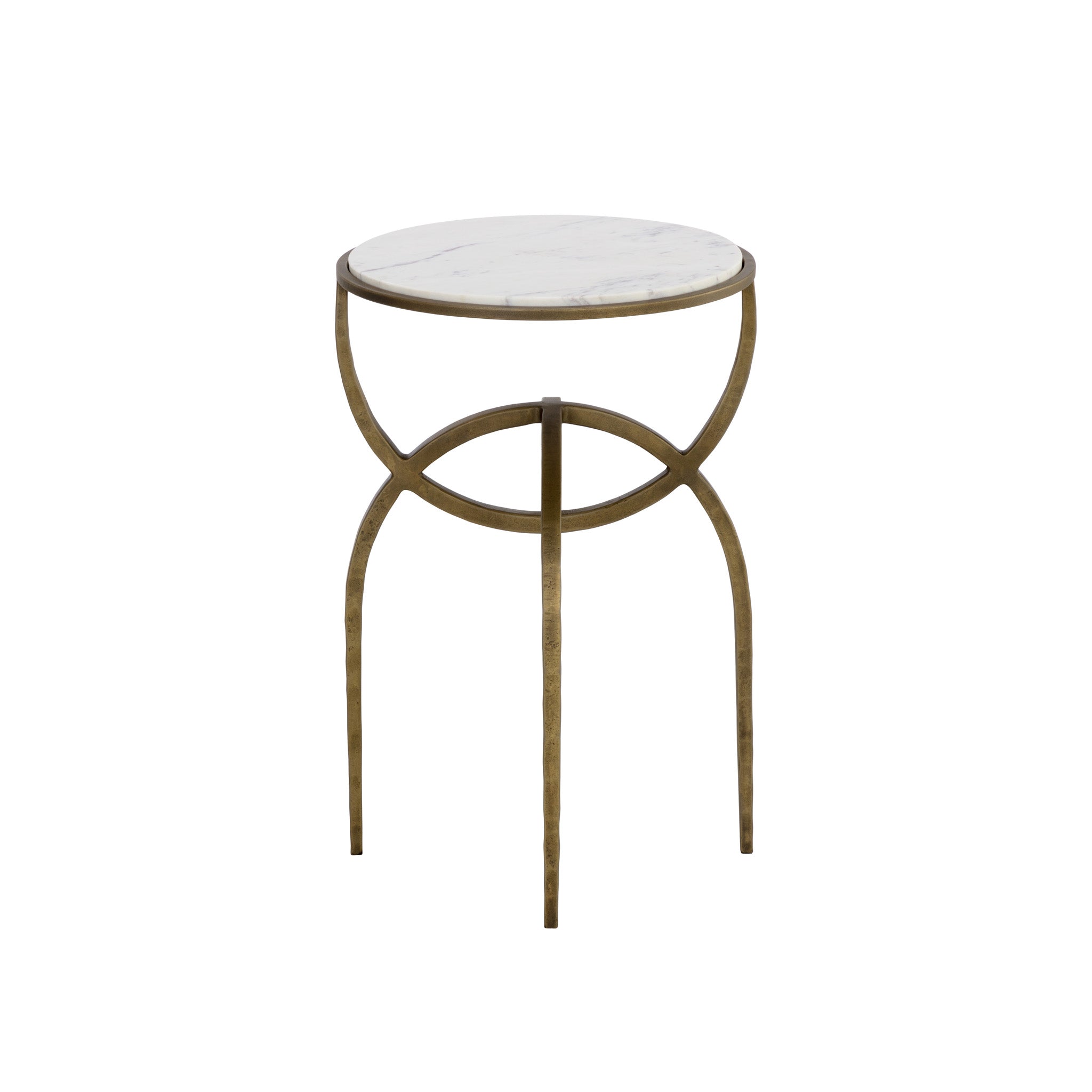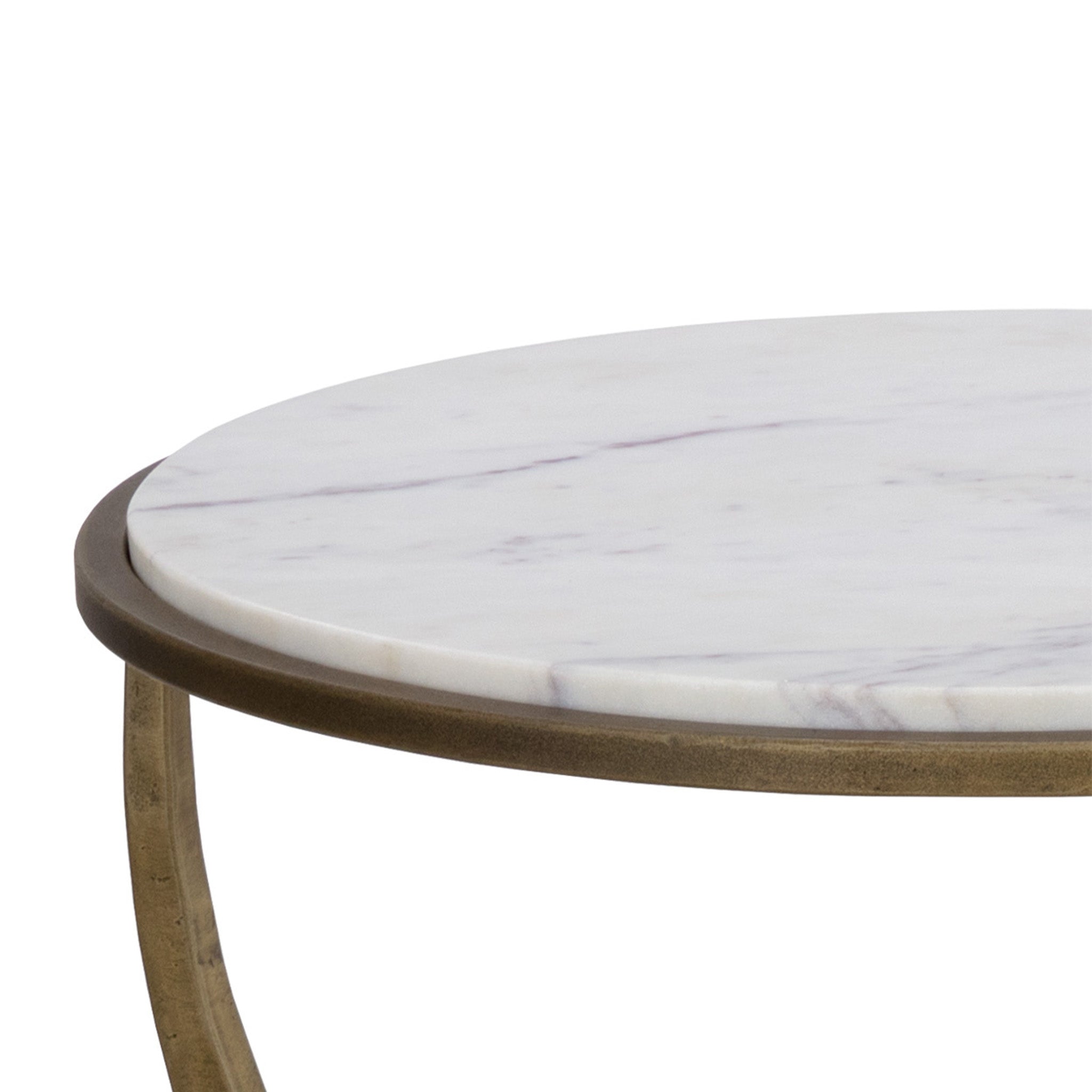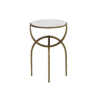 Eye-catching from all angles, the Marco End Table is sure to draw attention. Features a round marble table top with an antique brass iron base. Expertly crafted with an artful design. As marble is a natural material, unique veining, pitting, fissures, micro-cracks and colour variations are all characteristics that add to the uniqueness and beauty of each piece. Made in India. With refined craftsmanship, this design was brought to life by skilled local artisans. Due to the nature of handcraftsmanship, unique imperfections such as fissures, markings and variations in colour and shape are welcomed and appreciated characteristics for a truly one-of-a-kind piece.