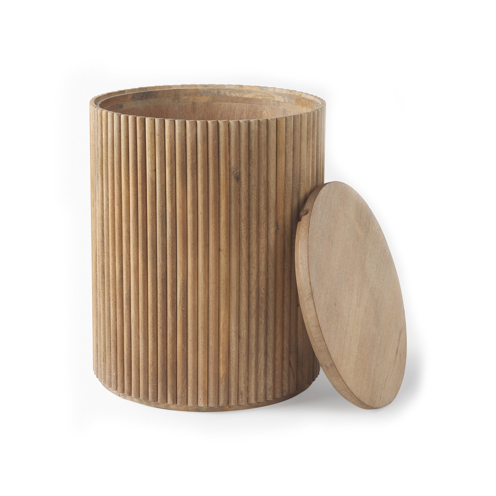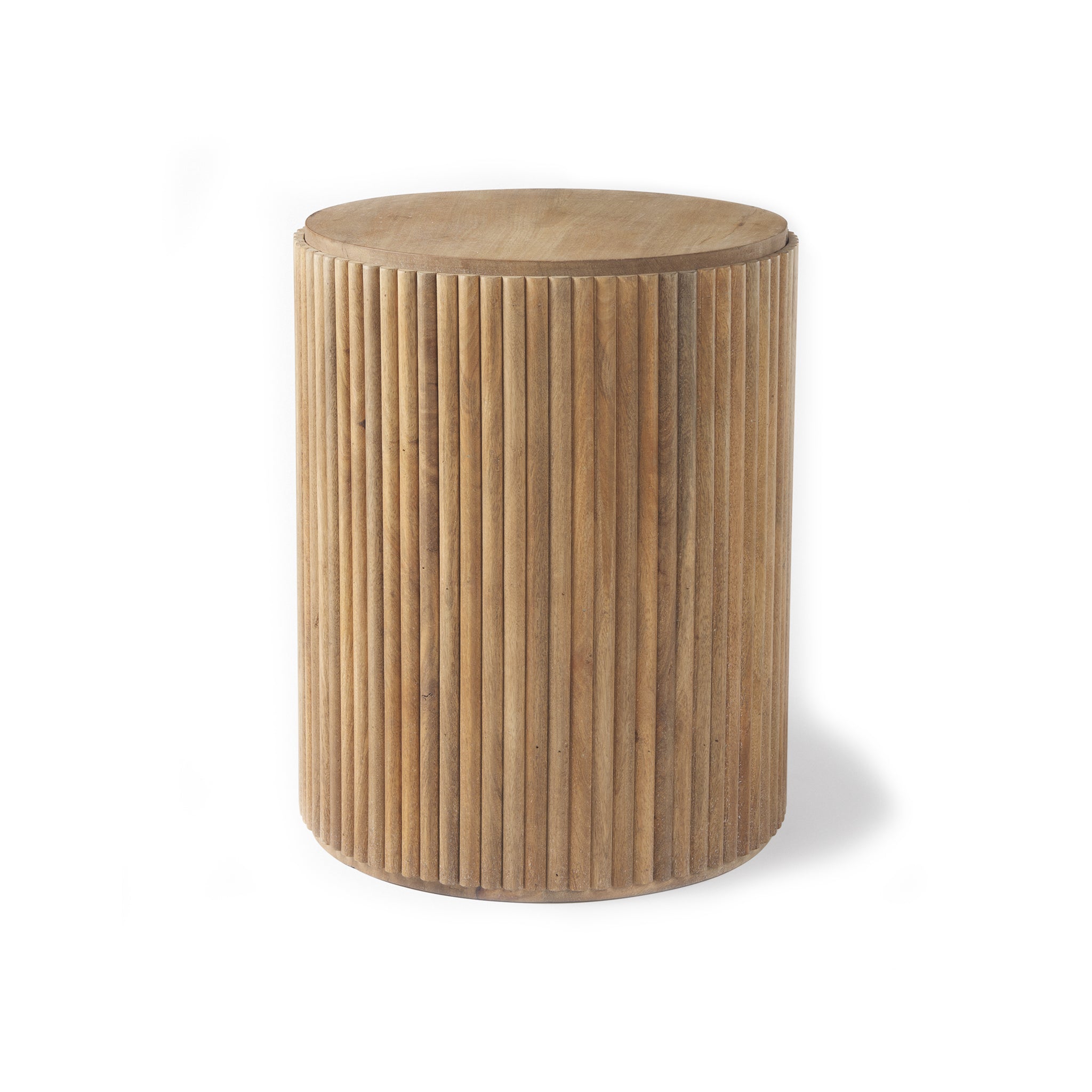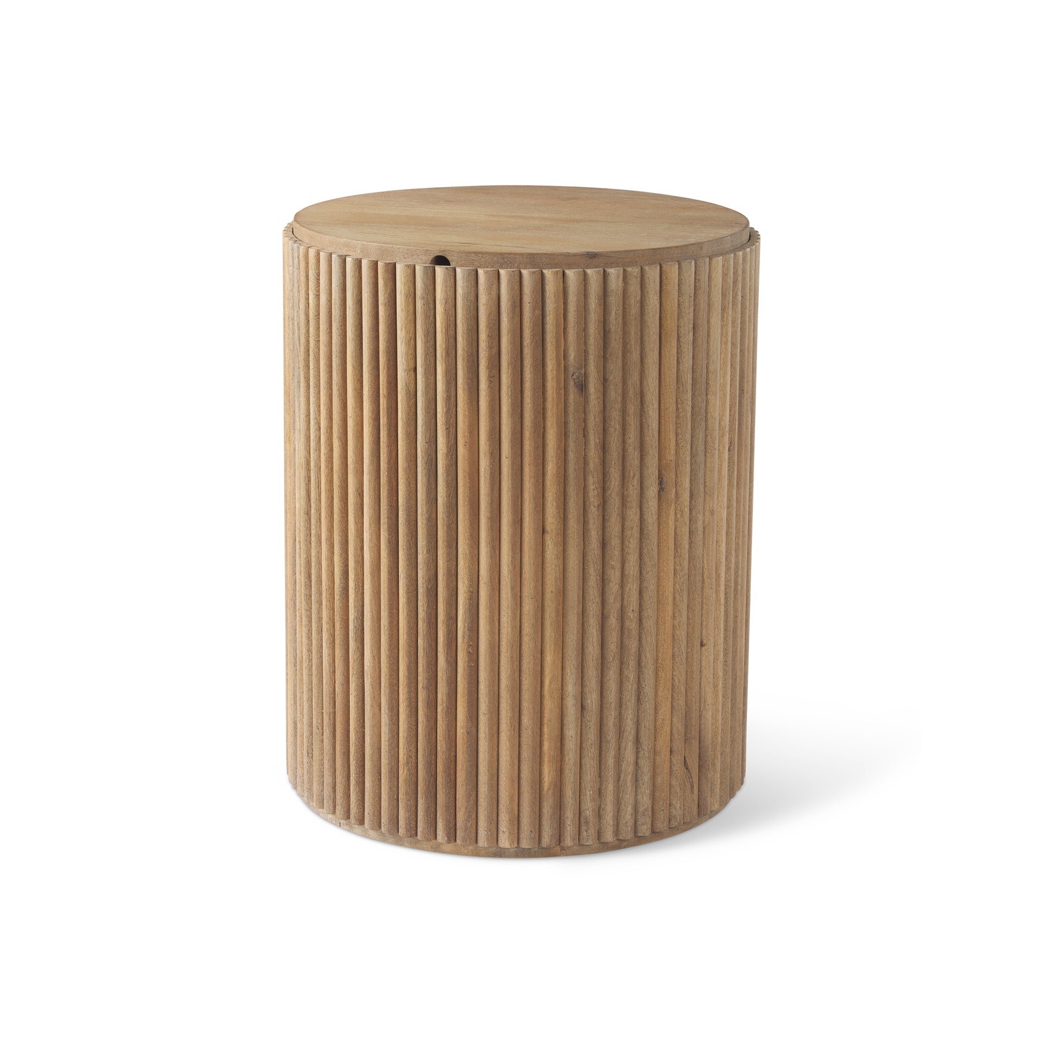 If you're looking for a unique, eye-catching side or end table that will beautifully complement your neutral décor, our Talea Light Brown Wood Fluted Side Table is the perfect choice. Designed from sleek and solid mango wood, which showcases its natural wood grain across the round surface, this stunning table also provides convenient storage by opening the top. Pair our Talea tables together to make beautiful side accents for your sofa or armchairs, or feature one on its own as an impressive end piece. Either way, these fluted tables will give people something to talk about.