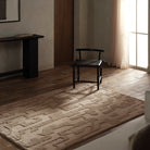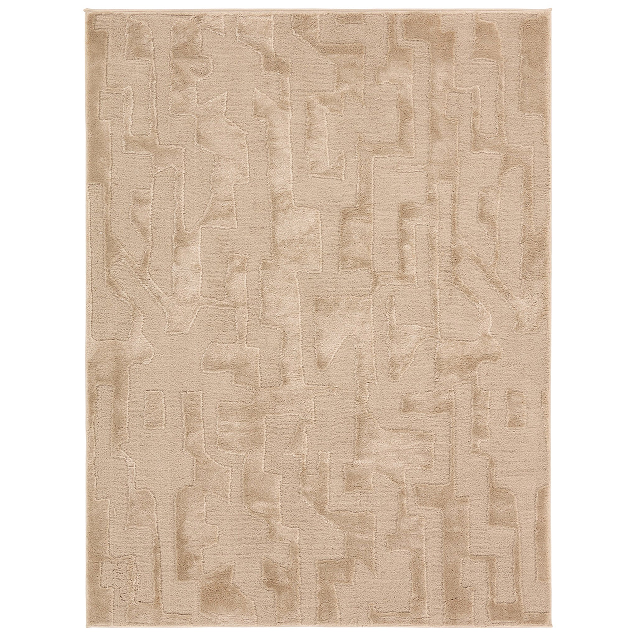Modern geometrics and a lustrous sheen define the Calix Collection by Nikki Chu. The soft, plush pile features high and low areas for added texture that delights underfoot. The Demir design showcases a tan/taupe Brutal geometric pattern, exuding modern elegance. Crafted from a durable blend with natural stain resistance, it effortlessly combines style and practicality.