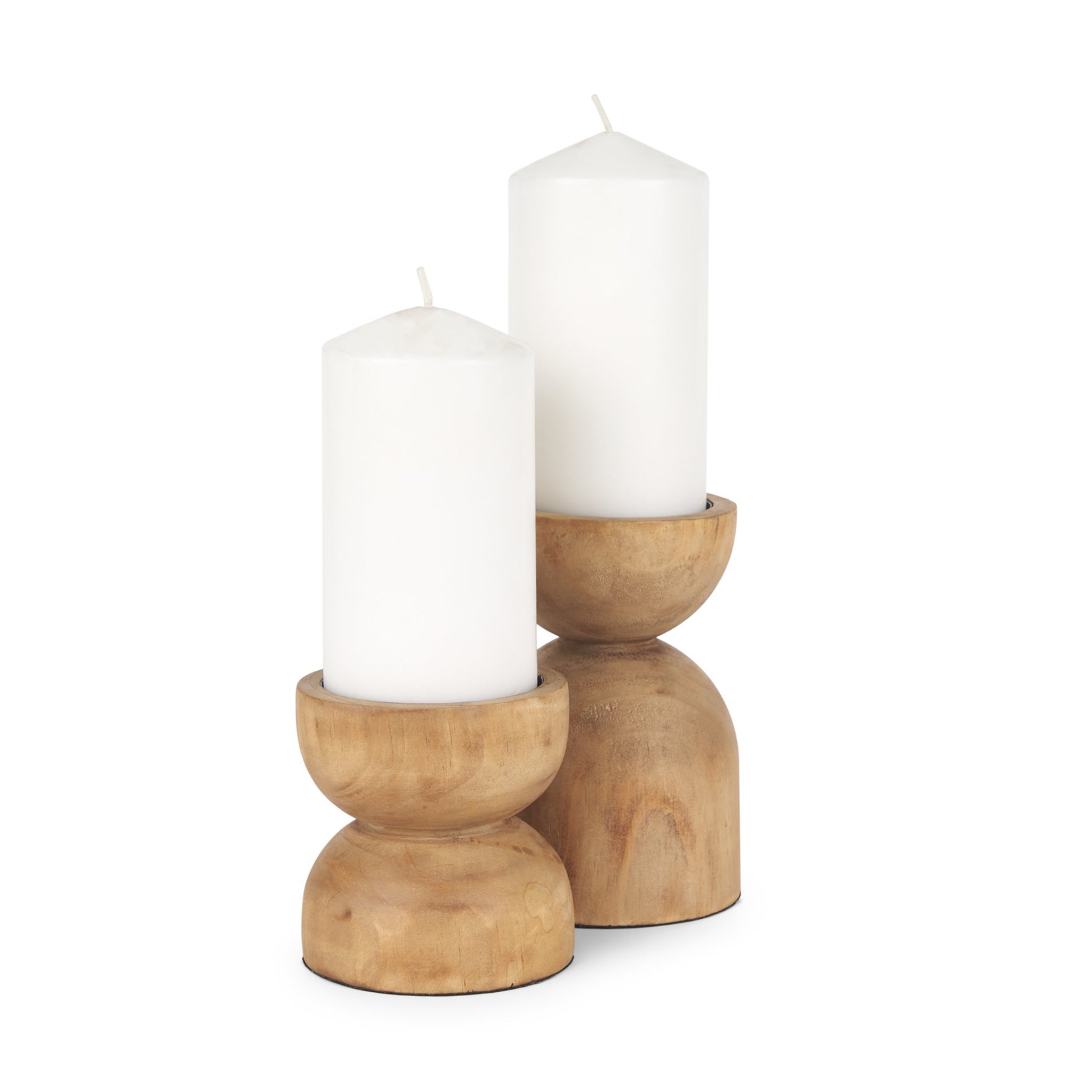 For a little rustic charm that fits into any room, our set of 2 Alma Wooden Candle Holders are the perfect accents. This candle holder set blends natural elegance and functional beauty, and crafted from solid light brown mango wood, their warm, earthy tones match any decor. Adorn your dining table, mantel, entryway or living space with your favorite candles and instantly add a feeling of warmth and coziness to your decor.