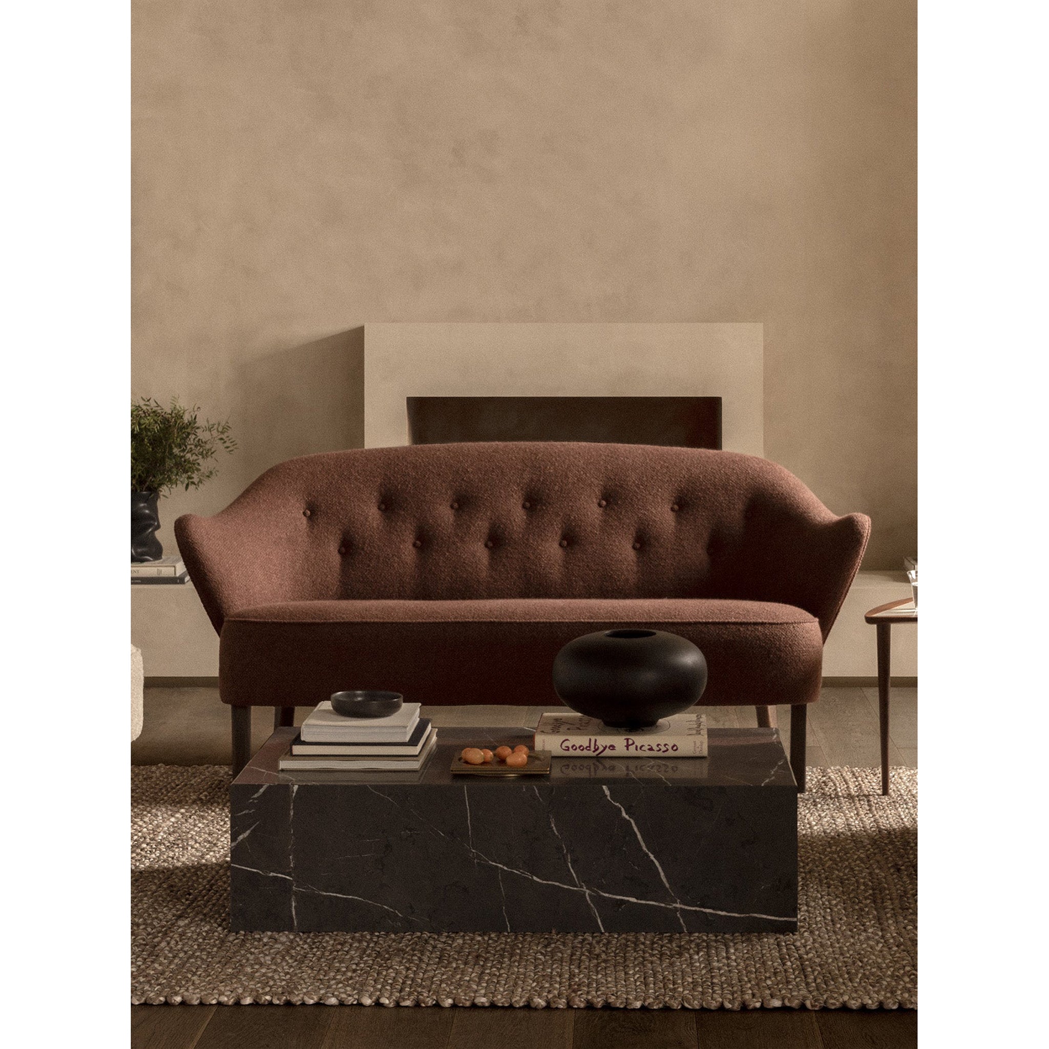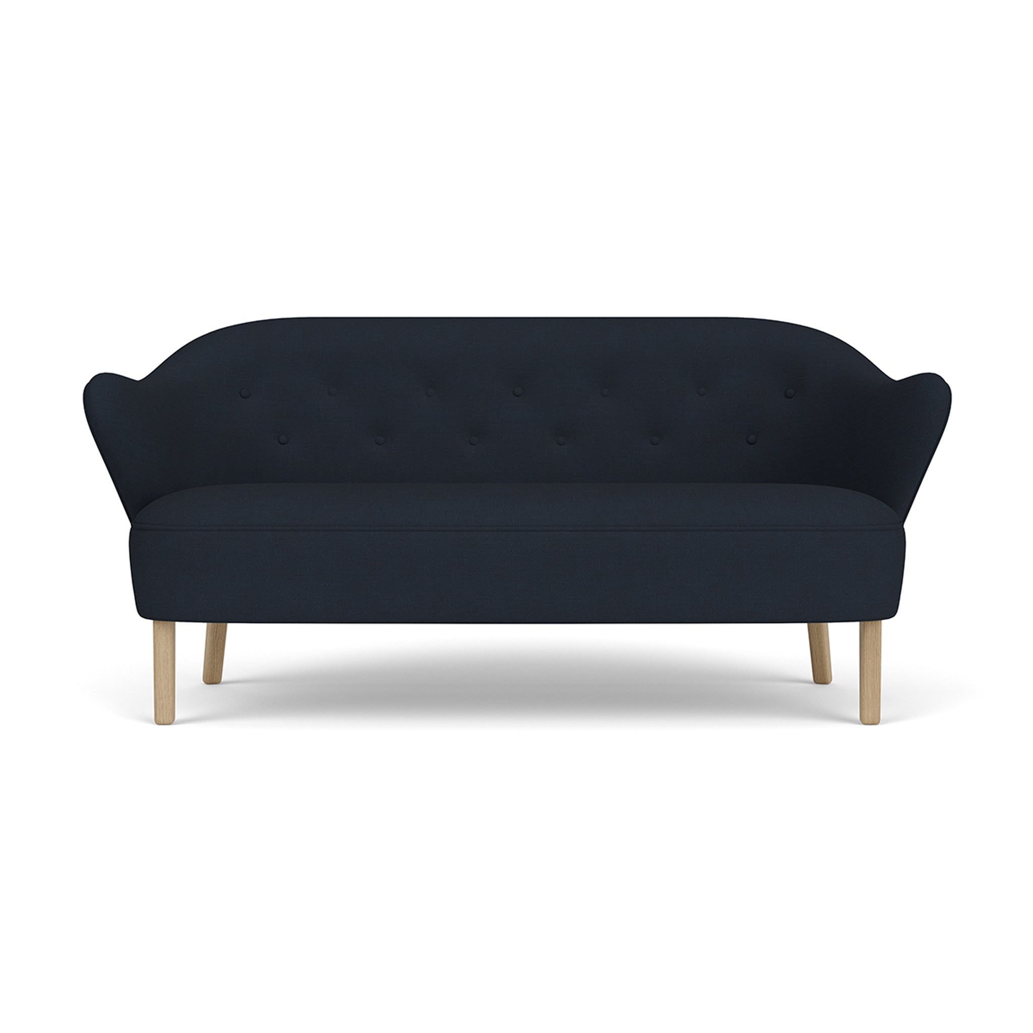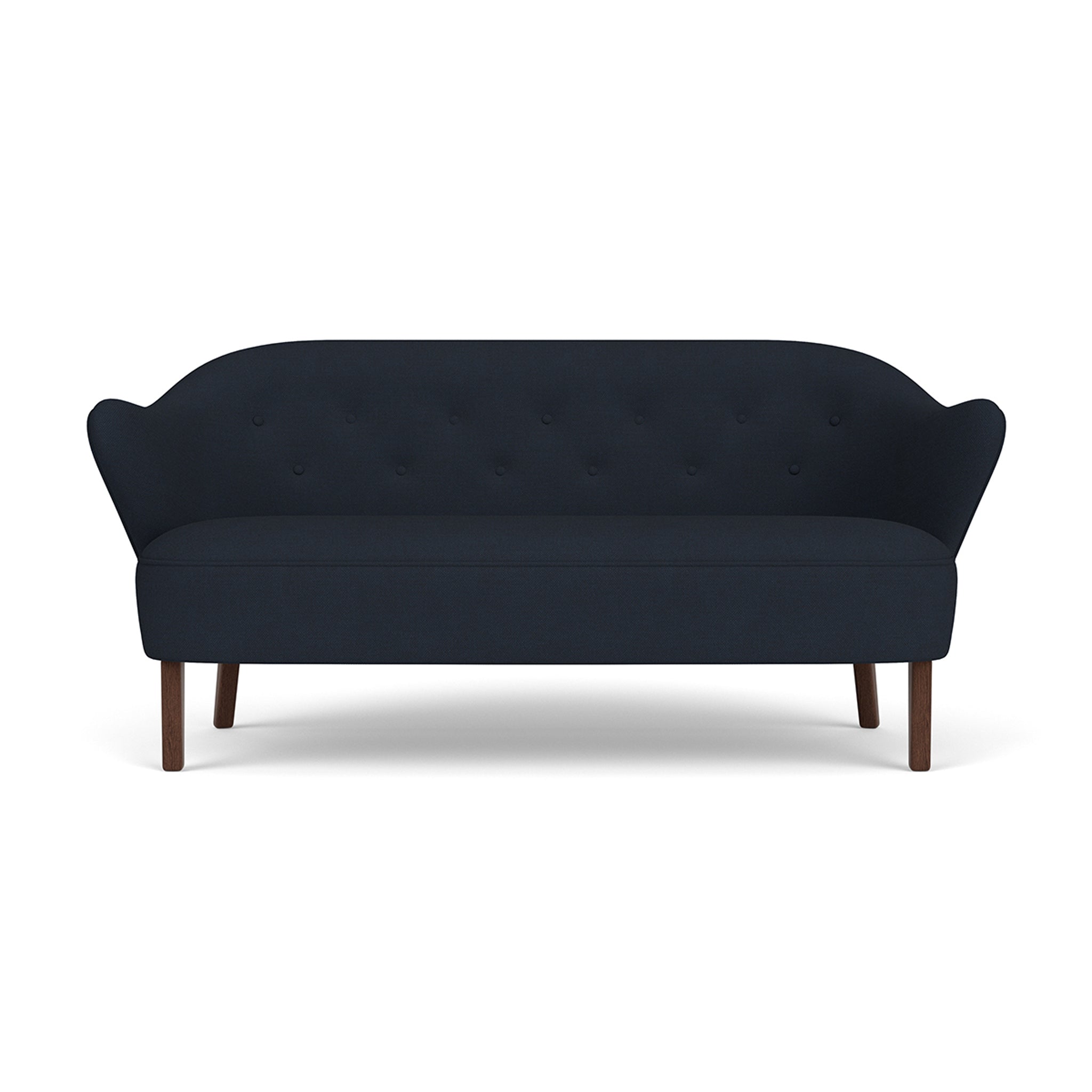 The Ingeborg sofa, an elegant 2.5-seater, was originally designed by Flemming Lassen in 1940 but never widely produced. Recently rediscovered in the archives, it has gained immense popularity among modern design enthusiasts after being meticulously recreated from original sketches. Featuring characteristic armrests, a buttoned back, and wooden legs, this deceptively spacious design is visually stunning and offers comfortable seating. Mirroring the expression of the corresponding chair, these two designs create a cozy and embracing duo that complements any contemporary living space. The Ingeborg Sofa comes in various exquisite upholstery fabrics, while the legs are available in oak or smoked oak options.