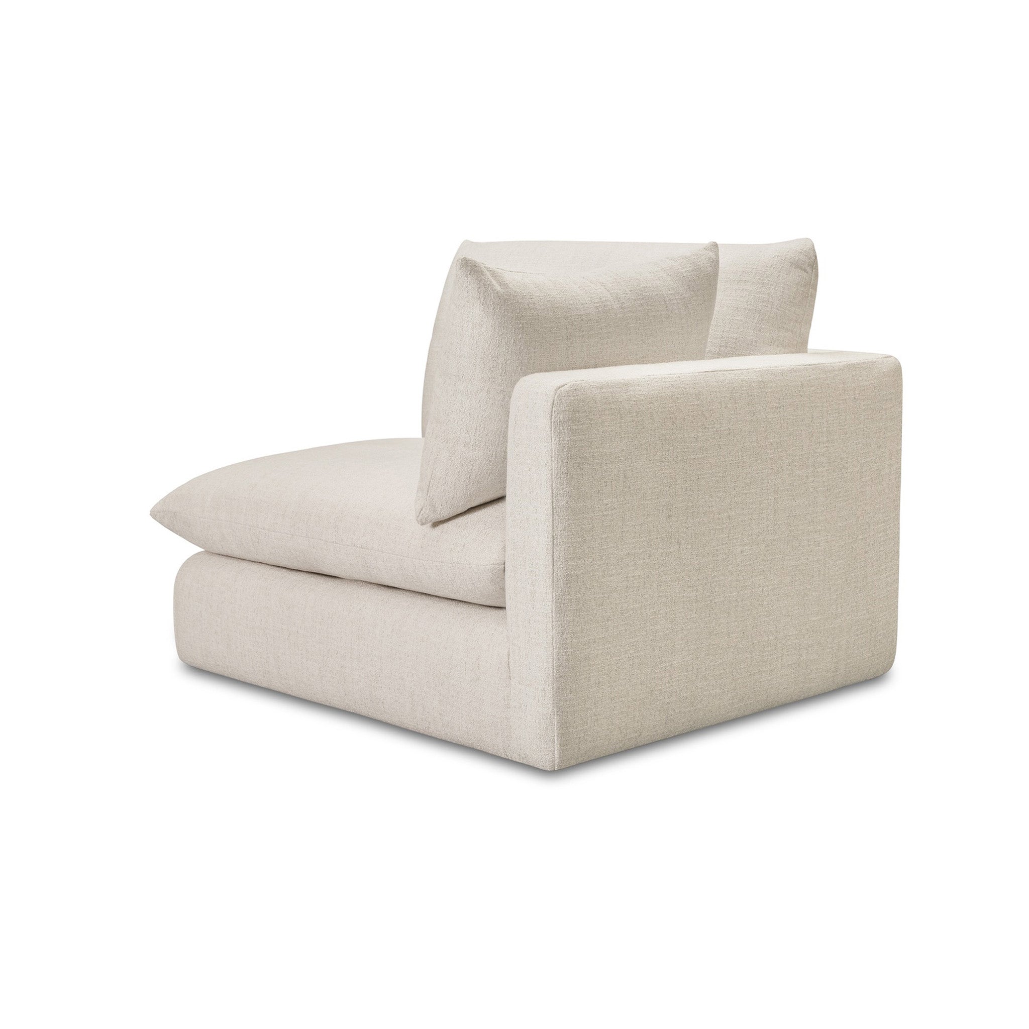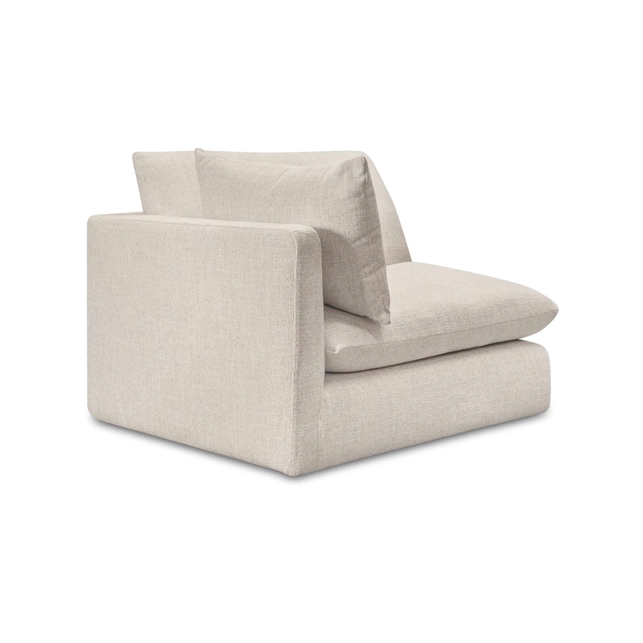 For rooms that live a little. Townes keeps it easy-low profile, clean lines, and all-day comfort that doesn't ask for attention. Slender arms and an invisible base give it a light, contemporary look, while faux feather fill and deep cushions bring that sink-right-in feel. Side pillows soften the arms, and hidden clips let it lock into the full Townes sectional or stand strong on its own. Relaxed, modular, and made to keep up.