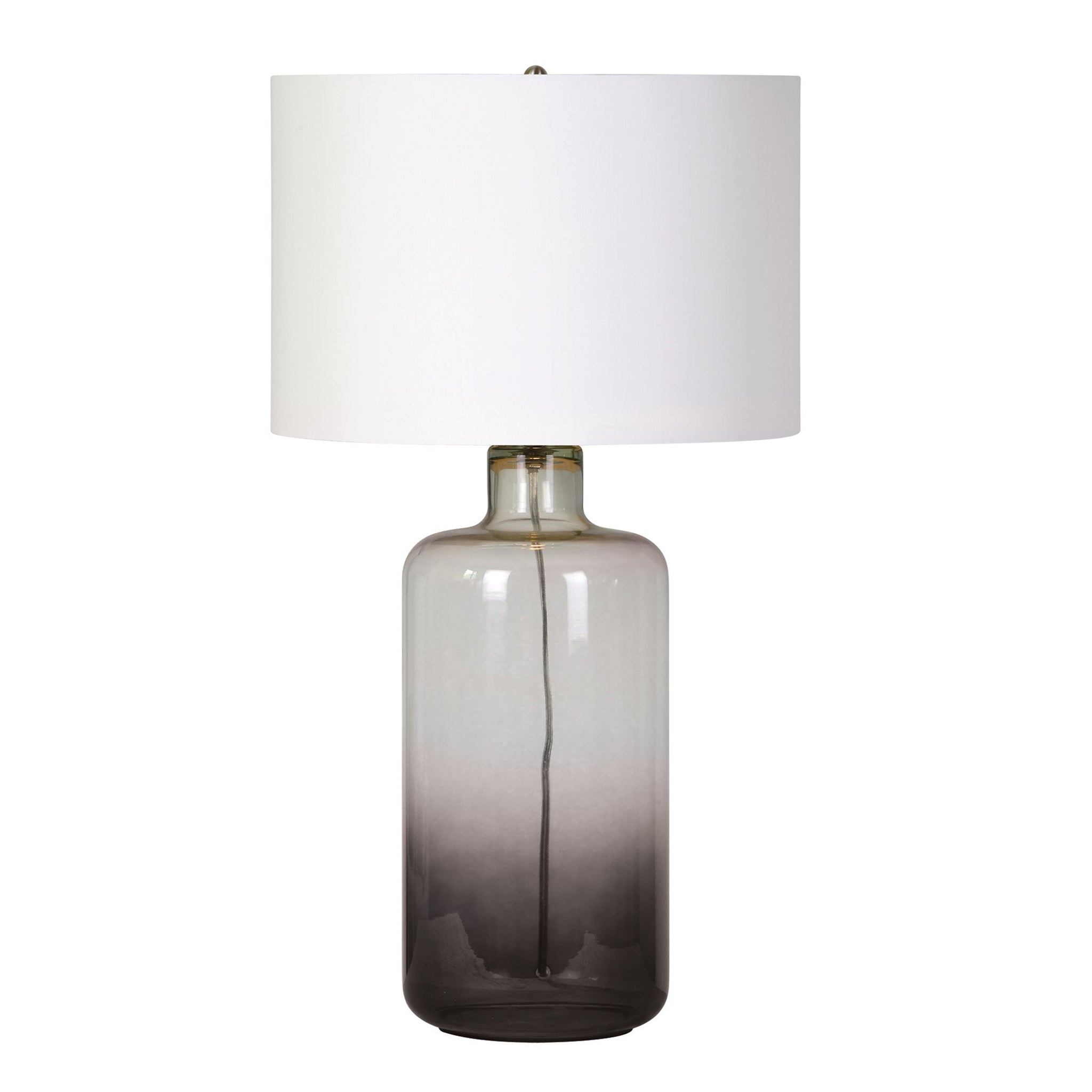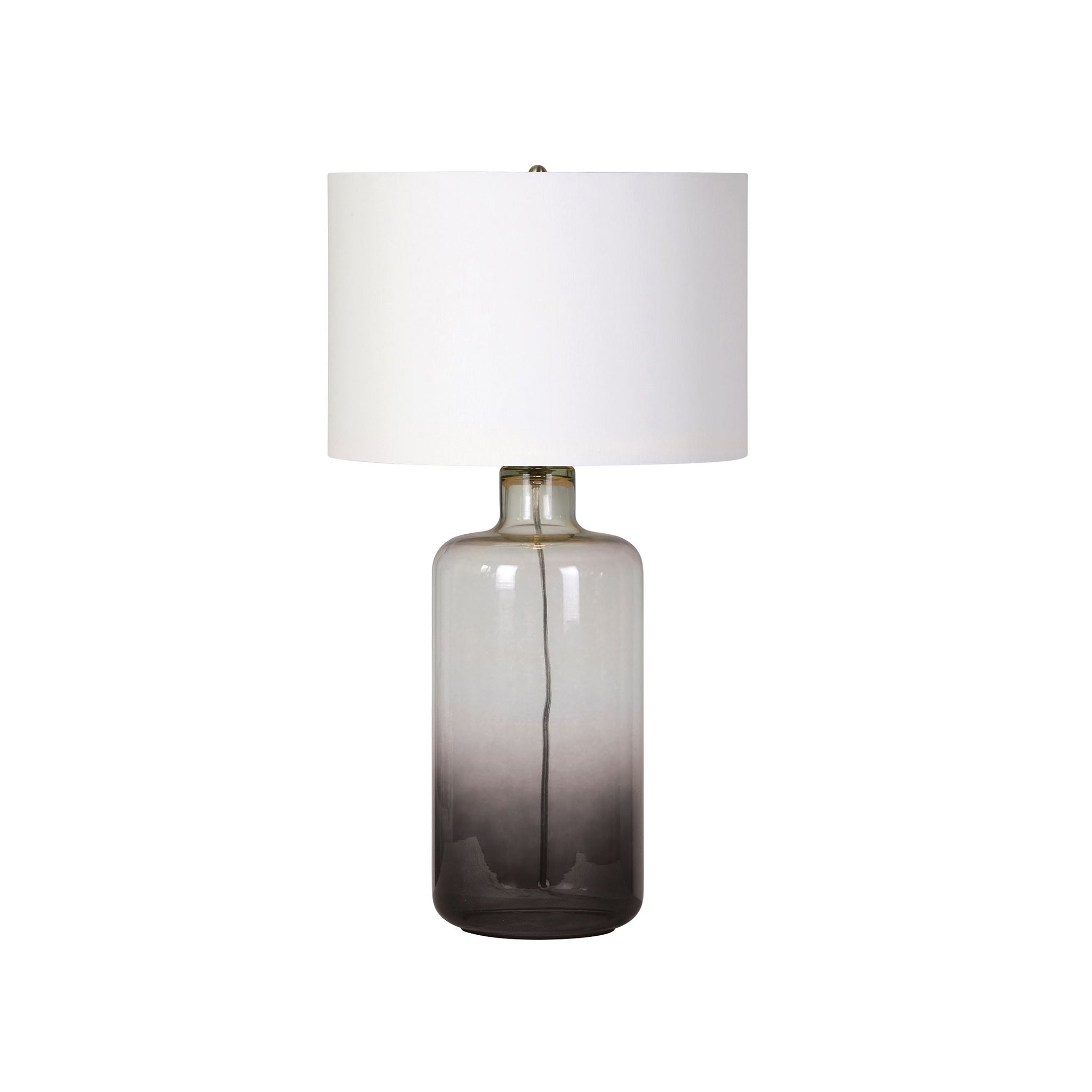 A muted blue misted glass base and a crisp white shade make this lamp a standout fixture in any space.