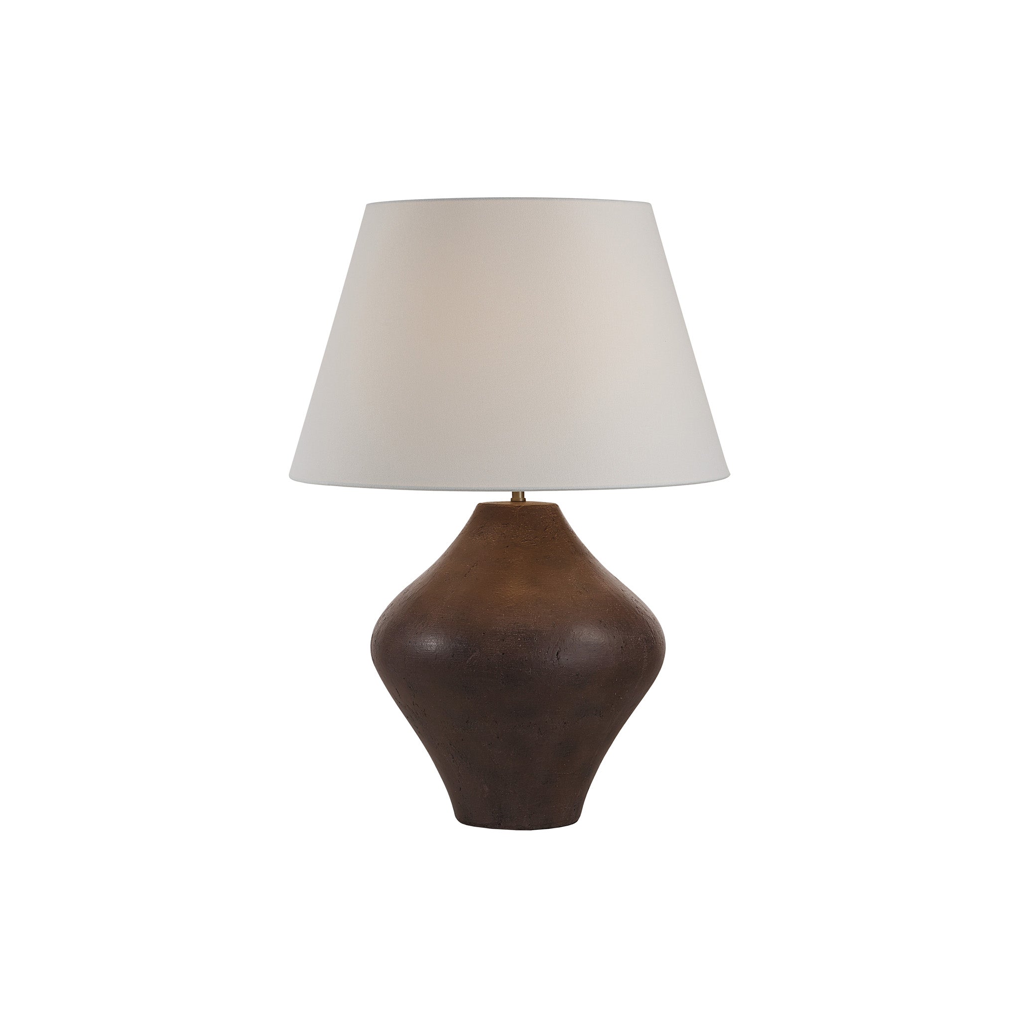 Standing at an impressive 30.75 inches tall, this oversized table lamp is a bold choice for bringing height and drama to your design project. Perfect for displaying on a credenza or console table layered in front of large-scale art, its brown ceramic body grounds the fixture while its ivory linen shade provides balance and a soft, diffused glow.