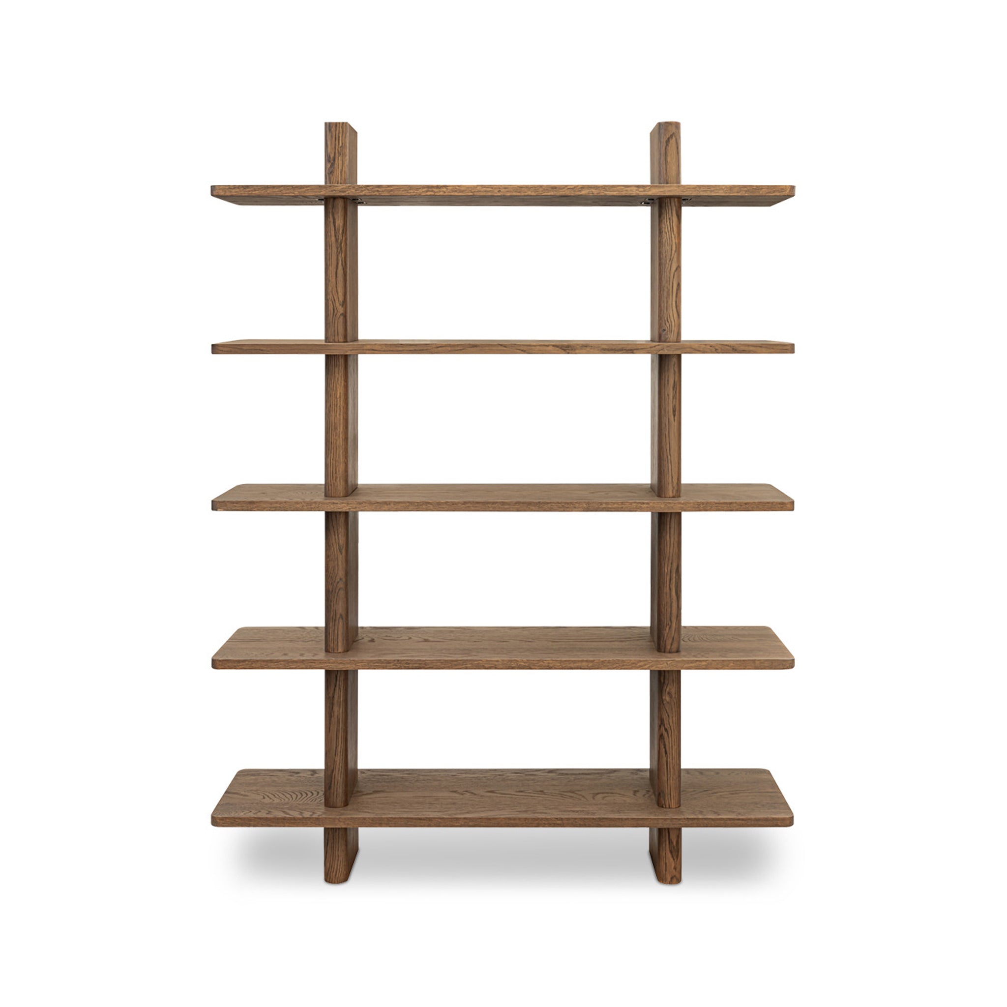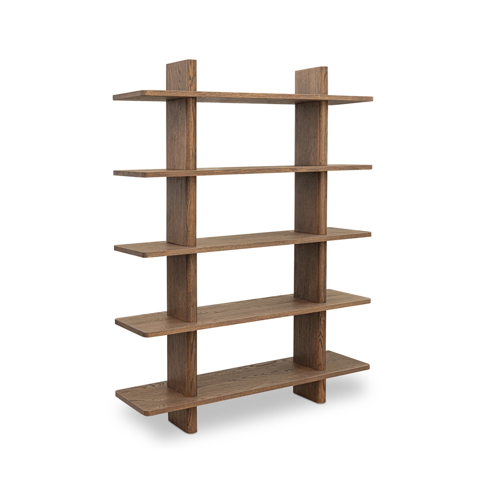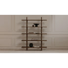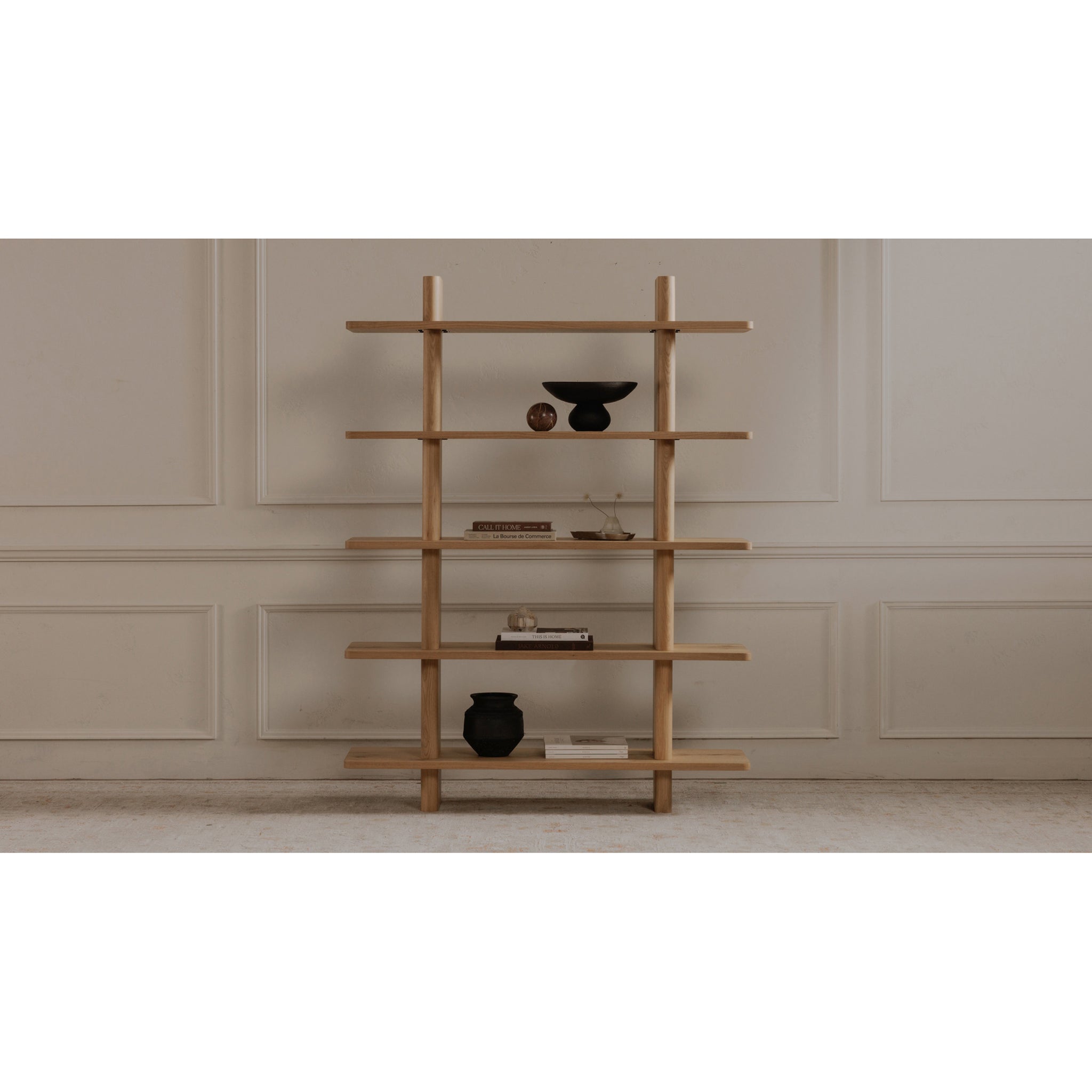 The Cipriano bookcase embodies contemporary elegance, marrying form and function with understated sophistication. A vertical support with a bullnose edge softens the silhouette, introducing an organic feel to the rectangular shelving.