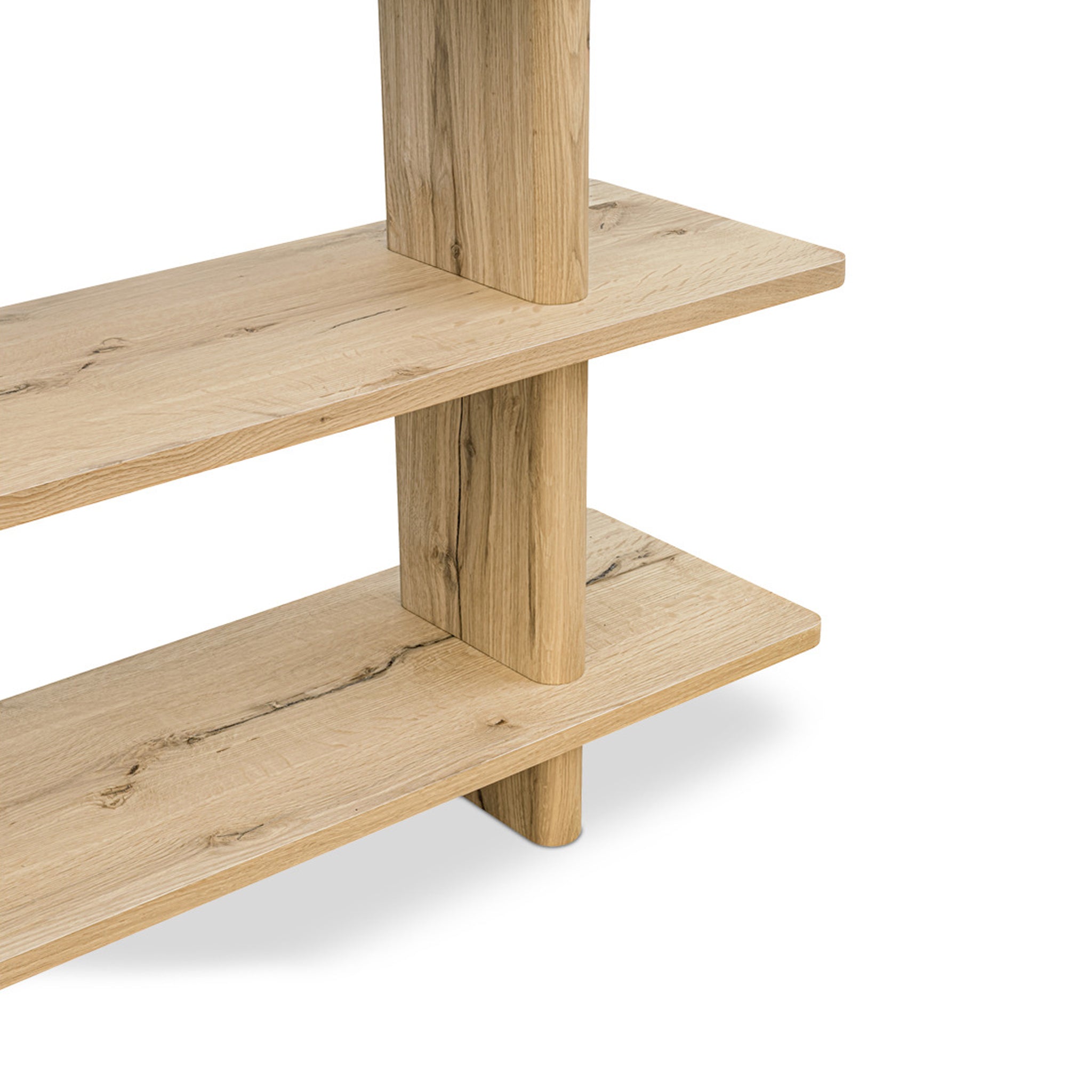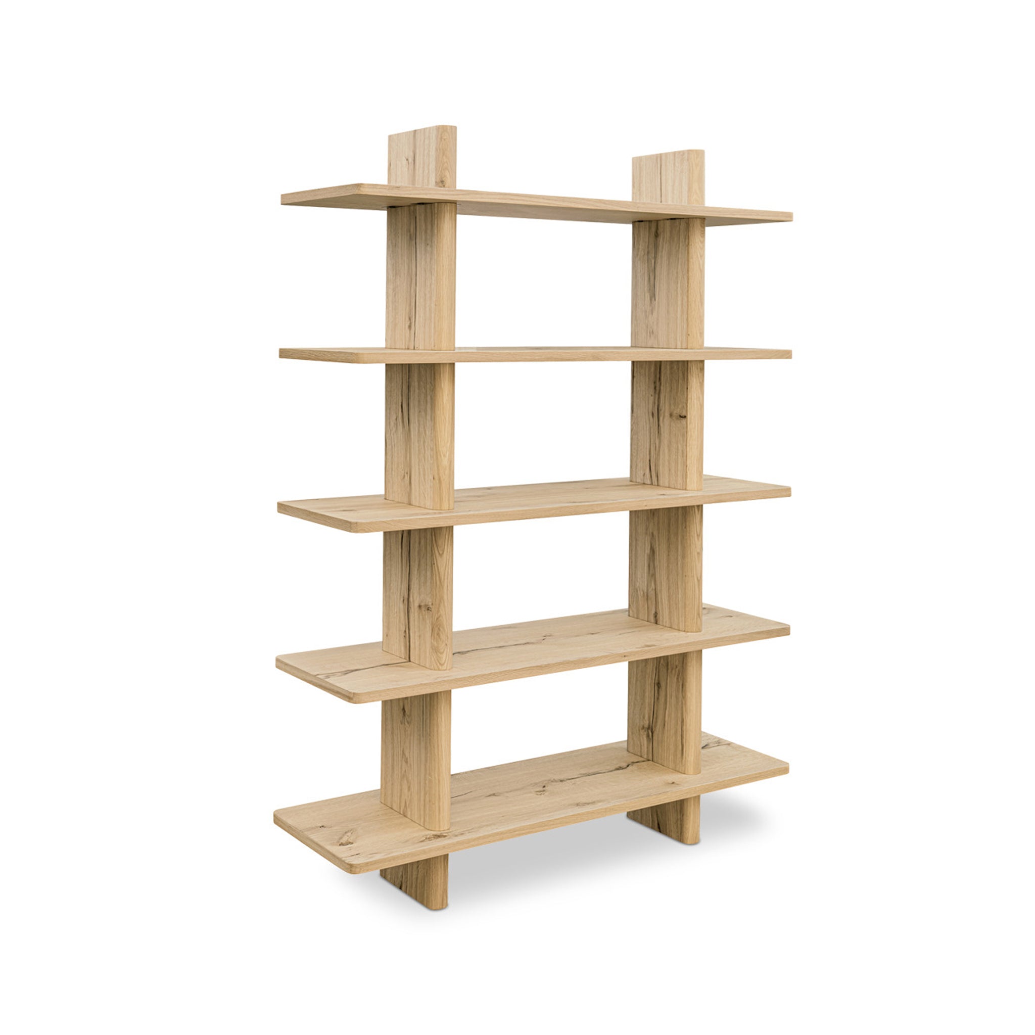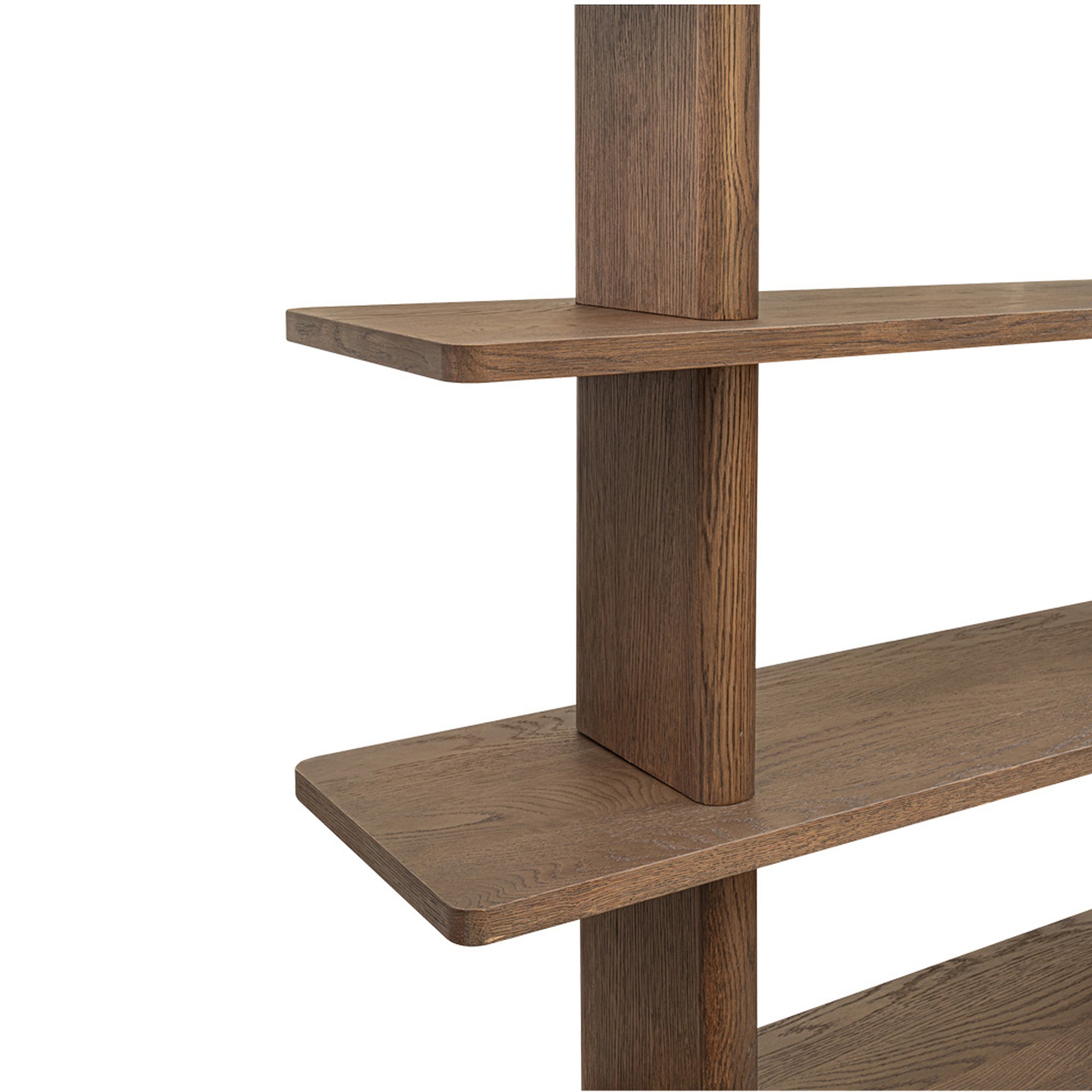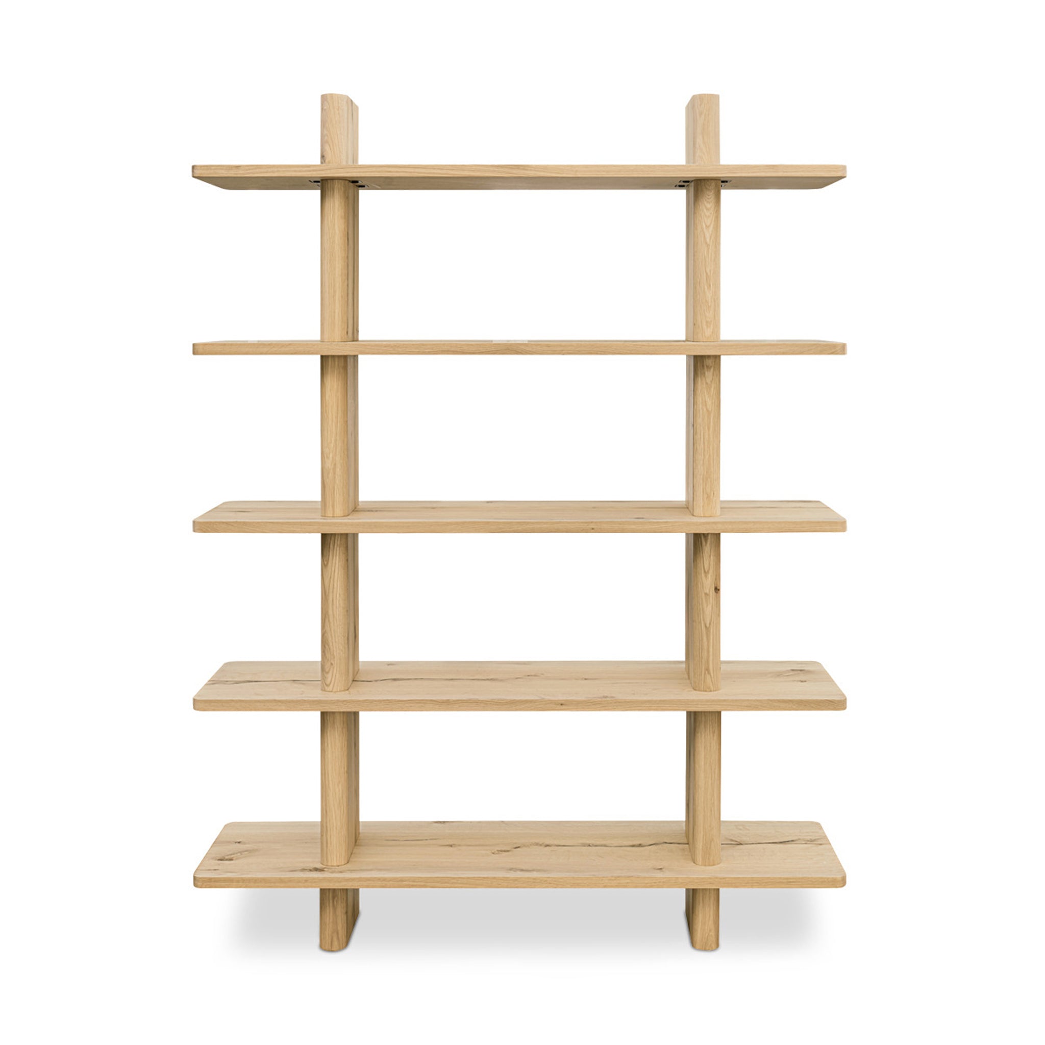 The Cipriano bookcase embodies contemporary elegance, marrying form and function with understated sophistication. A vertical support with a bullnose edge softens the silhouette, introducing an organic feel to the rectangular shelving.