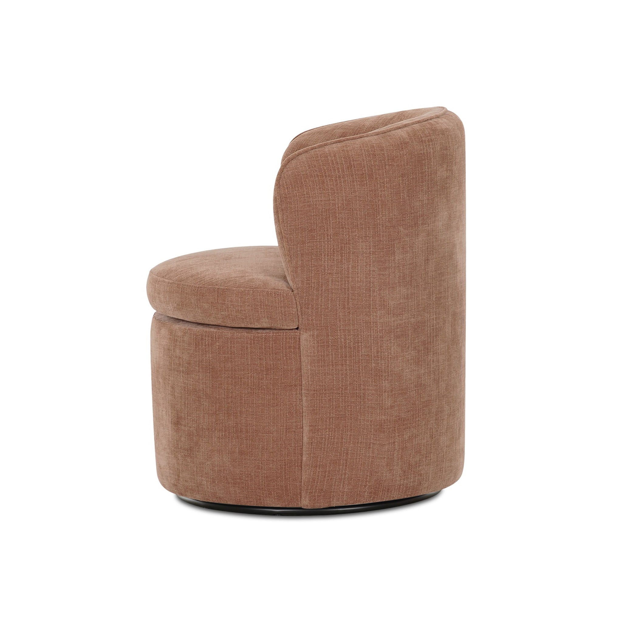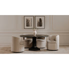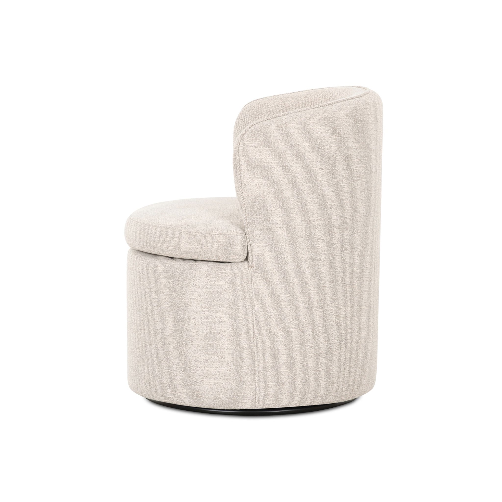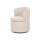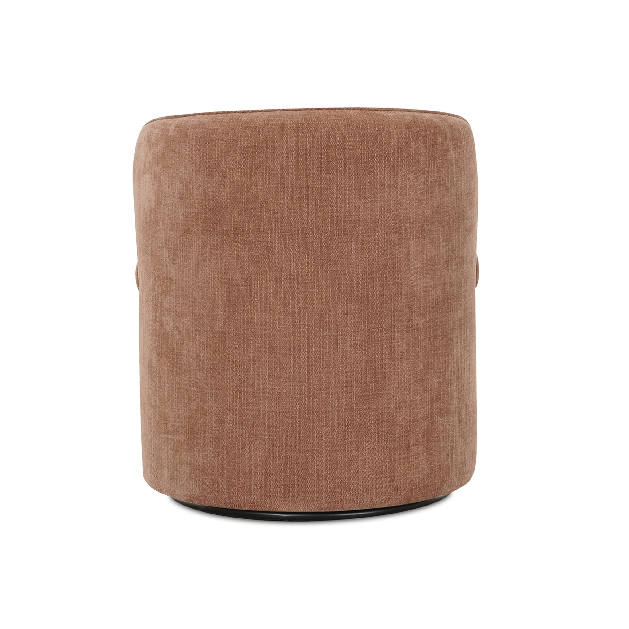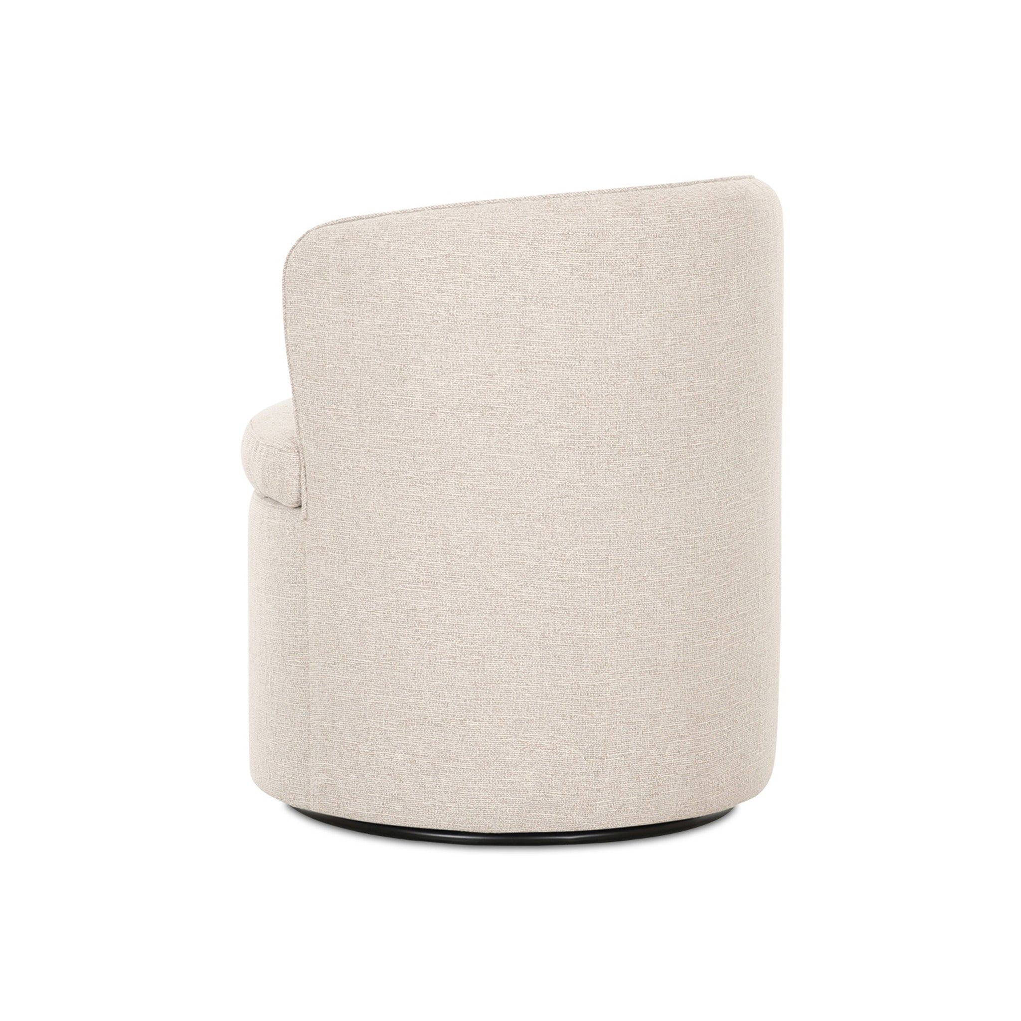 The Dalia swivel dining chair adds sumptuous comfort with easy-to-clean performance fabric upholstery enveloping its gentle curves. An innovative 360-degree swivel base facilitates effortless engagement, perfect for intimate conversations.