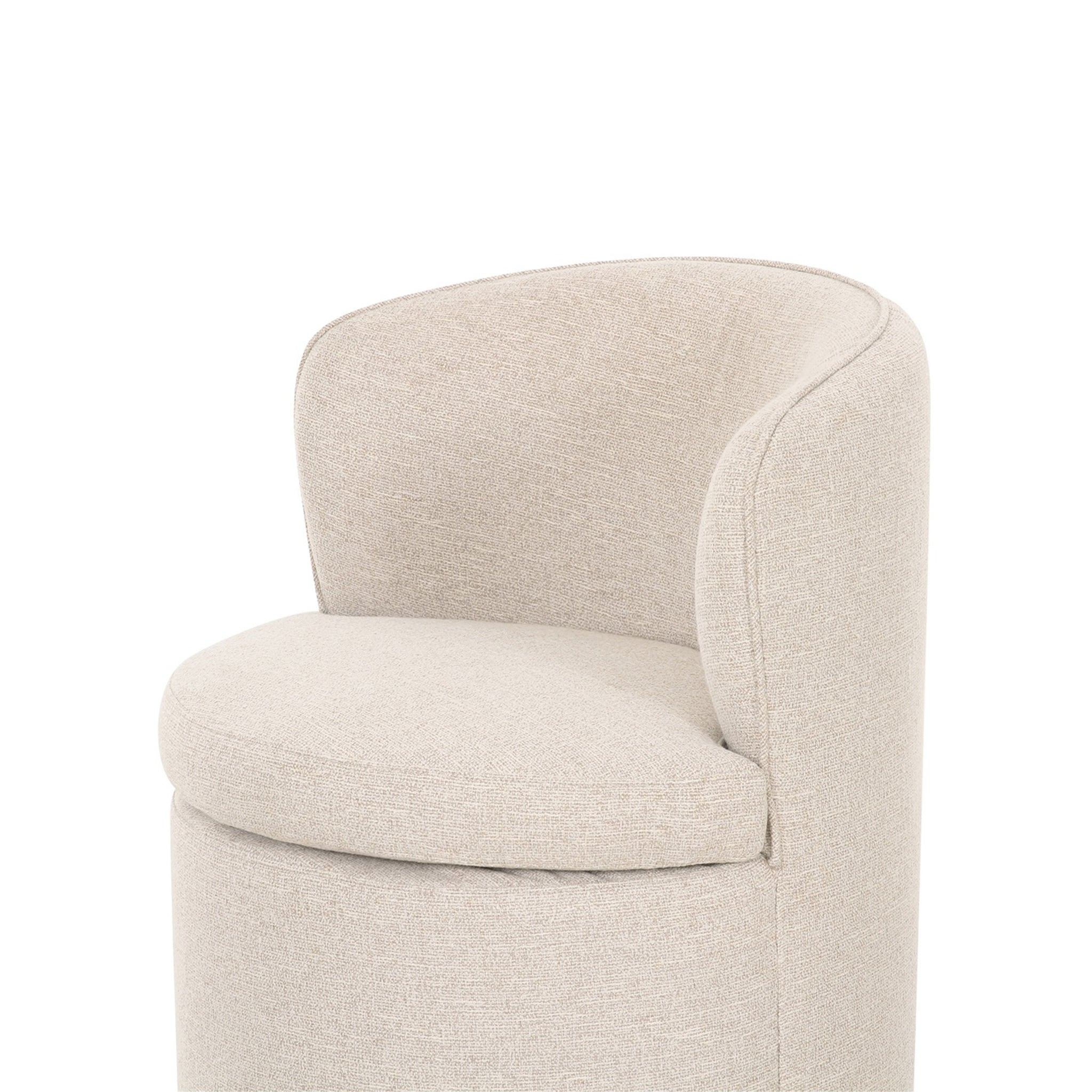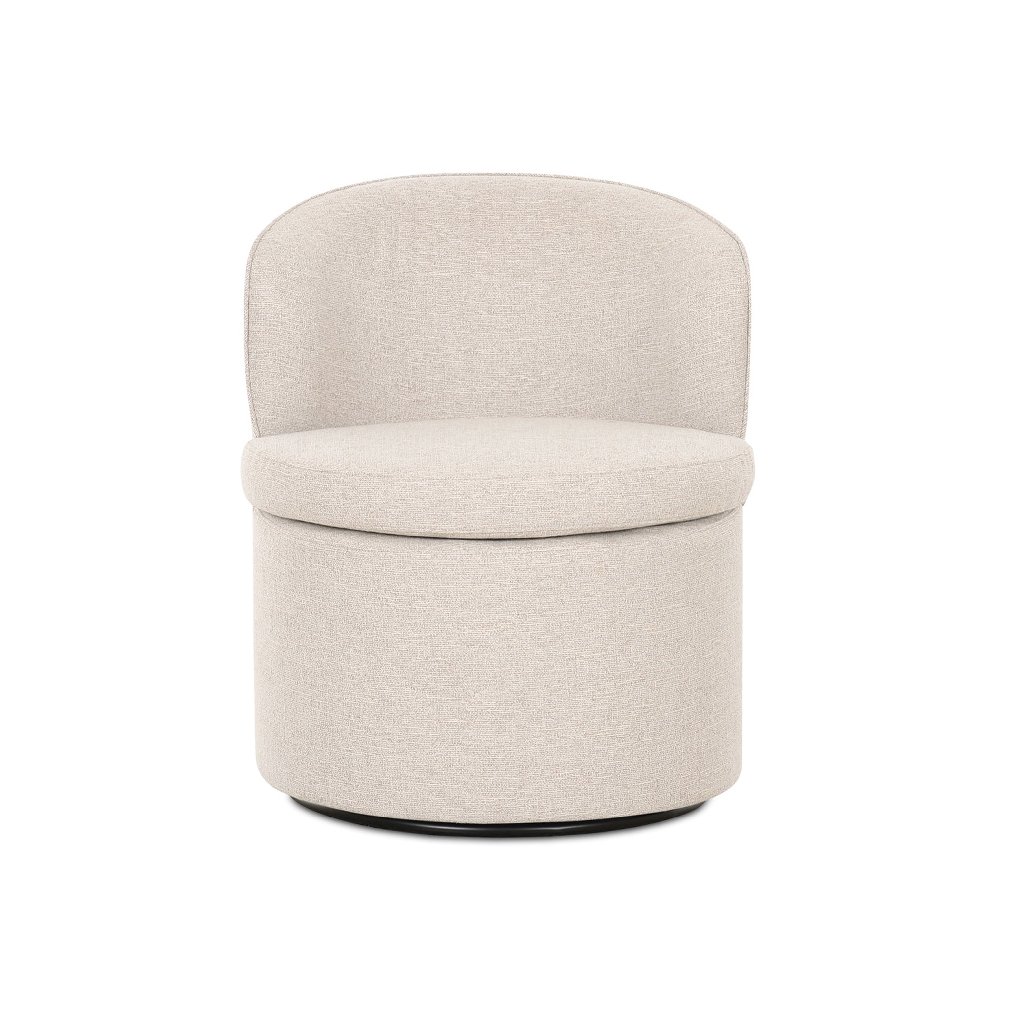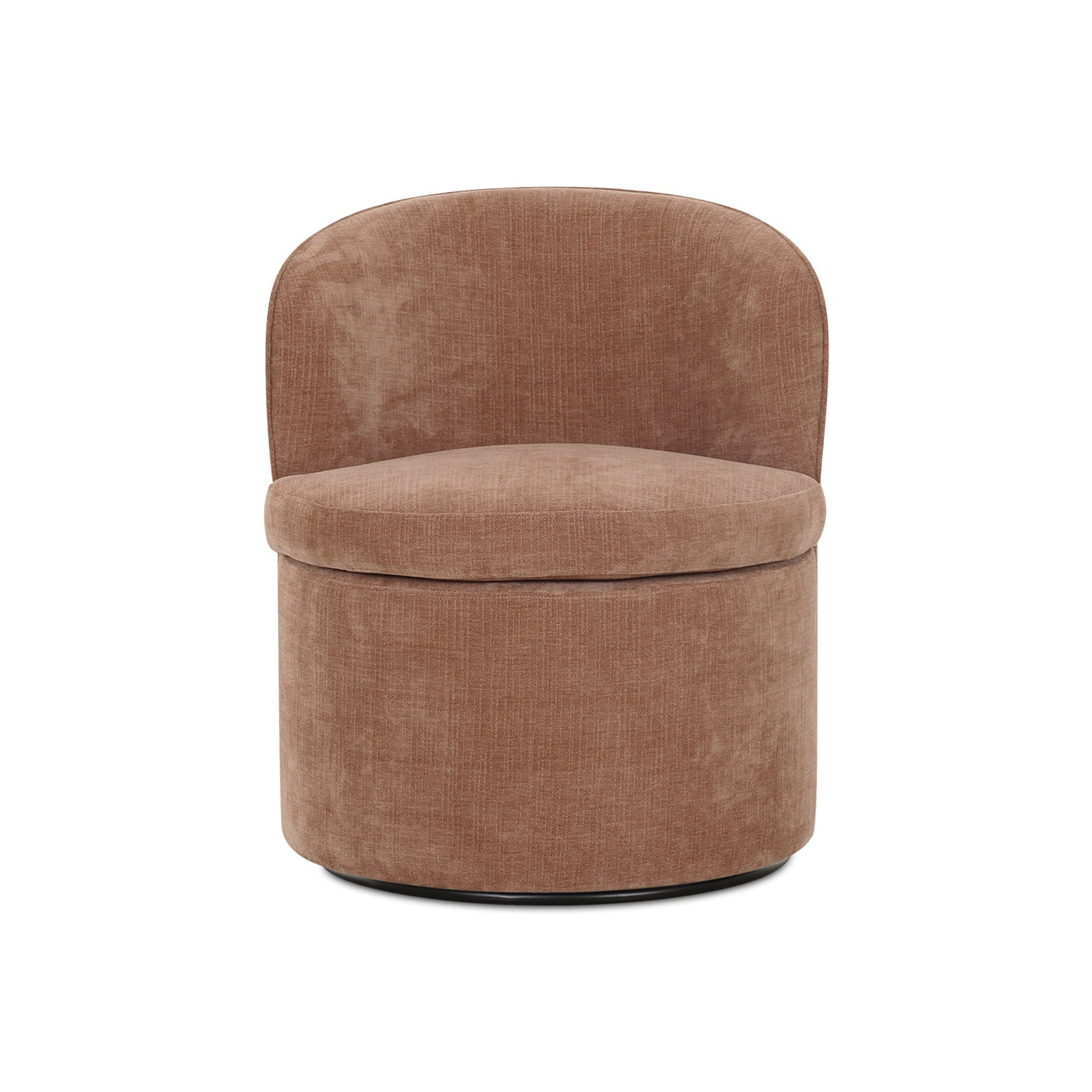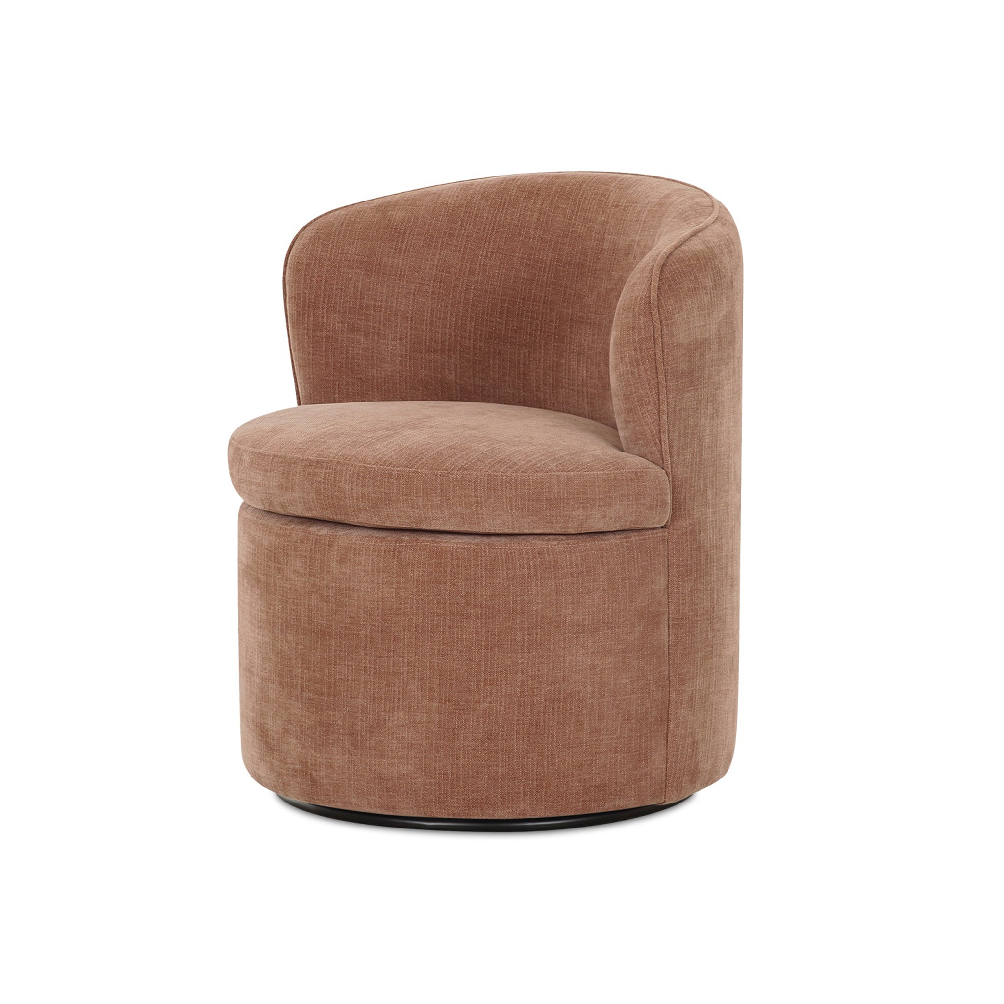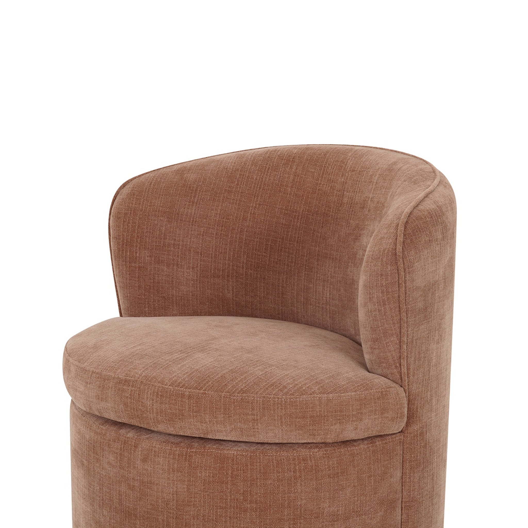 The Dalia swivel dining chair adds sumptuous comfort with easy-to-clean performance fabric upholstery enveloping its gentle curves. An innovative 360-degree swivel base facilitates effortless engagement, perfect for intimate conversations.