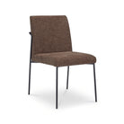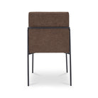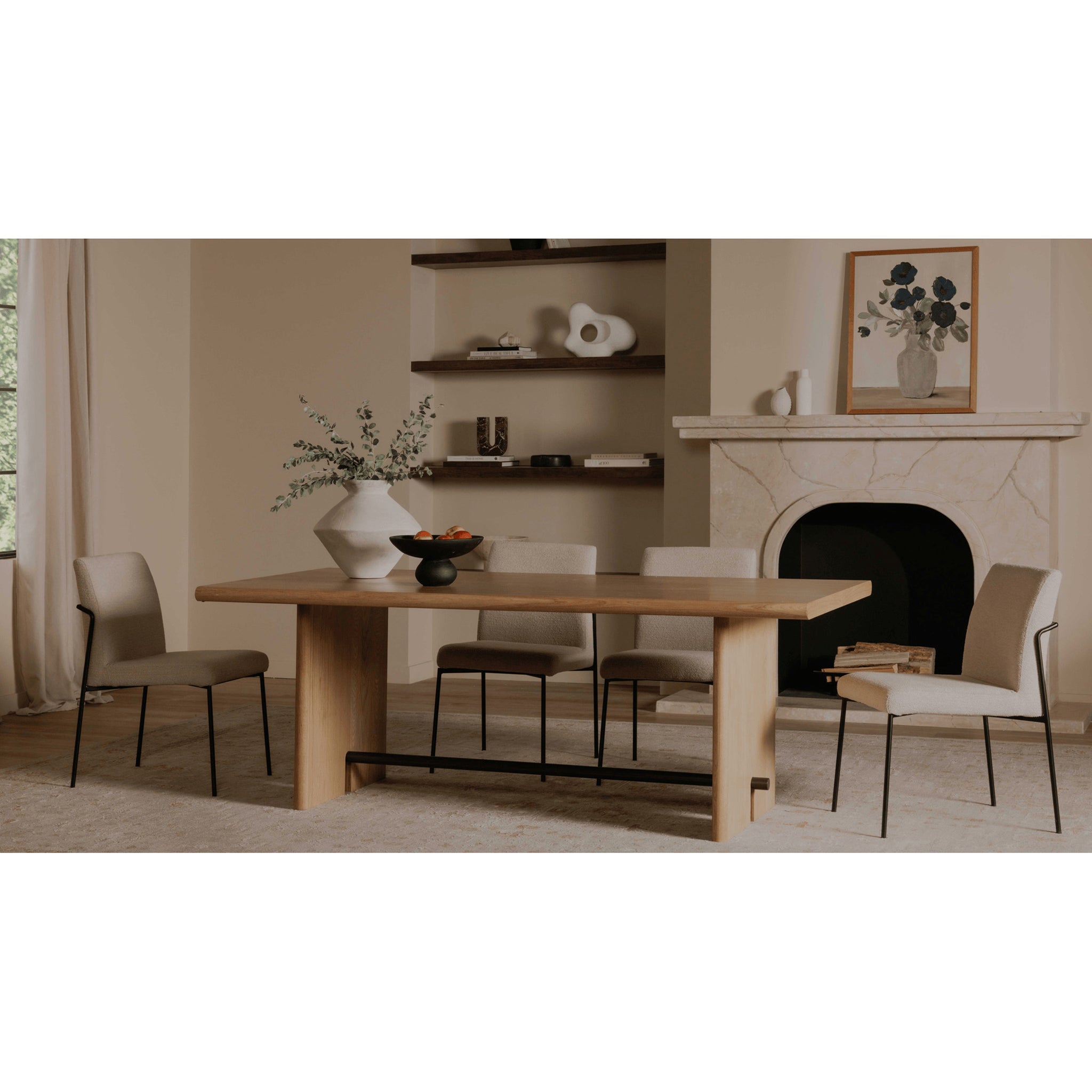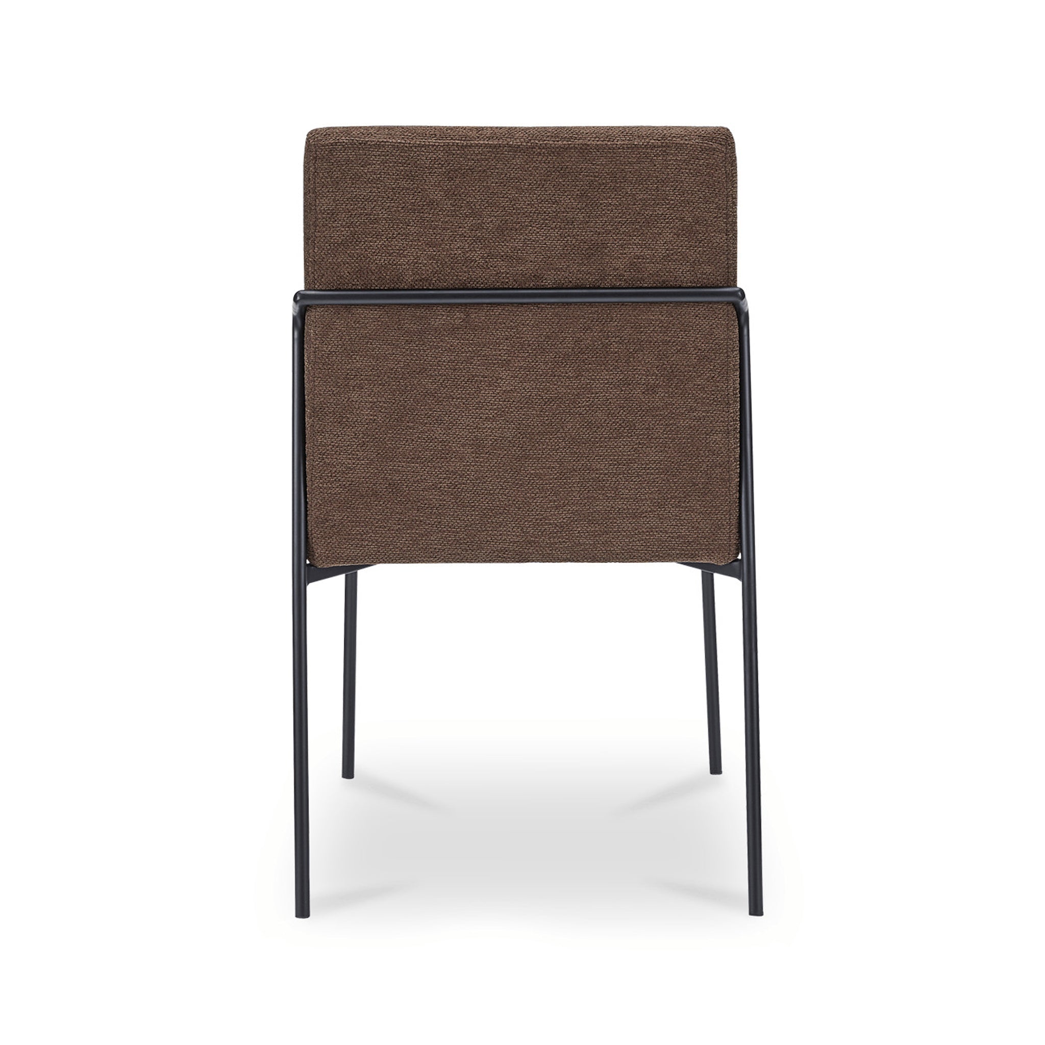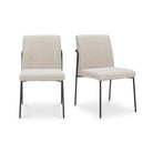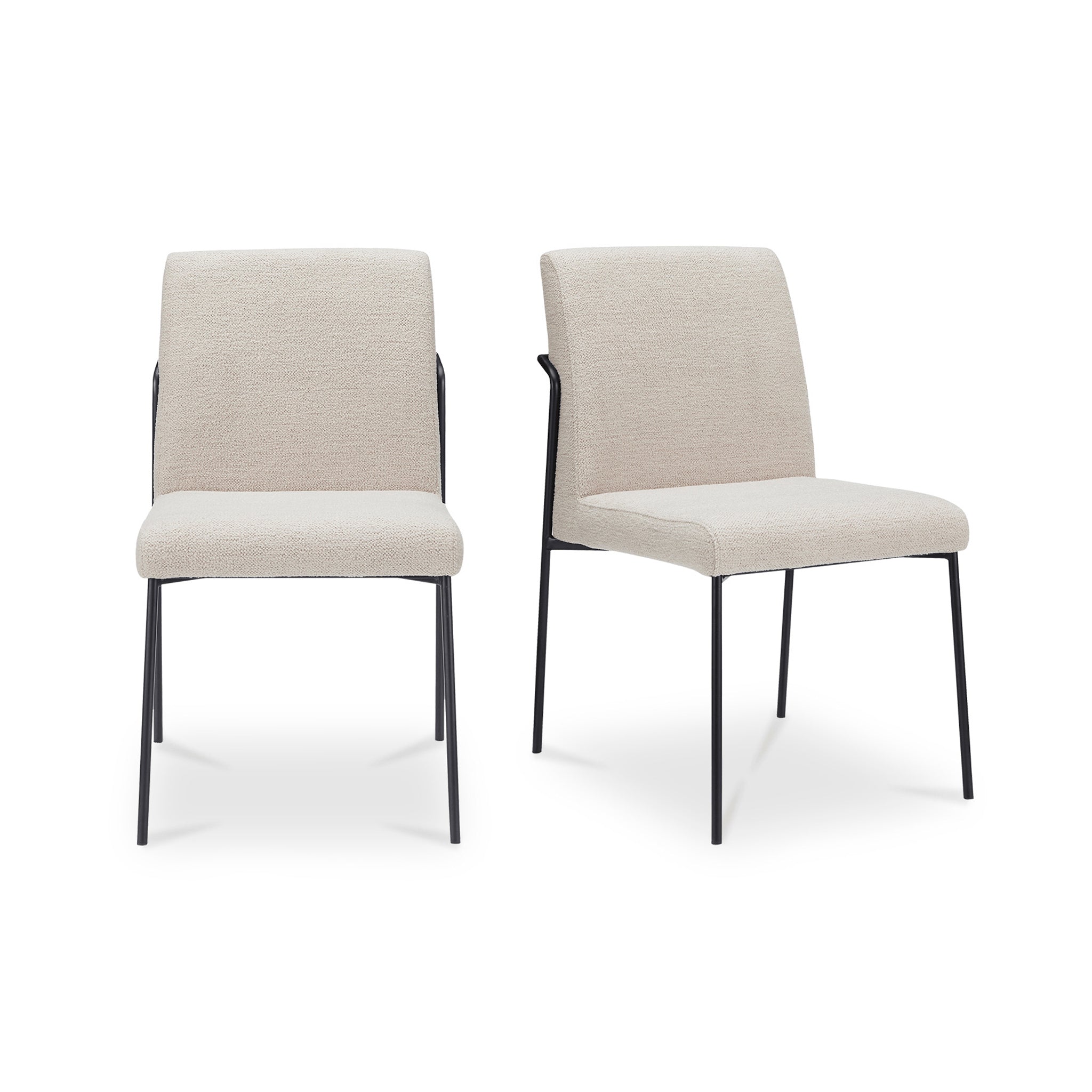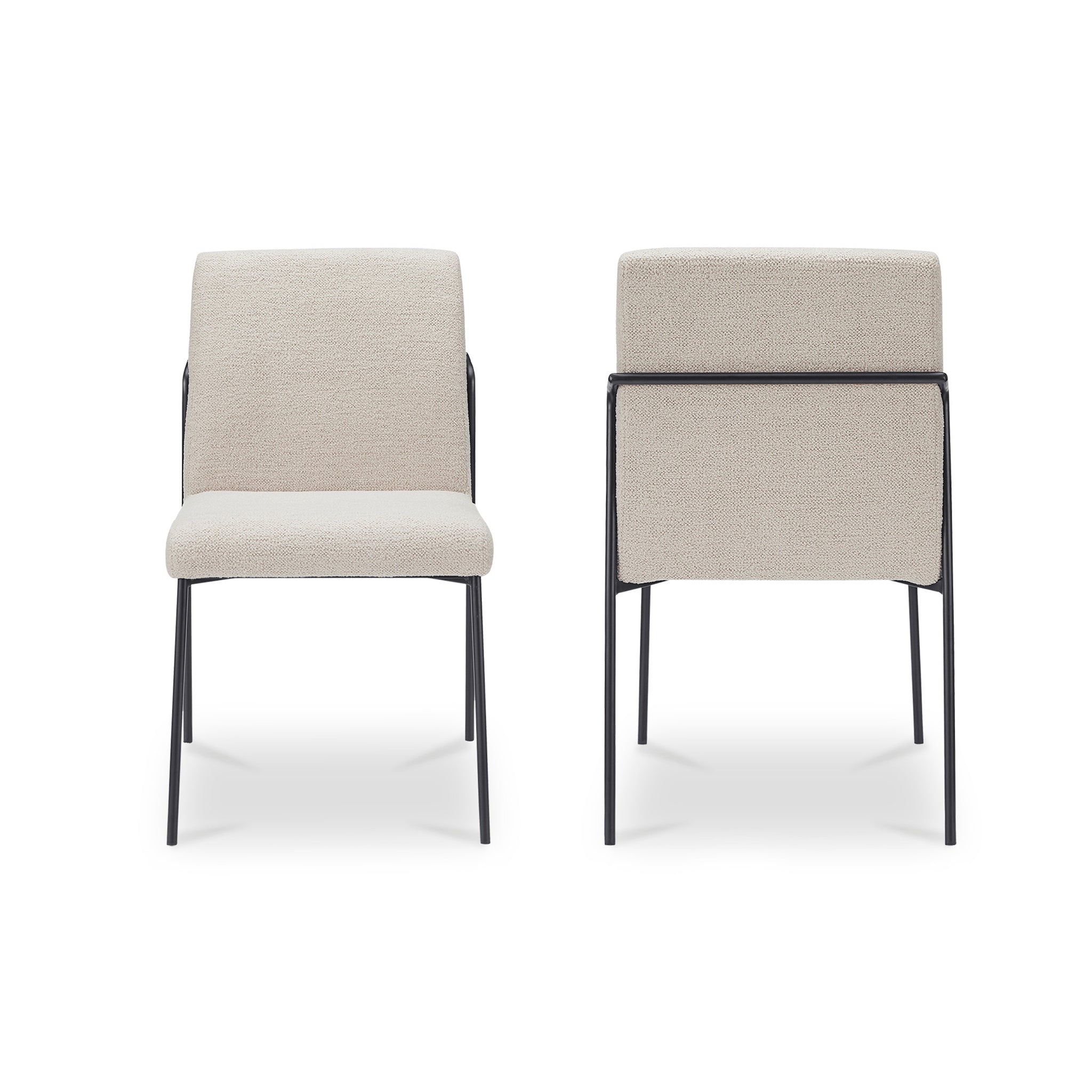 The Demetrio dining chair marries visual lightness with sumptuous comfort. A slim metal frame curves gracefully, supporting plush ivory upholstery. The minimalist base imparts an ethereal quality, contrasting beautifully with the padded seat and back.