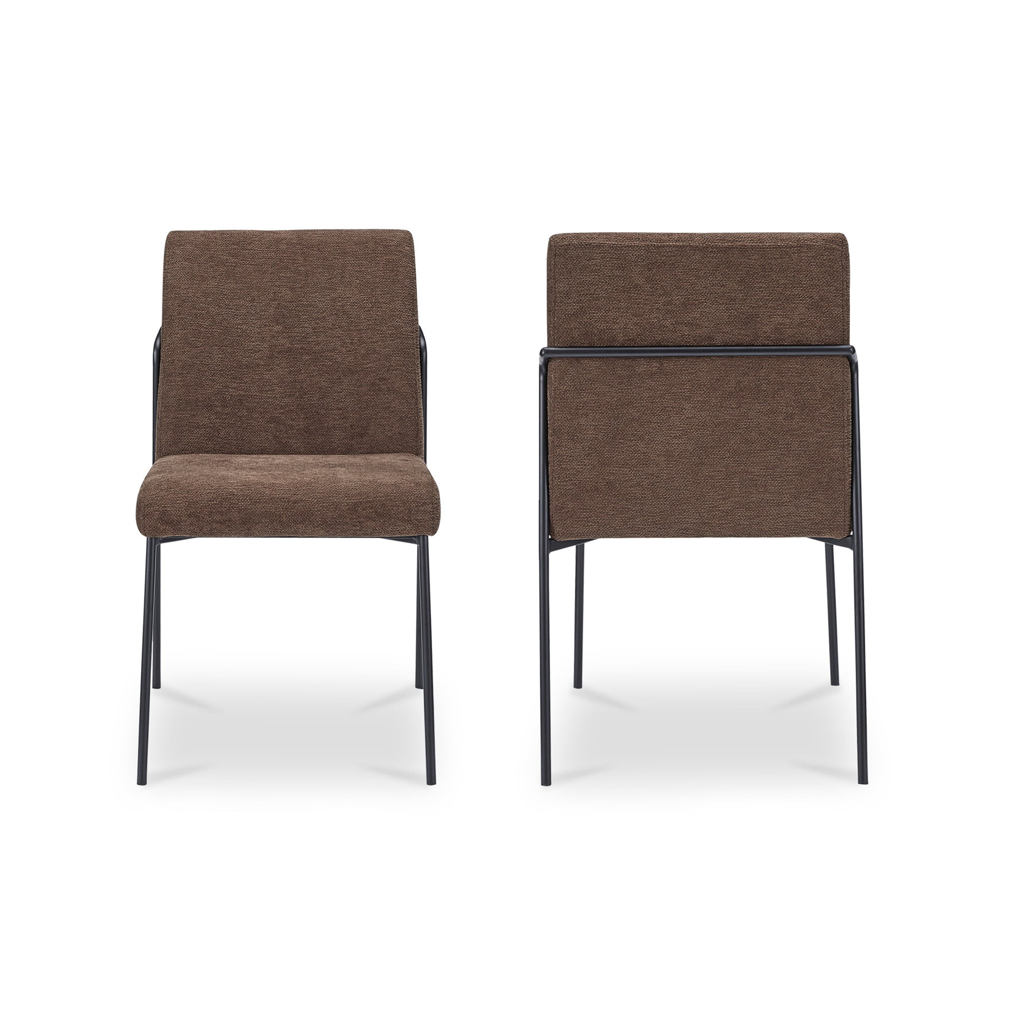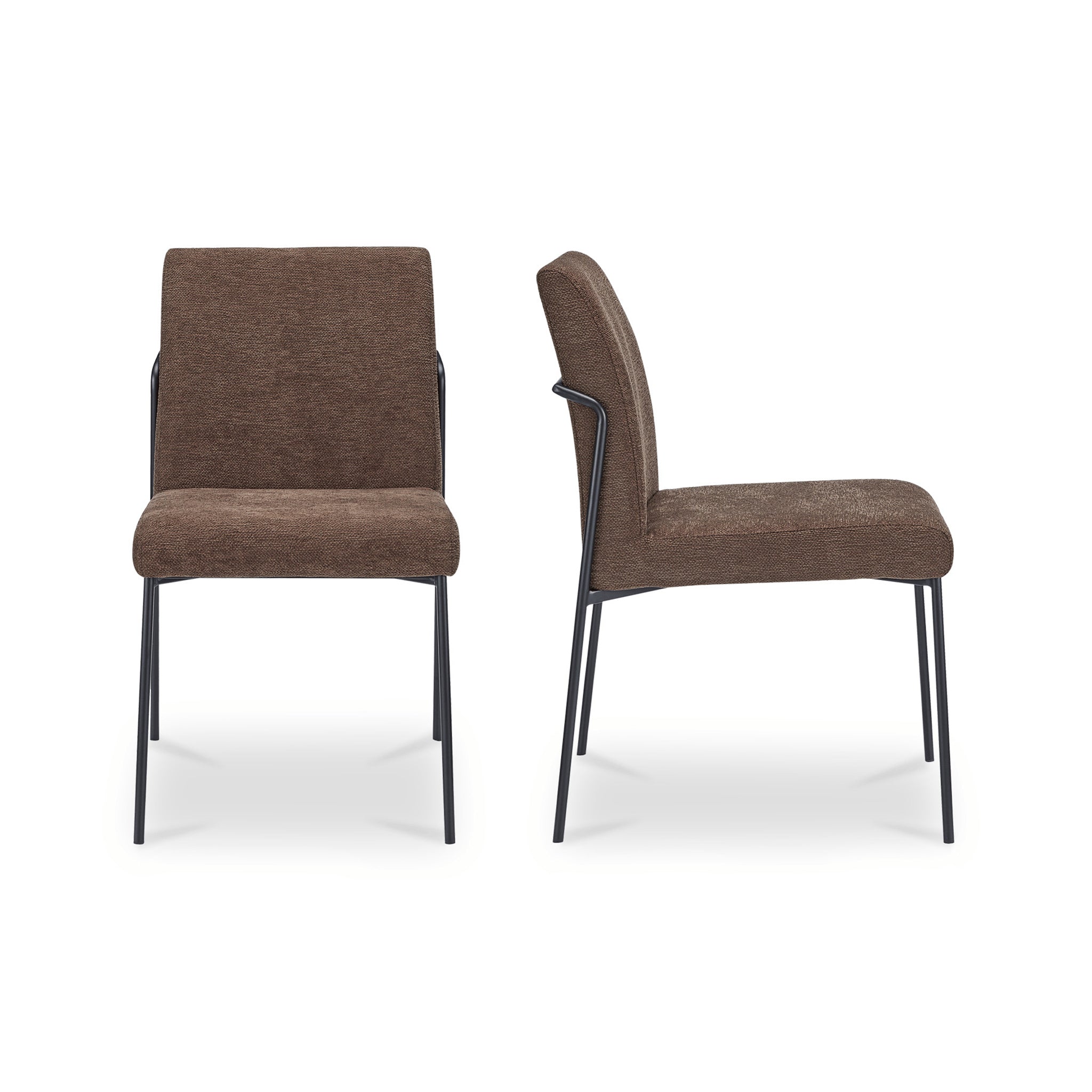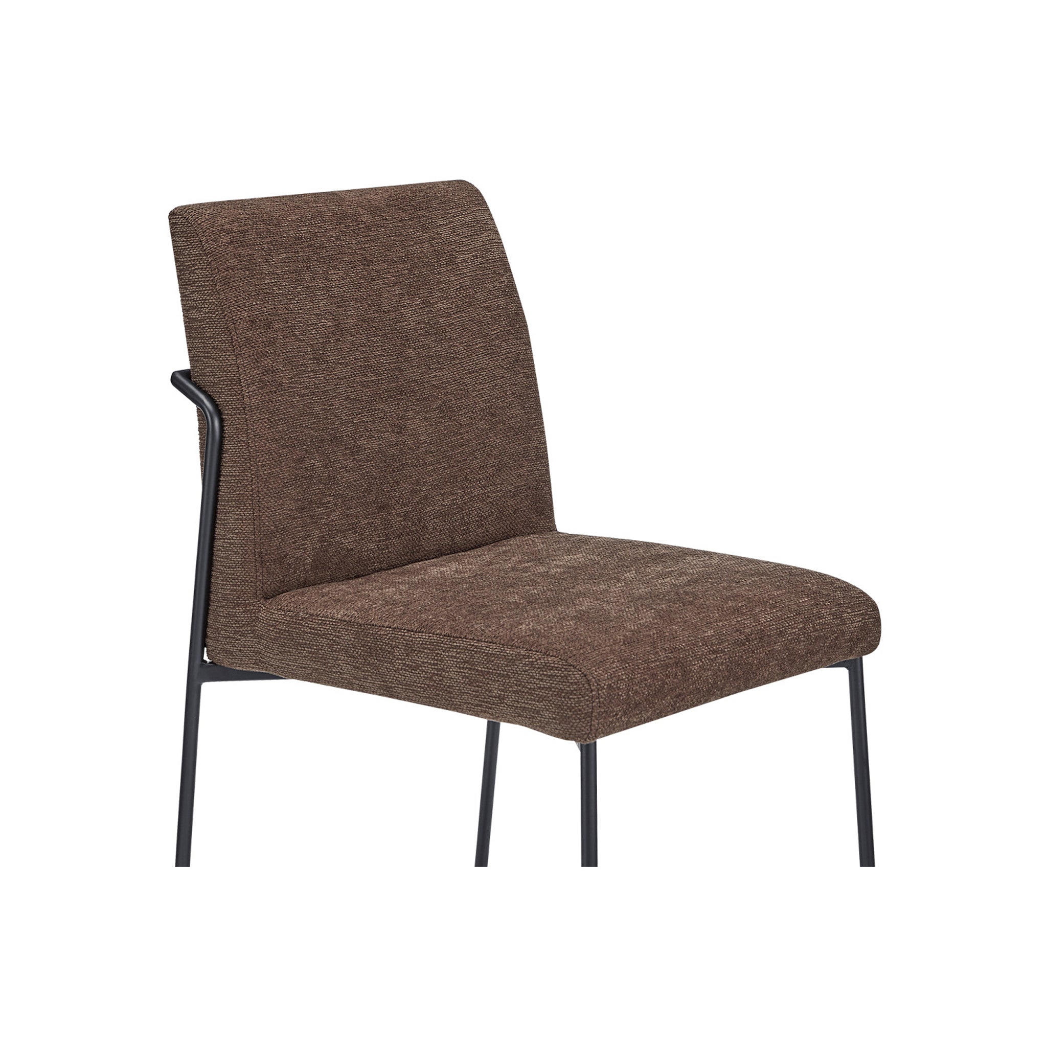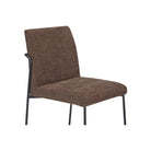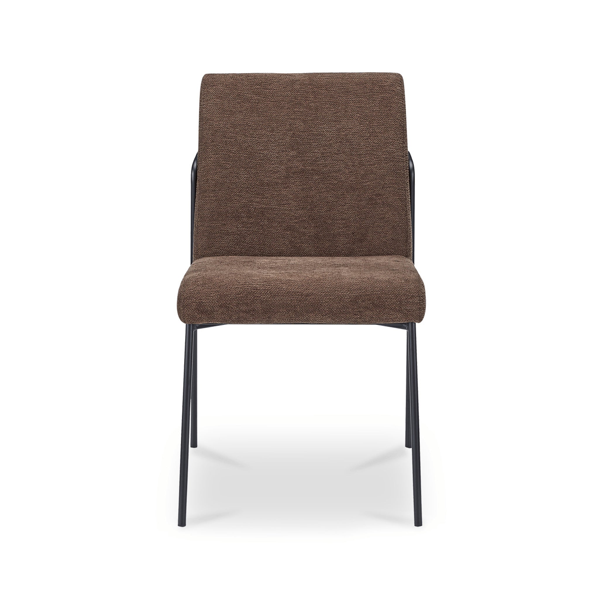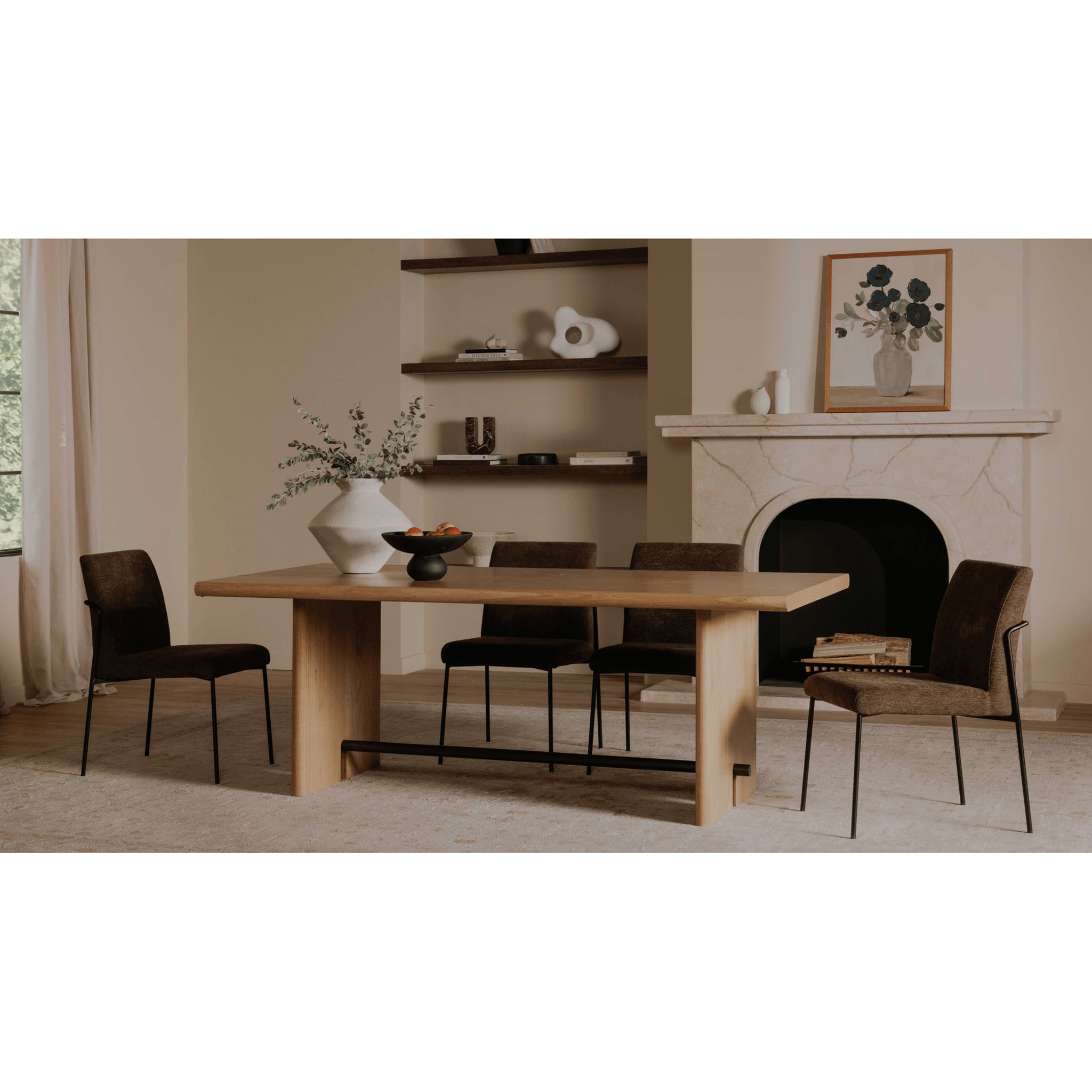 The Demetrio dining chair marries visual lightness with sumptuous comfort. A slim metal frame curves gracefully, supporting plush ivory upholstery. The minimalist base imparts an ethereal quality, contrasting beautifully with the padded seat and back.