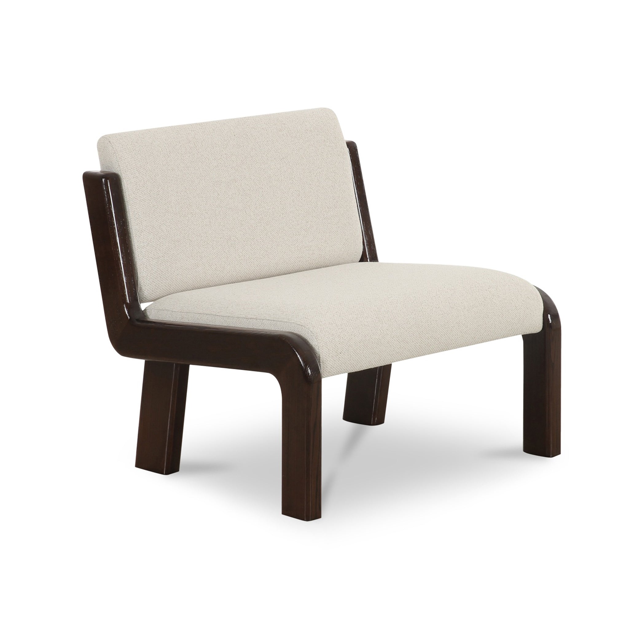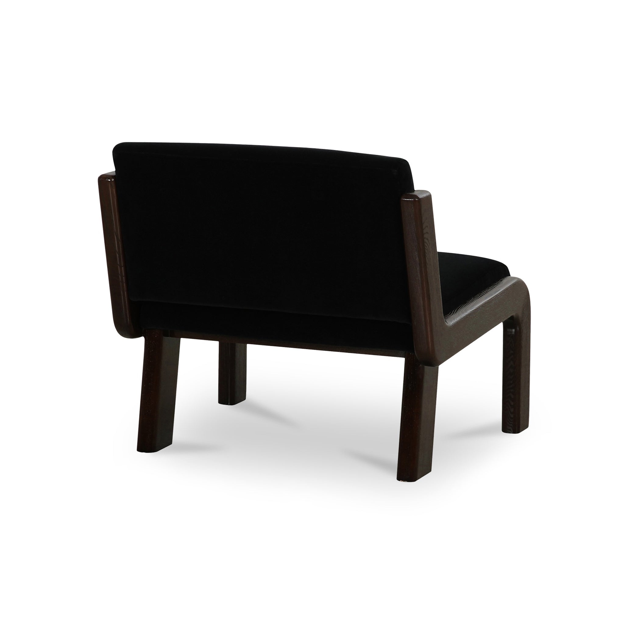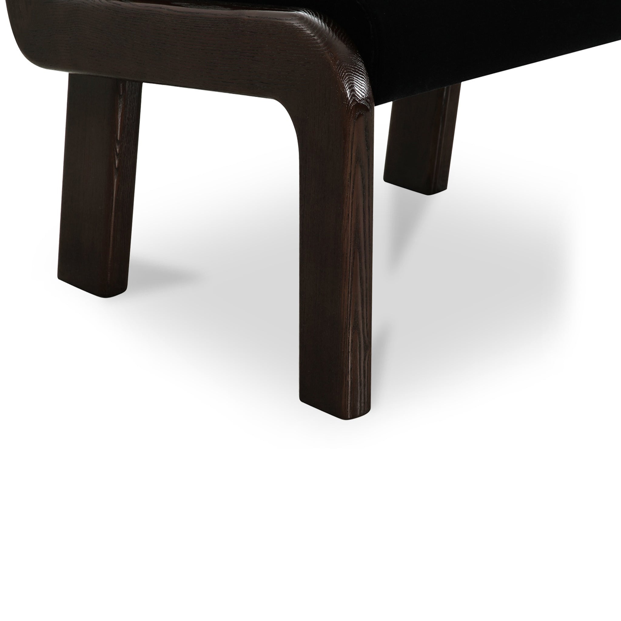 The Emilia accent chair seamlessly blends vintage allure with contemporary elegance. Its sleek, armless silhouette draws inspiration from mid-century design, while modern finishes reimagine the design for contemporary spaces. Luxurious, upholstery embraces a wide seat, while a high-gloss solid ash frame in rich dark brown adds bold sophistication.