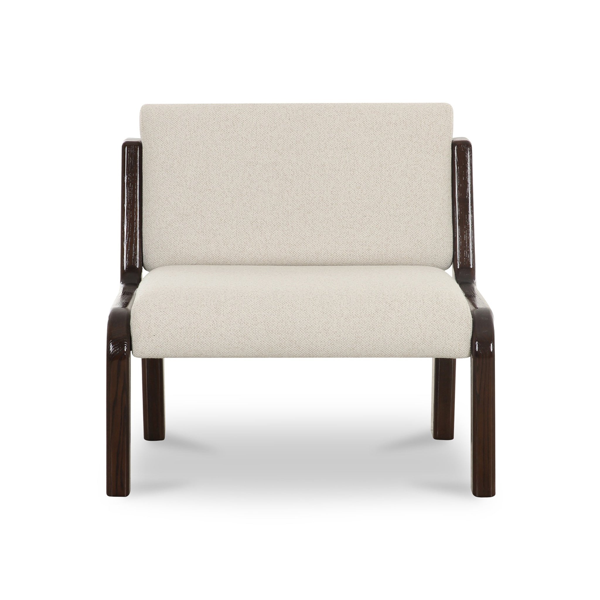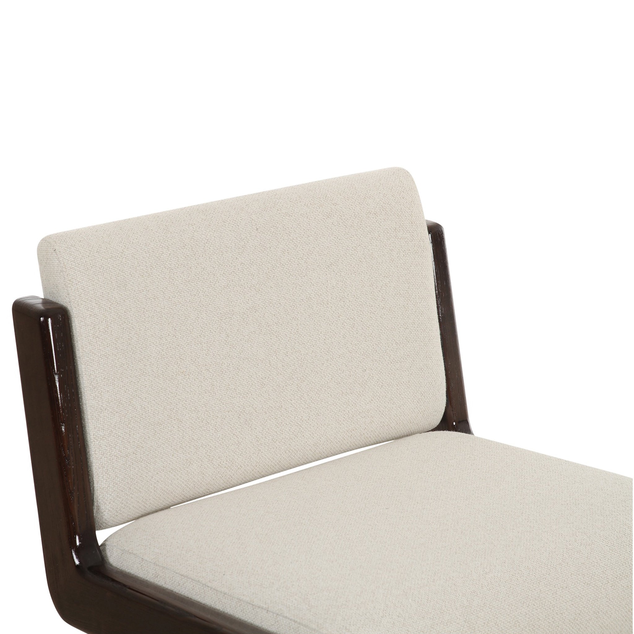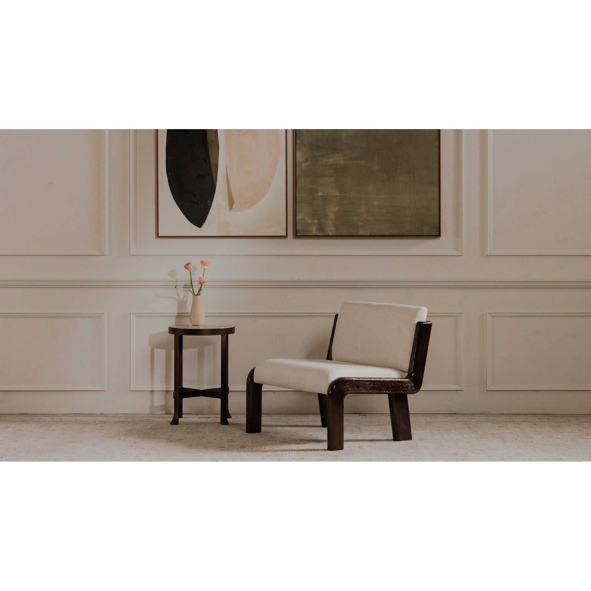 The Emilia accent chair seamlessly blends vintage allure with contemporary elegance. Its sleek, armless silhouette draws inspiration from mid-century design, while modern finishes reimagine the design for contemporary spaces. Luxurious, upholstery embraces a wide seat, while a high-gloss solid ash frame in rich dark brown adds bold sophistication.