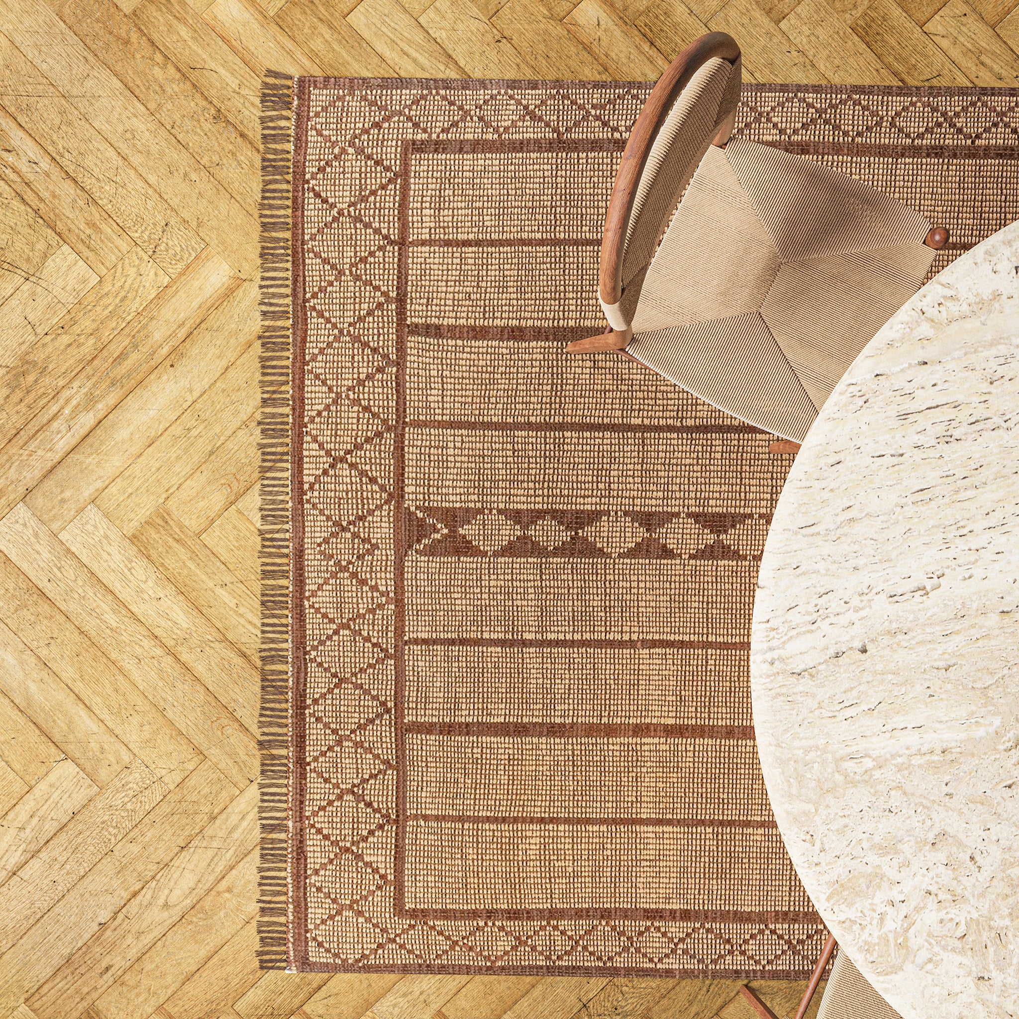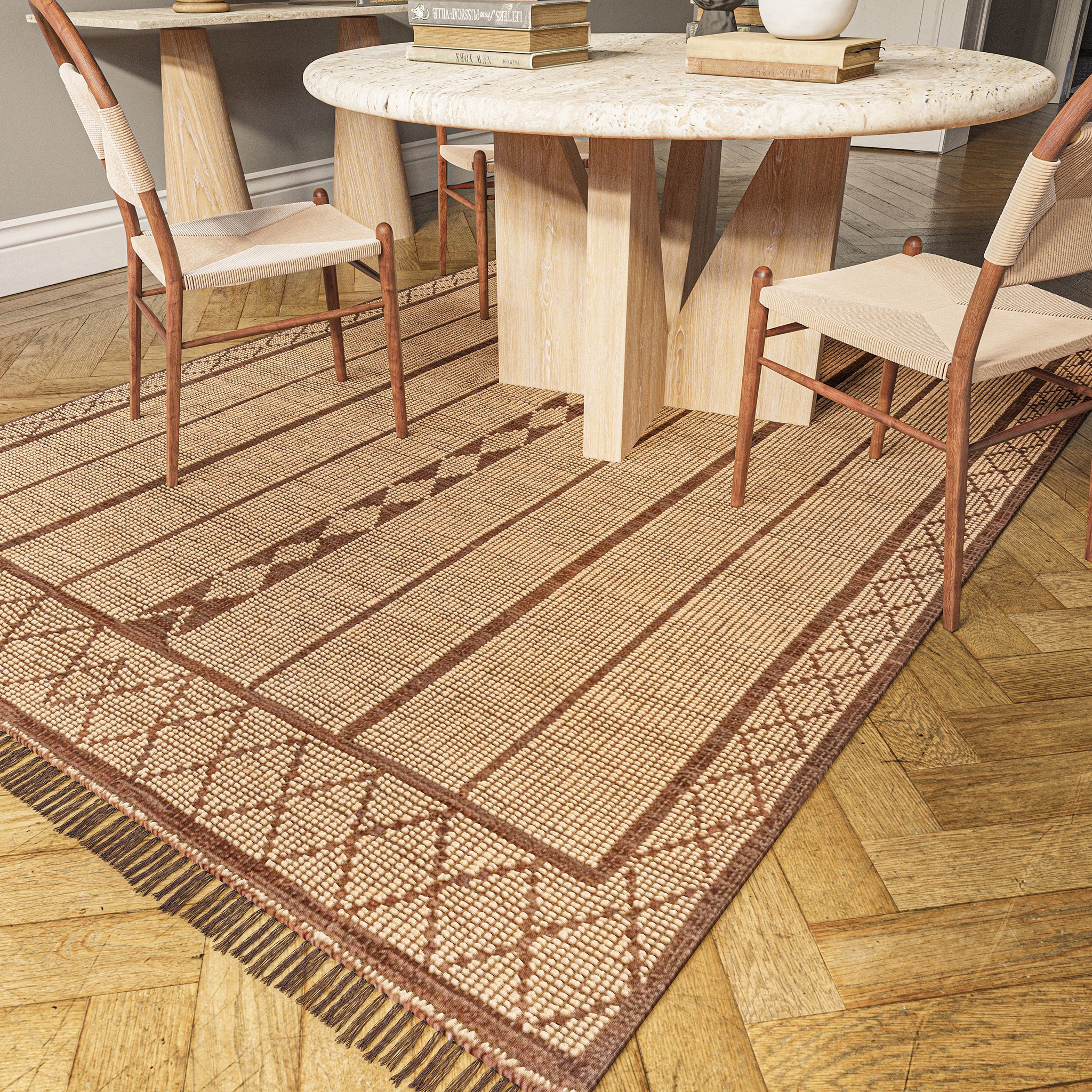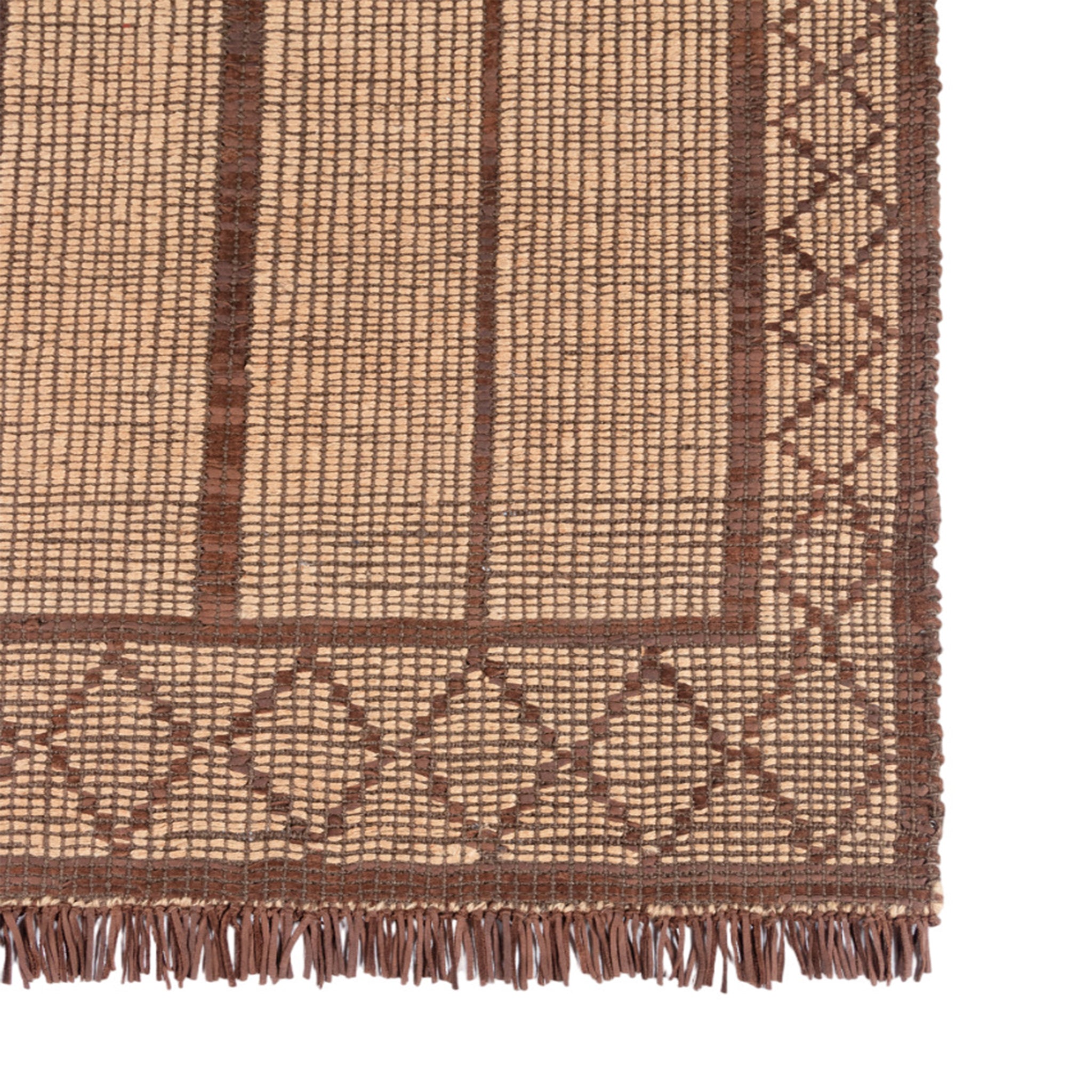A modern twist on the traditional Tuareg mats, the Tugart Collection celebrates elegance in minimalism. Historically built to withstand wear, the handwoven leather and jute construction ages gracefully. A soft-to-hand texture not often found with jute, as well as leather fringe, adds luxe touches to elevate this hardworking and stylish assortment of area rugs.