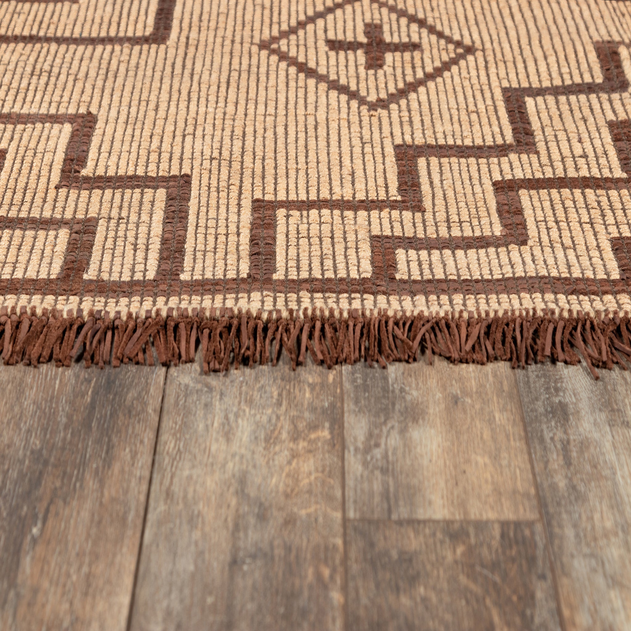 A modern twist on the traditional Tuareg mats, the Tugart Collection celebrates elegance in minimalism. Historically built to withstand wear, the handwoven leather and jute construction ages gracefully. A soft-to-hand texture not often found with jute, as well as leather fringe, adds luxe touches to elevate this hardworking and stylish assortment of area rugs.