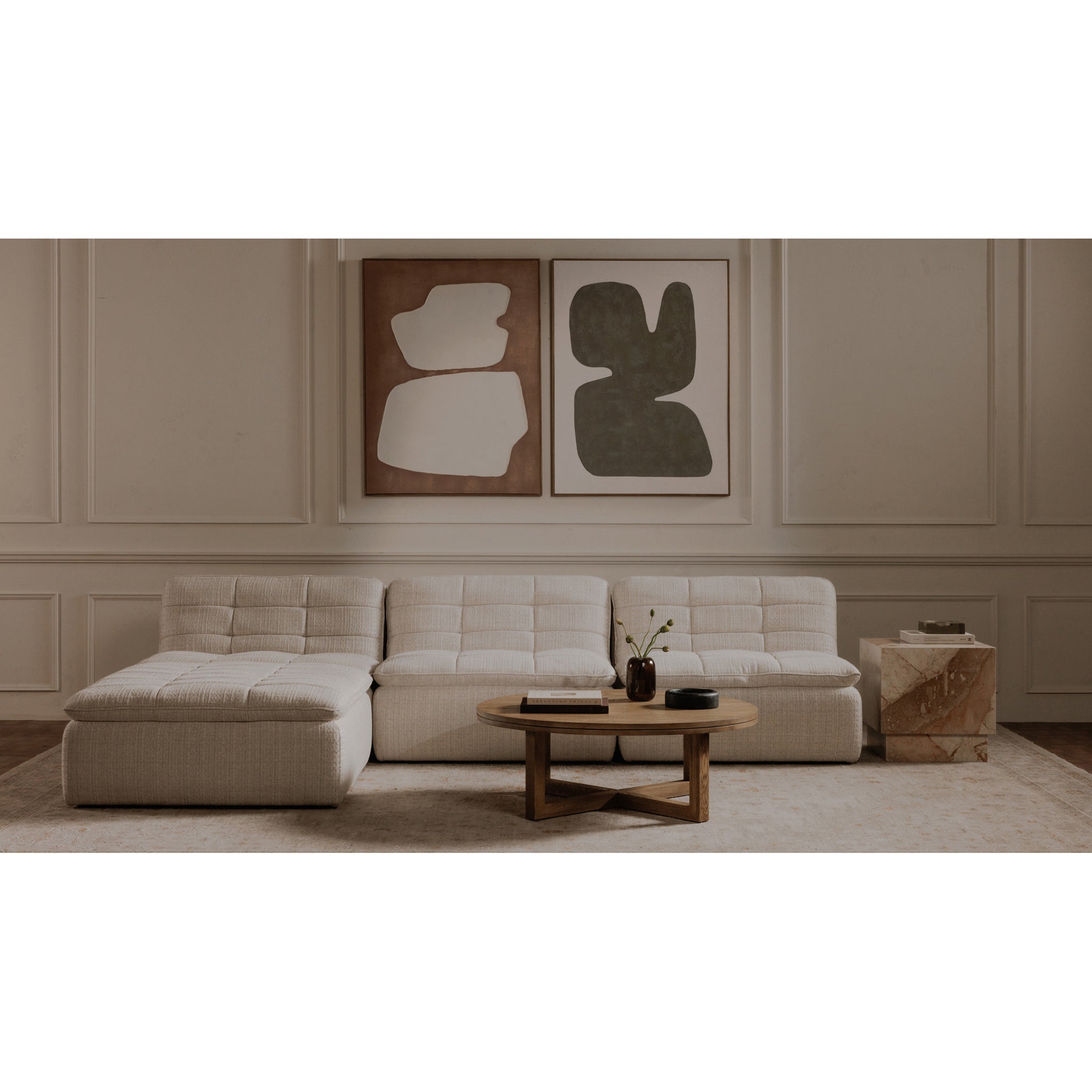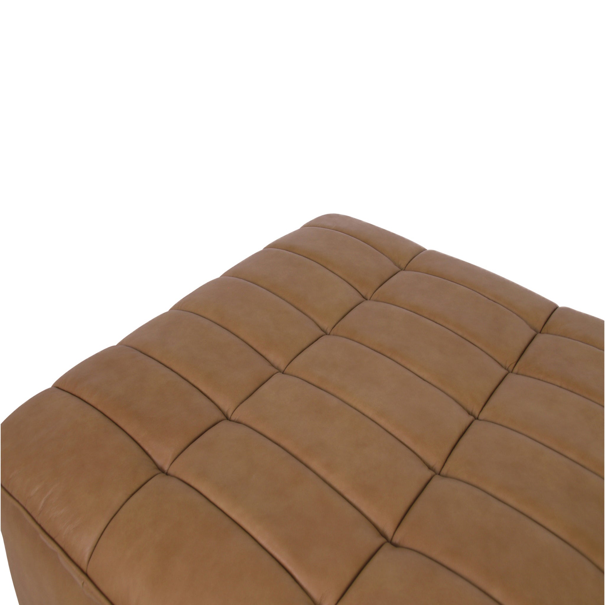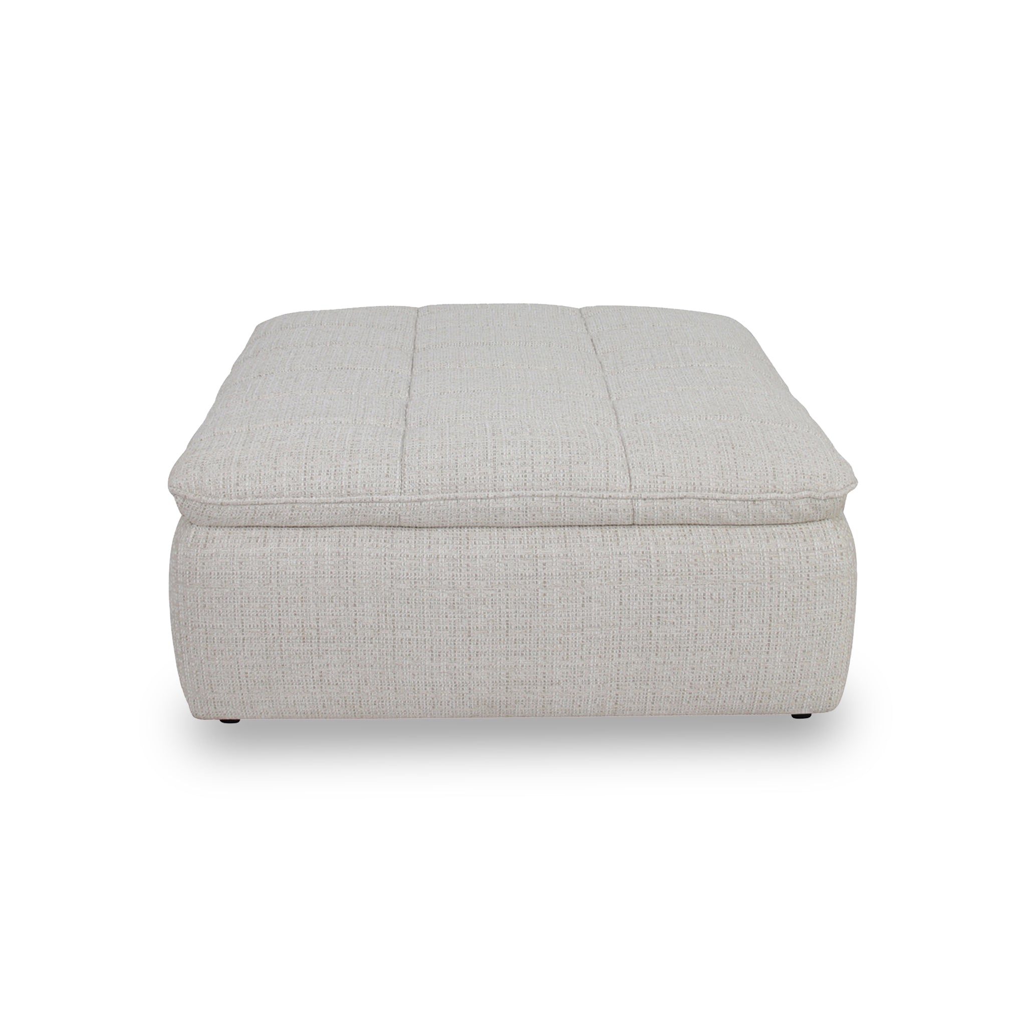 The Leonello ottoman adds vintage charm reimagined for modern sophistication. Inspired by 1970s modernist design, its distinctive grid-like channeling creates a captivating visual rhythm. Upholstered in a textured blend of viscose, linen, and cotton, this ottoman offers indulgent comfort with its plush, generously stuffed top