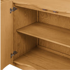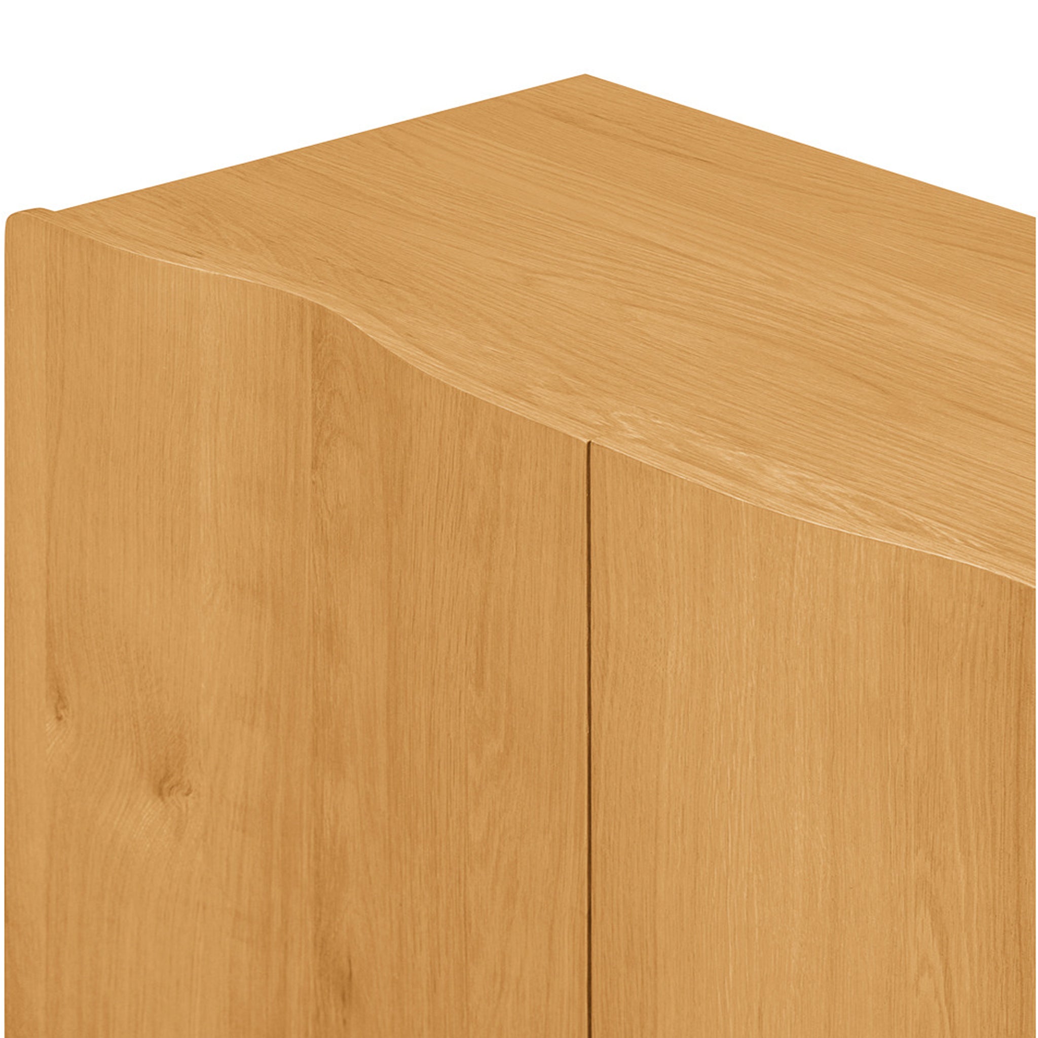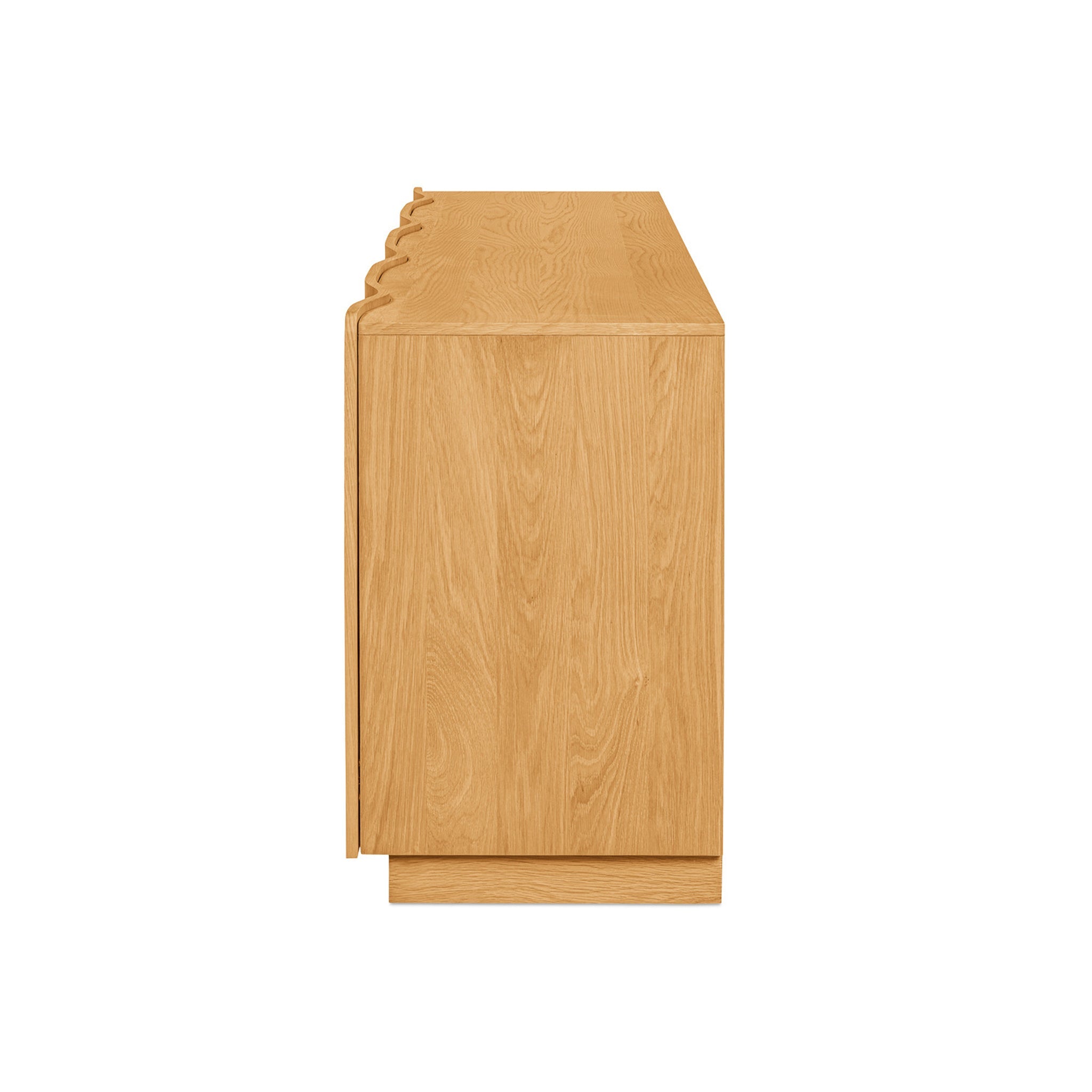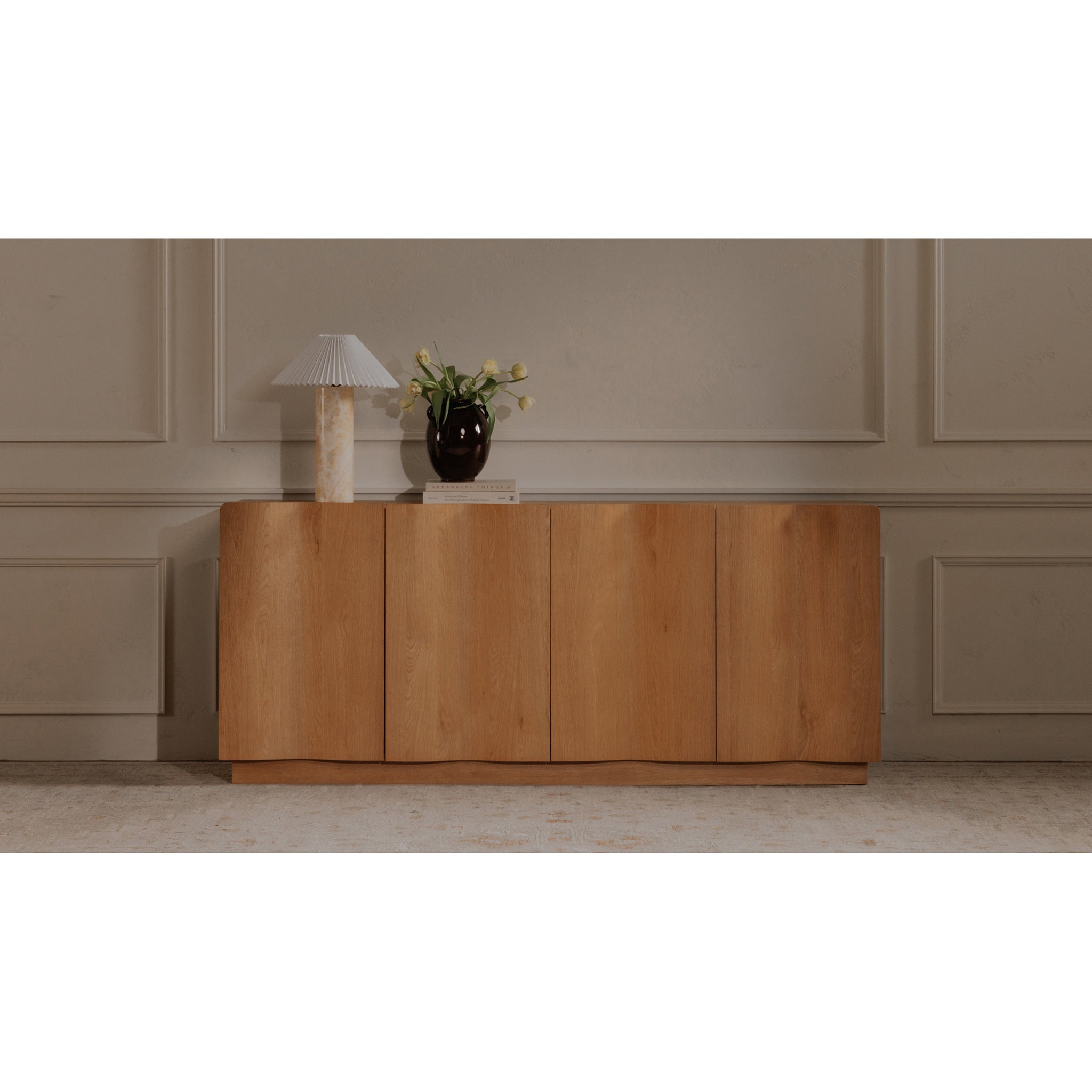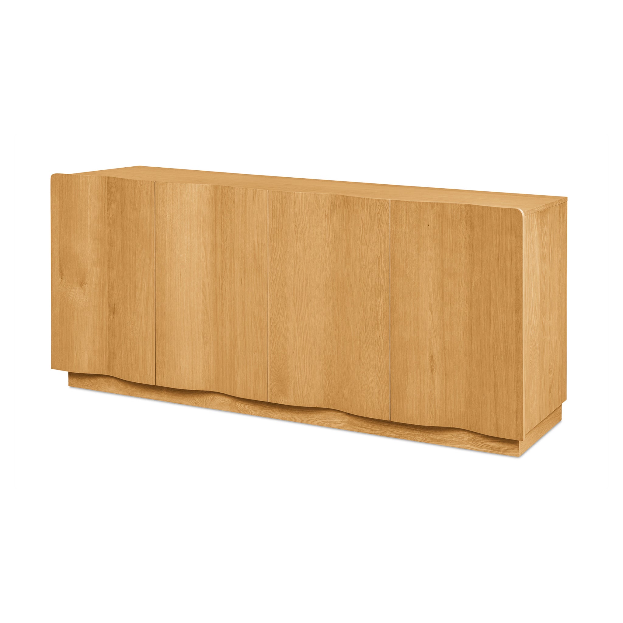 Inspired by nature's fluid artistry, the Otello sideboard brings serene beauty to the living space. Gracefully curved front doors cascade over the sides, evoking wind-shaped sand dunes. This flowing silhouette contrasts elegantly with the sleek body and recessed base.