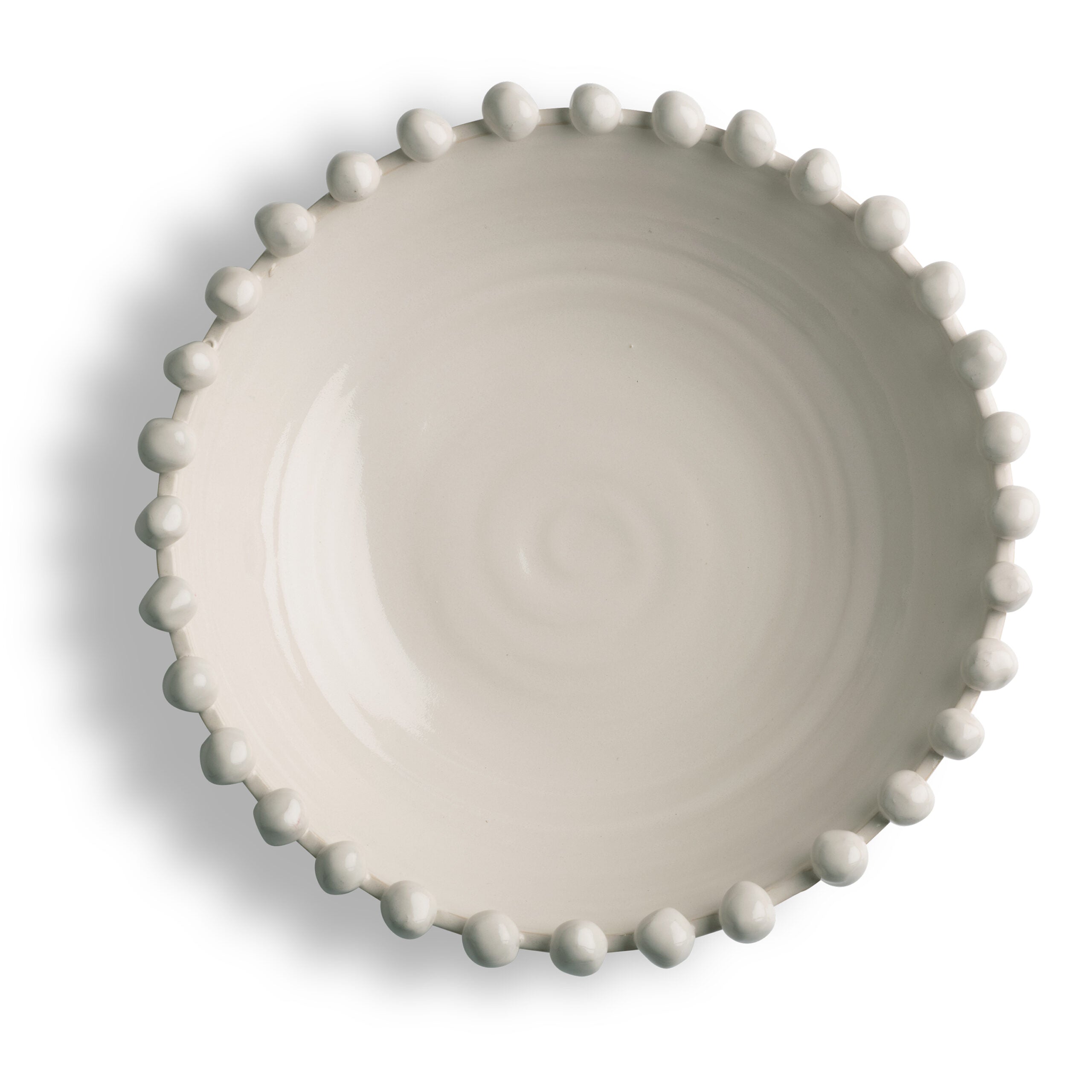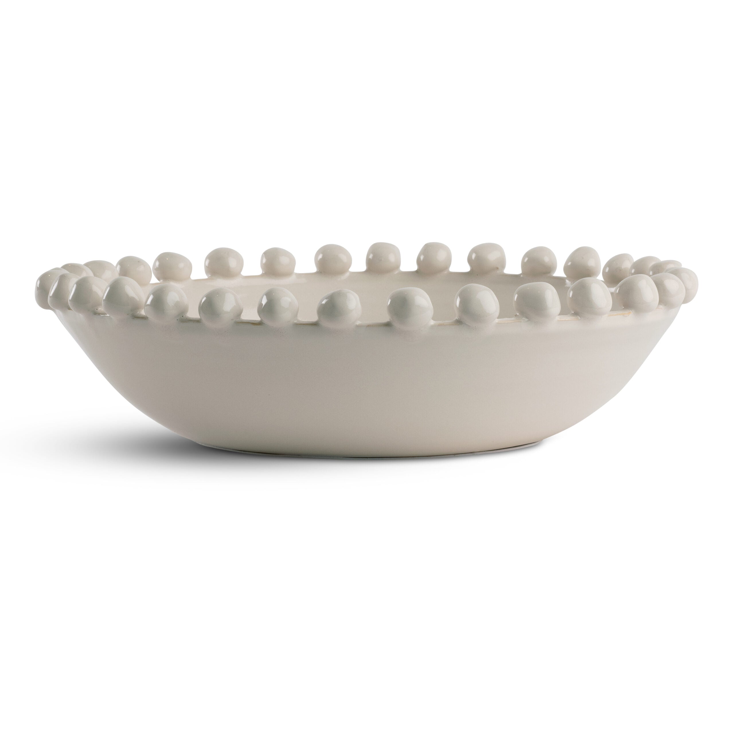 Spherical accents dance around the rim of the Lucas Bowl, lending a sense of whimsical charm sure to make a playful impression. This piece is crafted from weighty ceramic with a glossy white finish that gleams in the light – it’s beautiful enough to use as a standalone display piece or as a functional receptacle for decorative objects.
