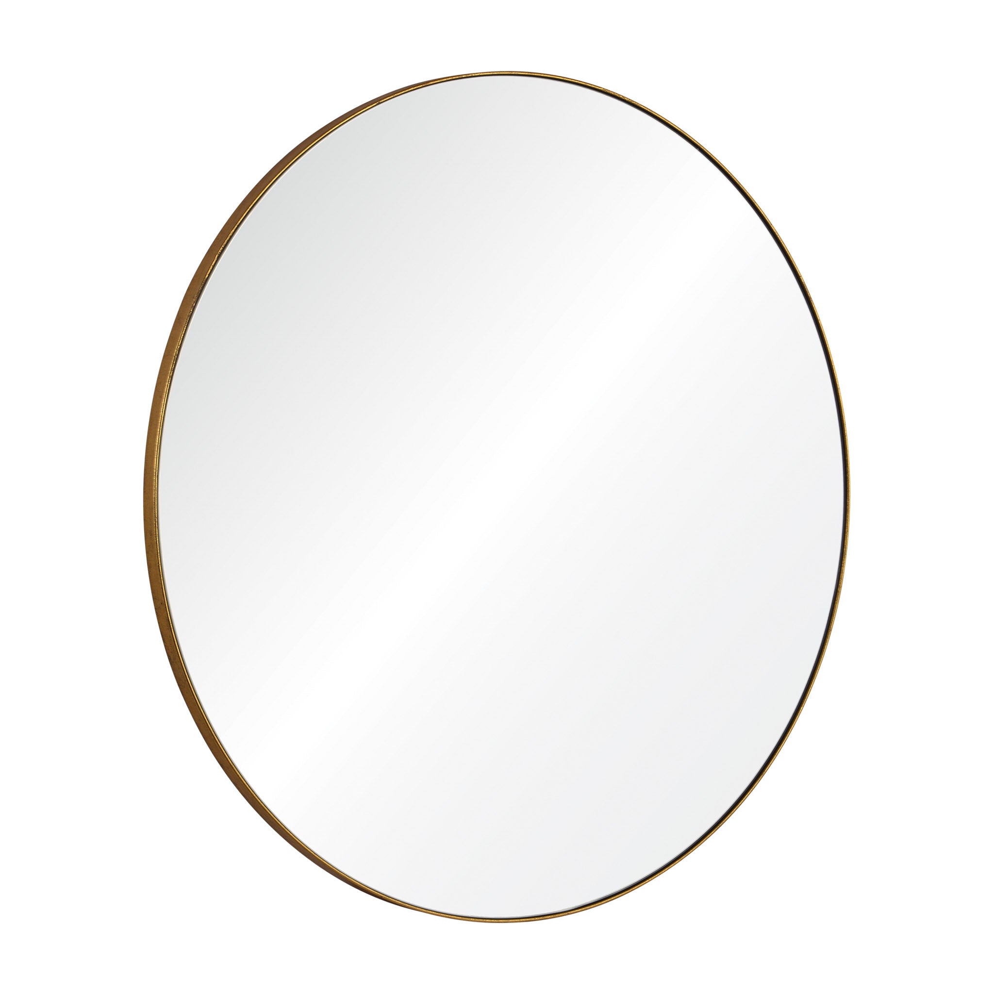 A thin gold leafed metal strip perfectly frames this Spartan statement mirror.