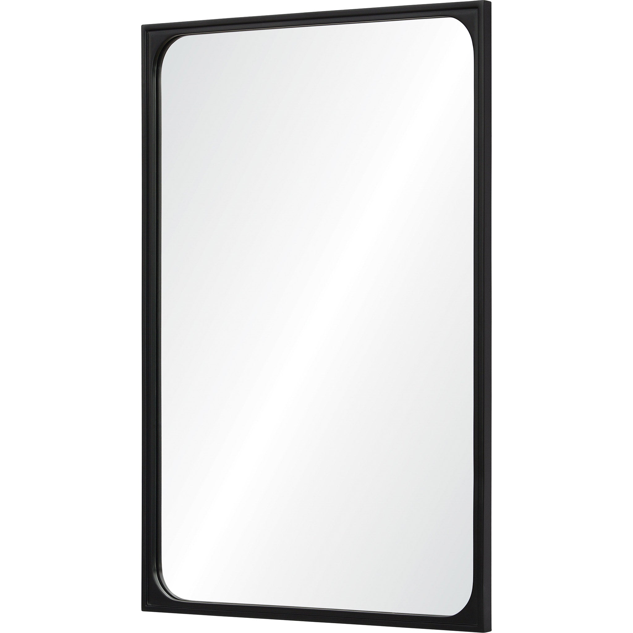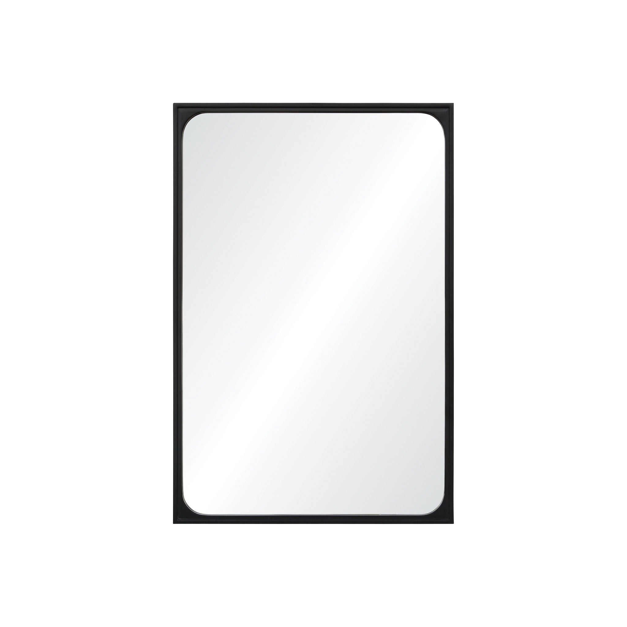 The sophisticated styling of this traditional wall mirror reveals a raw, yet refined charm. The carved wood mirror frame clips the rectangular looking glass into neatly curved corners, gently rounding at the inner edges. A Black powder coated finish adds a hint of industrial chic to the decorative mirror’s farmhouse influences.